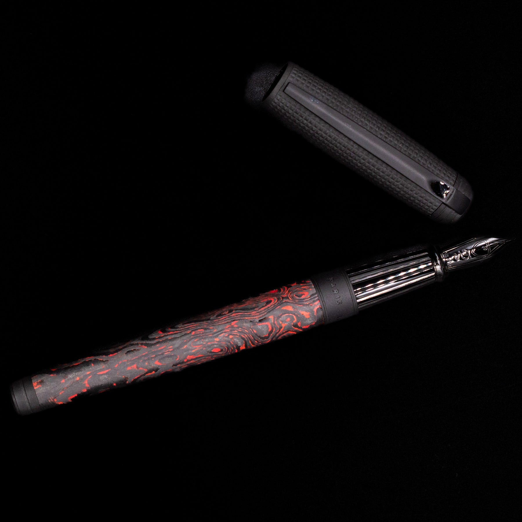 ST Dupont has expanded the iconic Line D with a new, innovative material: light, strong carbon. With this collection, S.T. Dupont is celebrating the beauty and power of natural elements. The Carbon Fiery Lava Fountain Pen is crafted with a red and black carbon barrel and is accented with an all-black carbon cap and black trim.