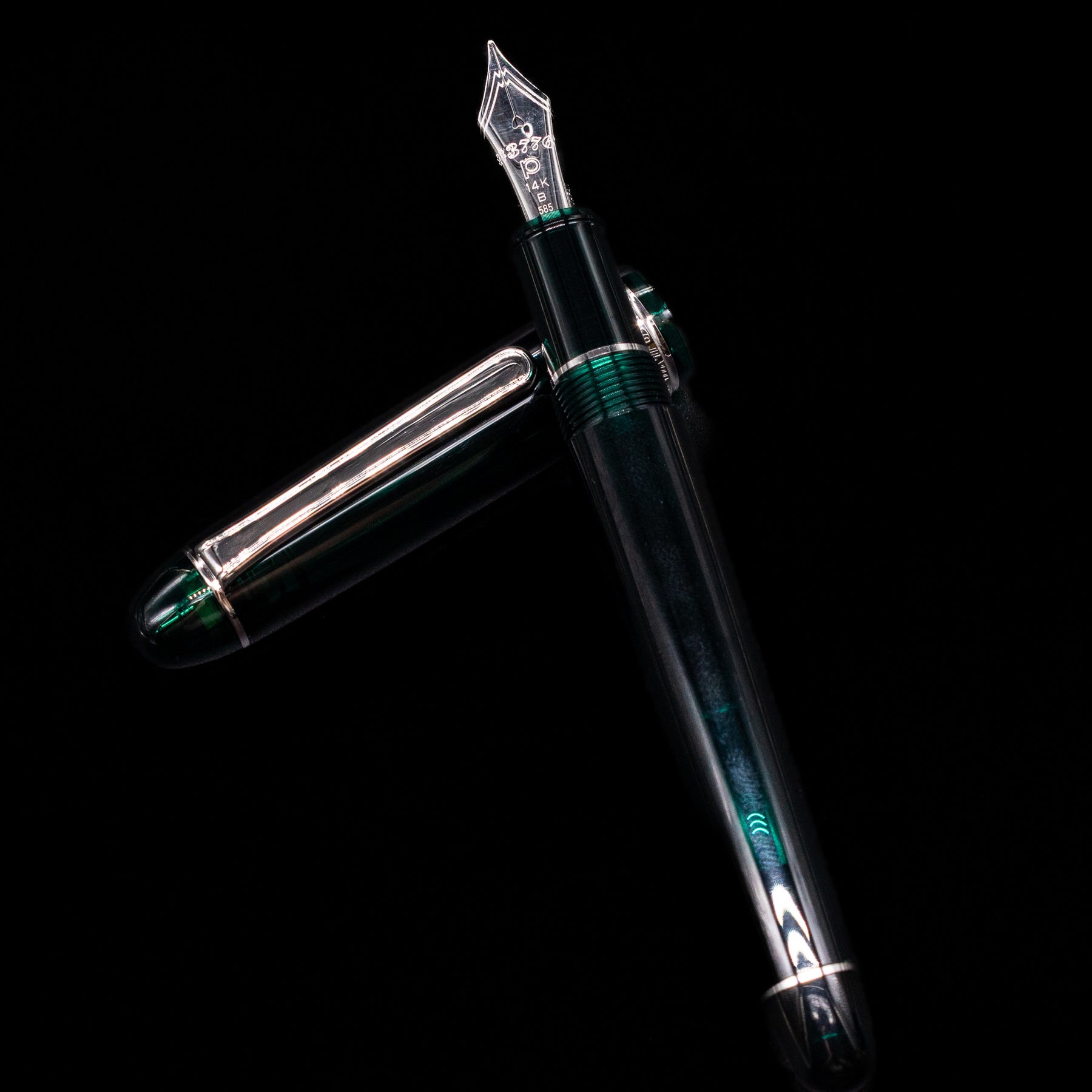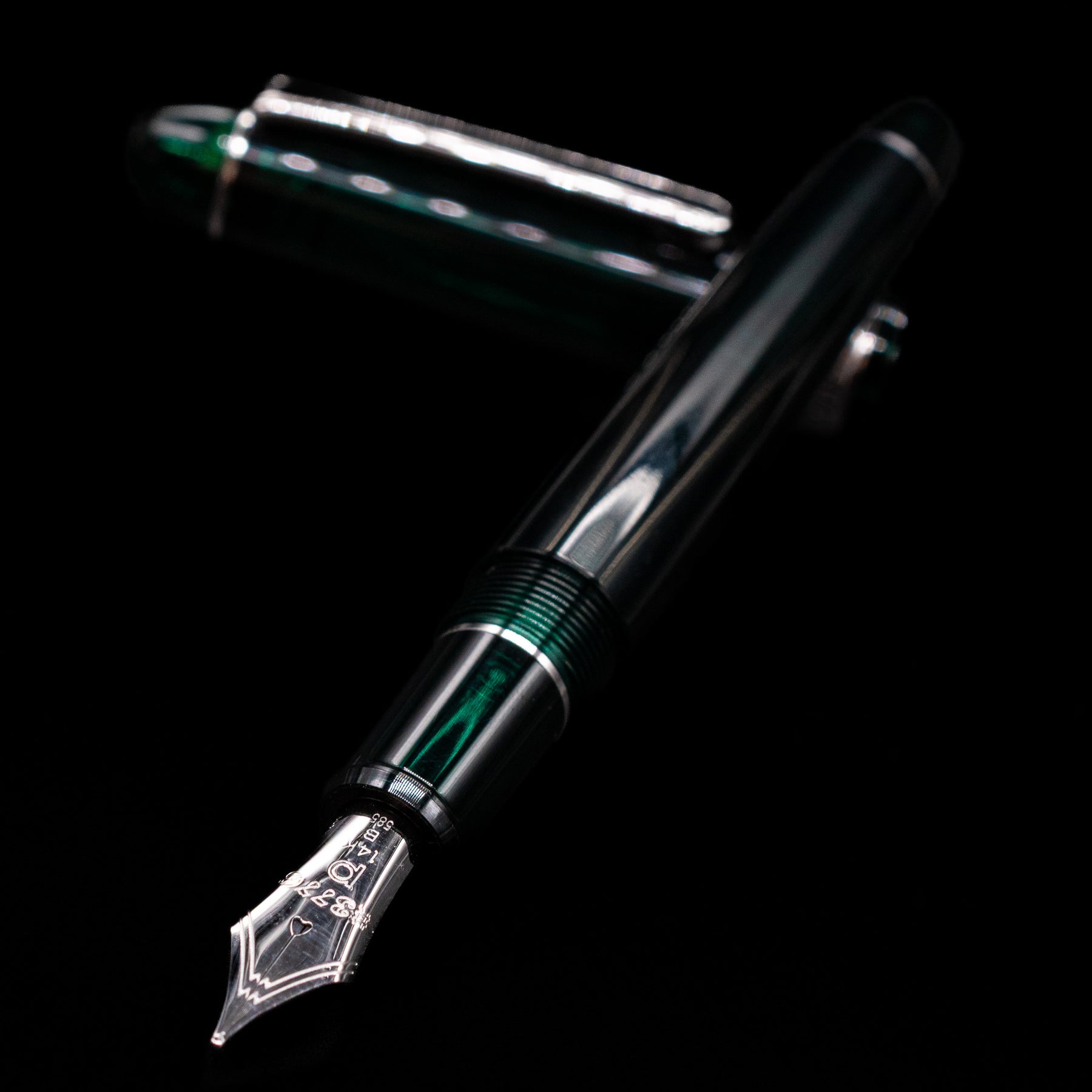 Elegant laurel green resin barrel and cap — rich, natural, and refined
