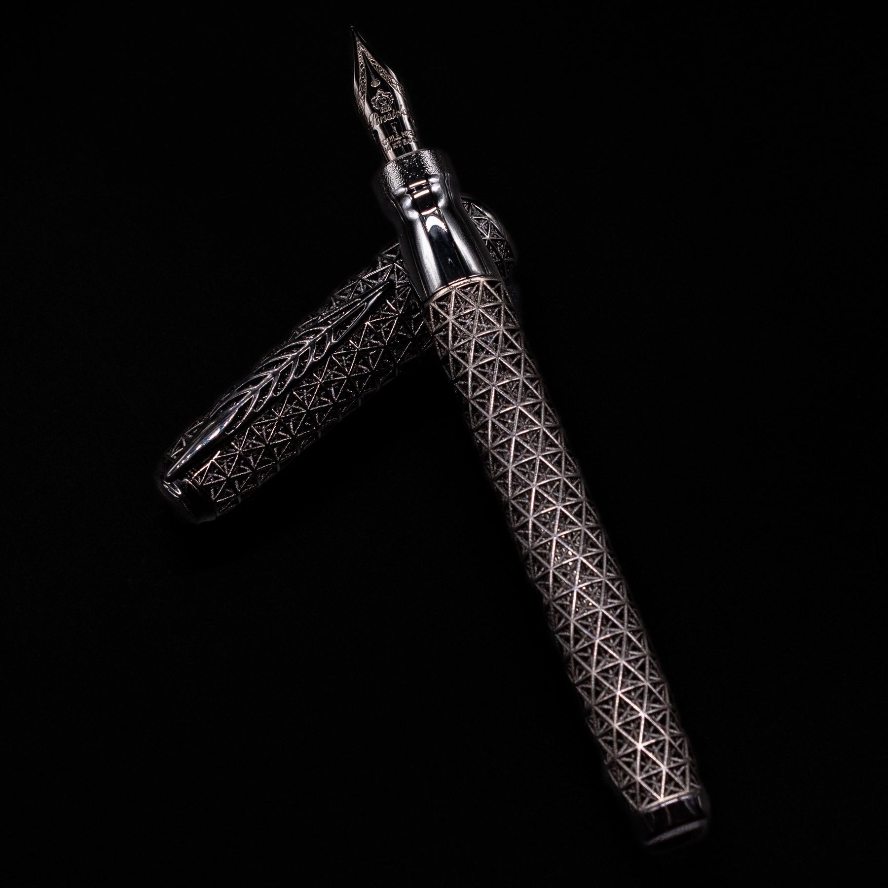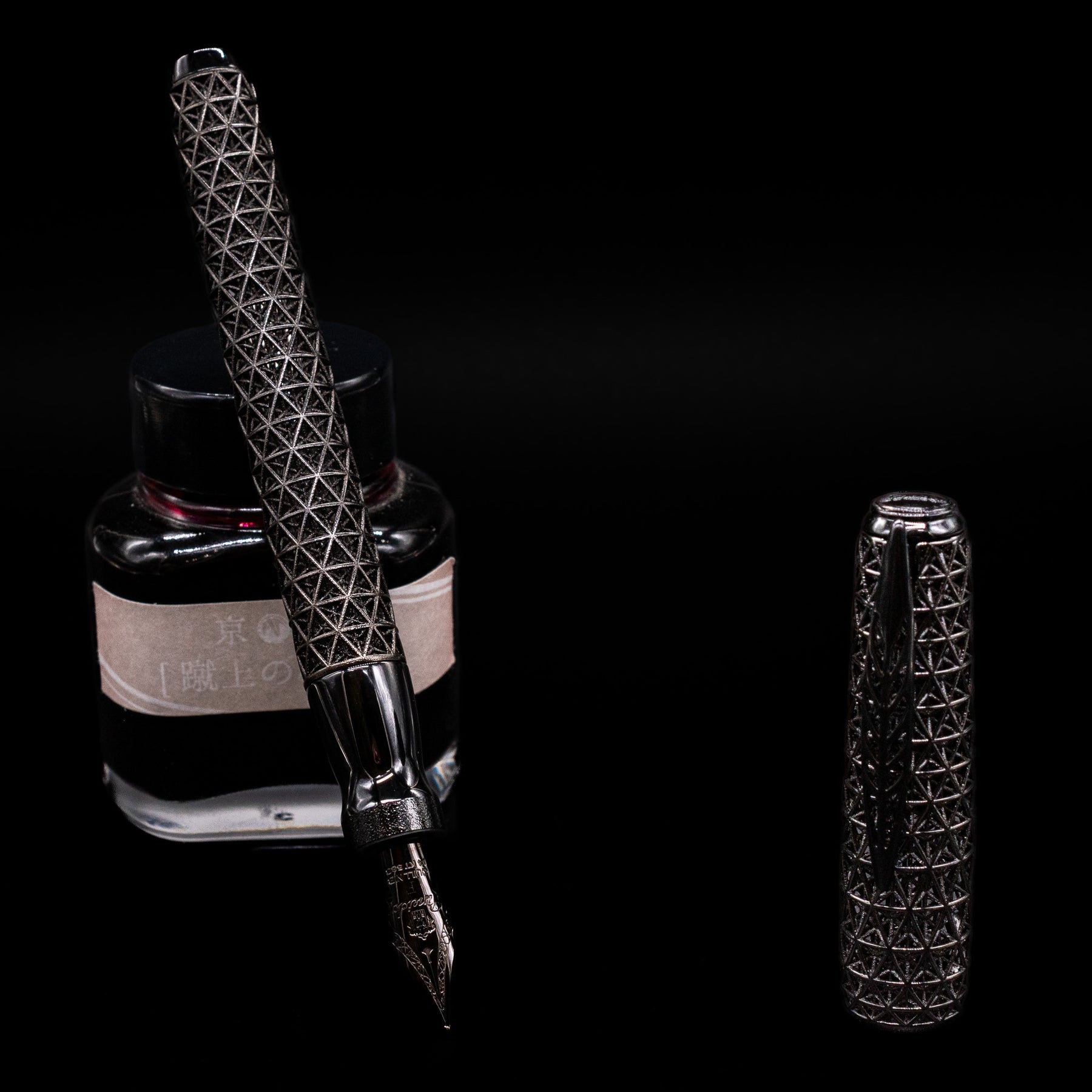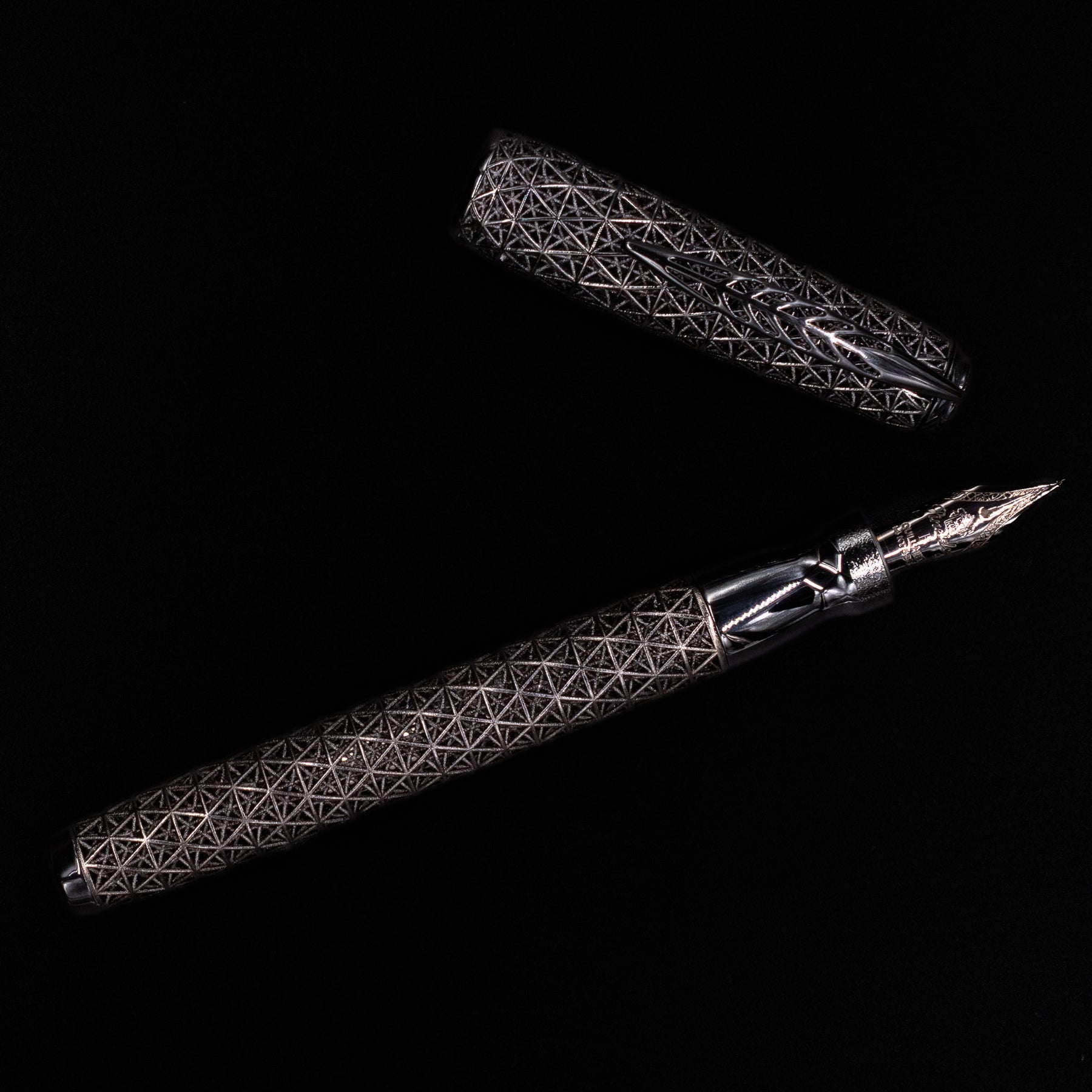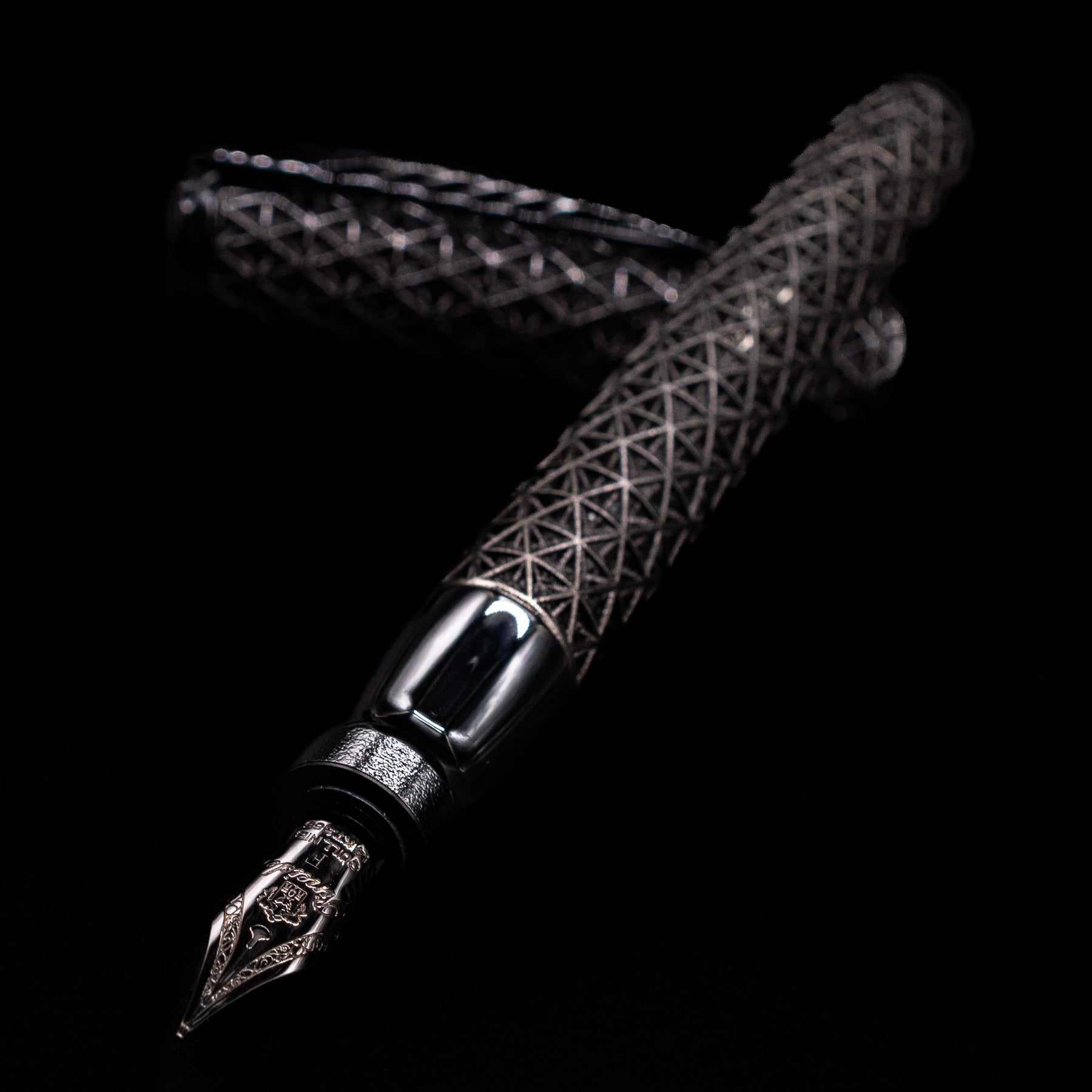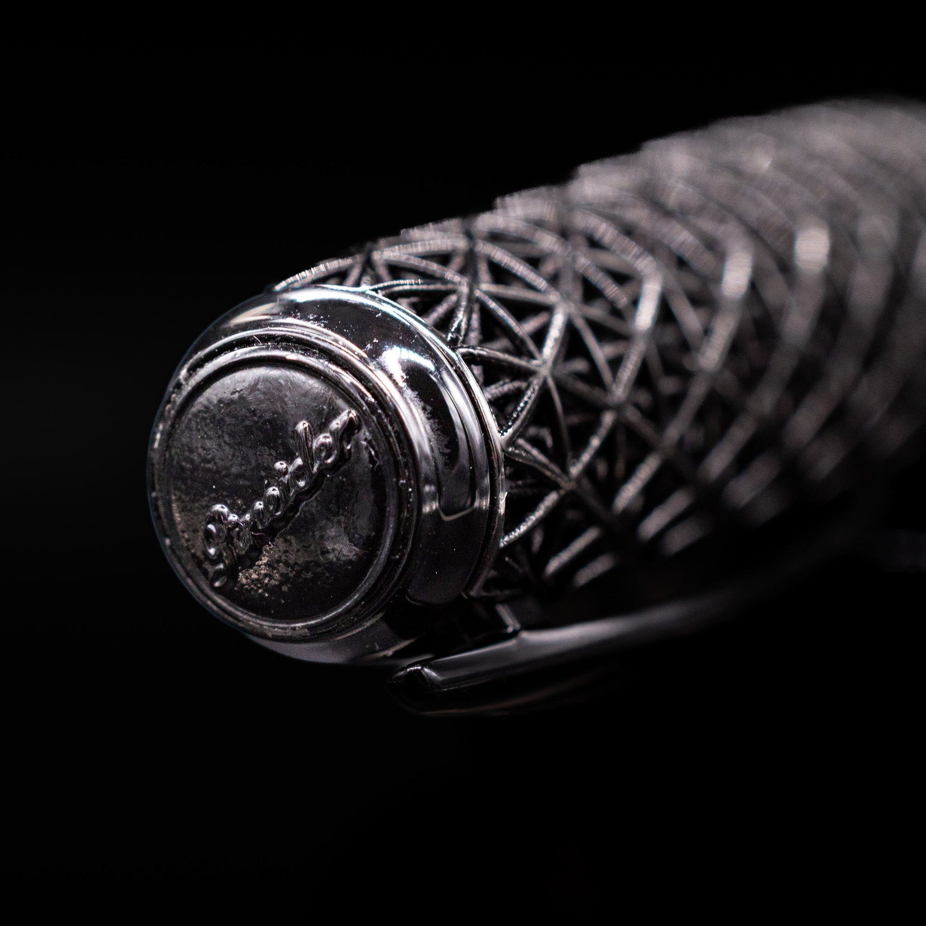 The unique and highly detailed design featured in the Pineider Psycho fountain pen is created using the new, ultra-high pressure casting technique called nano fusion. The semi-transparent interwoven connections generate a beautifully finished design many would consider an example of modern art. The ingenious design is available in four variations: