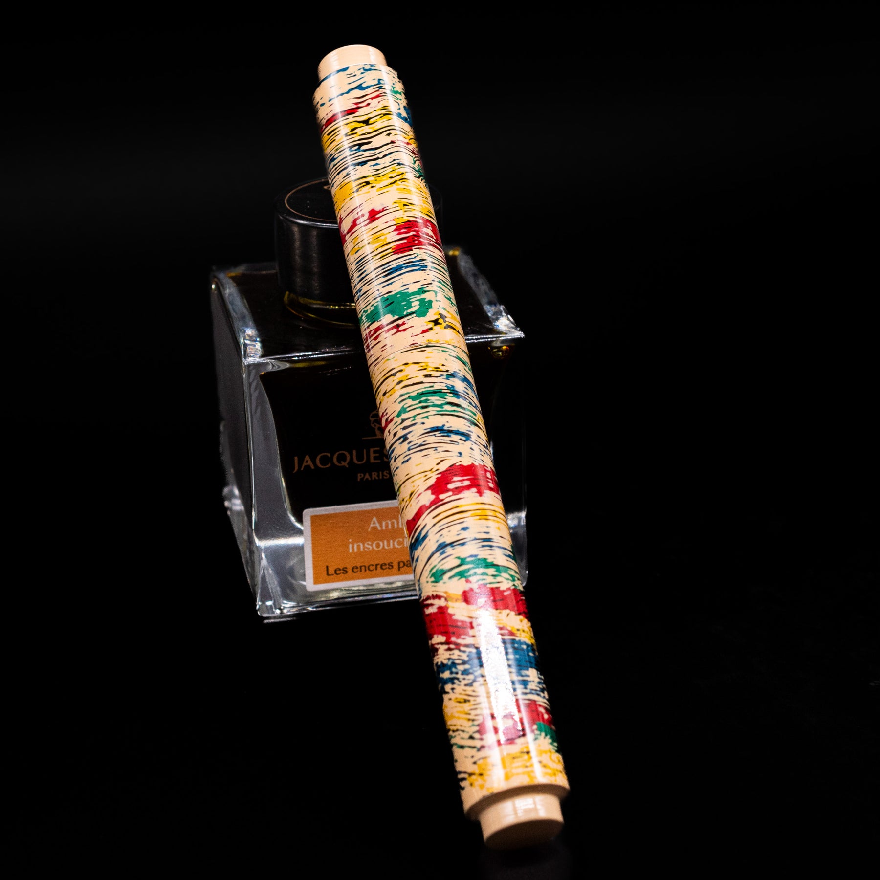 The marks wrap continuously across cap and barrel with a cadence that feels improvisational yet balanced, as though composed through instinct and discipline in equal measure. There is a musicality to it.