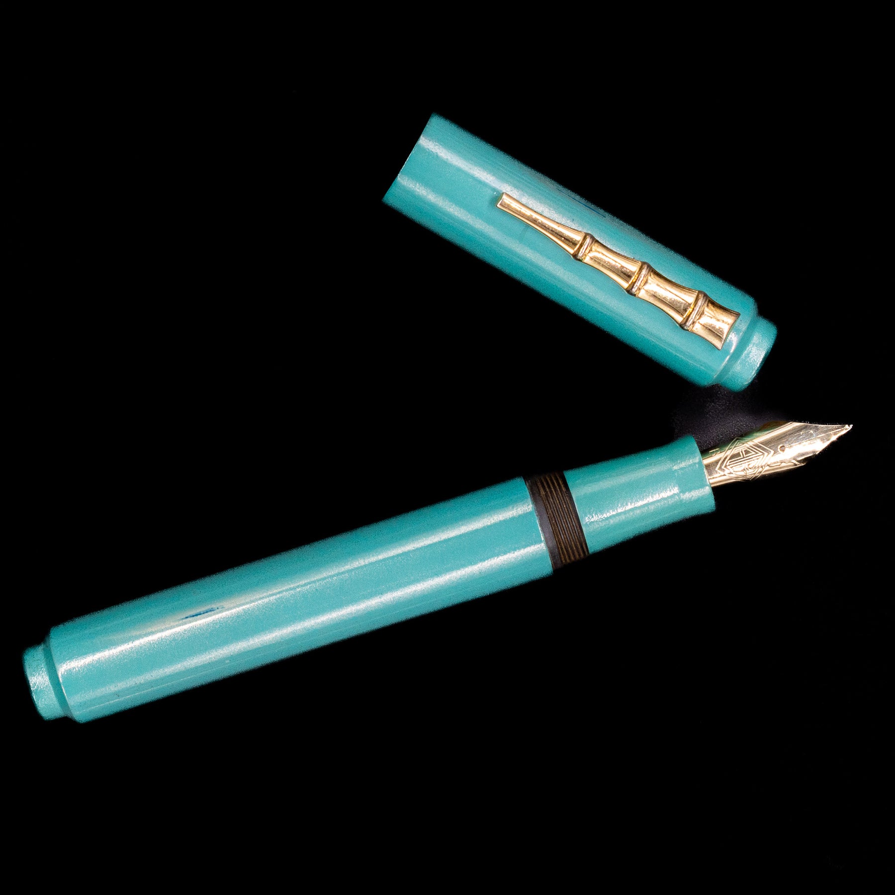 - Handcrafted urushi lacquer fountain pen in luminous aqua finish