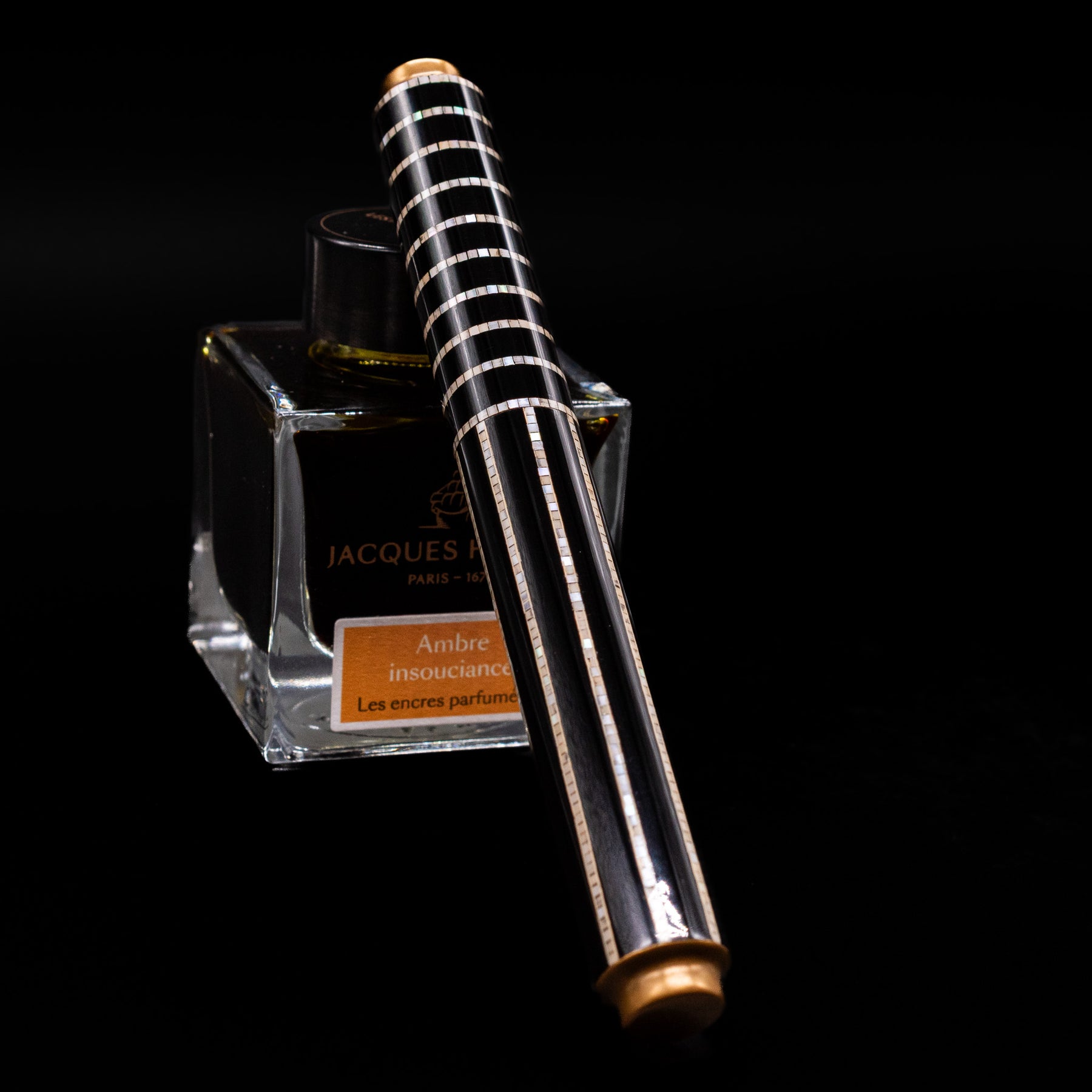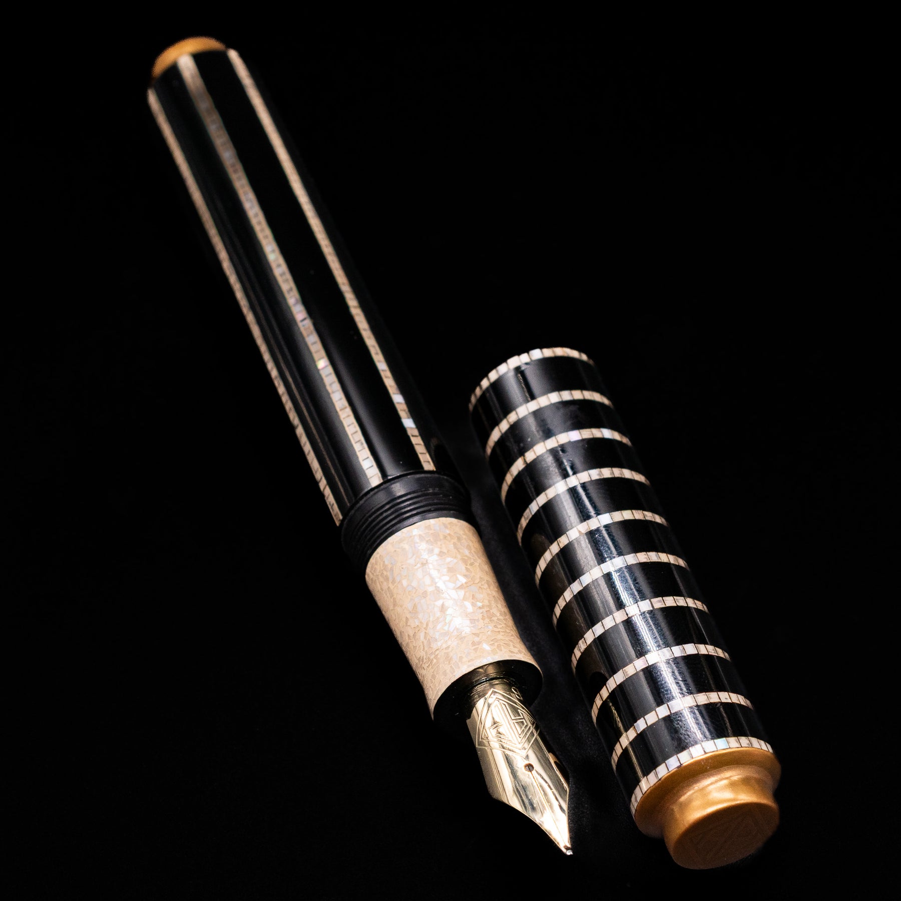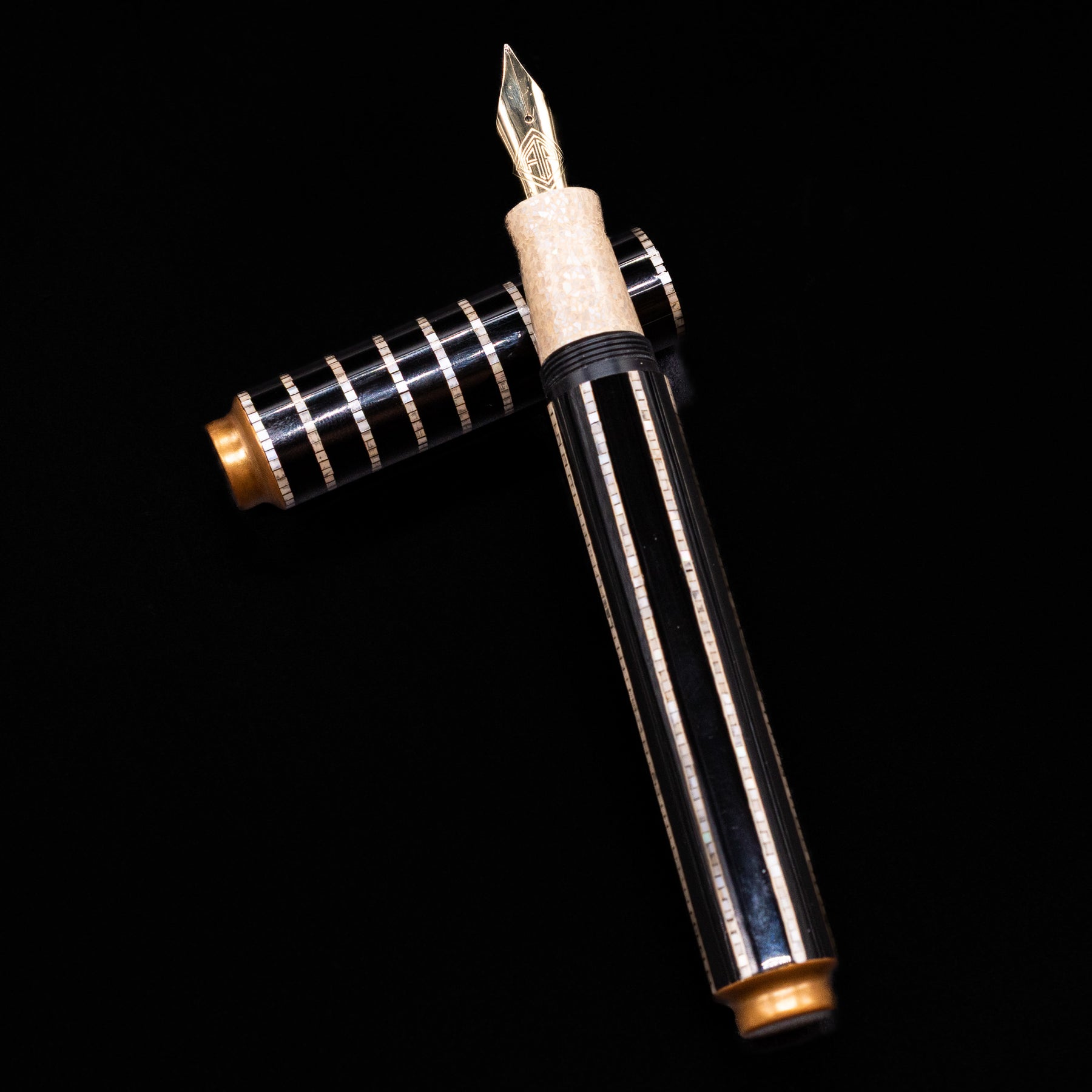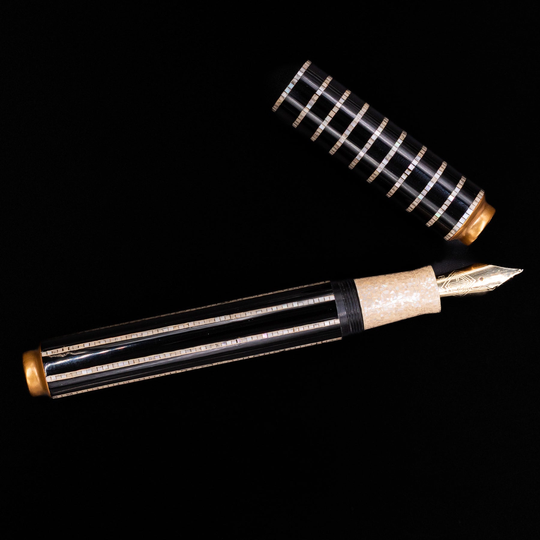 • Precision shell inlay bands across cap and barrel