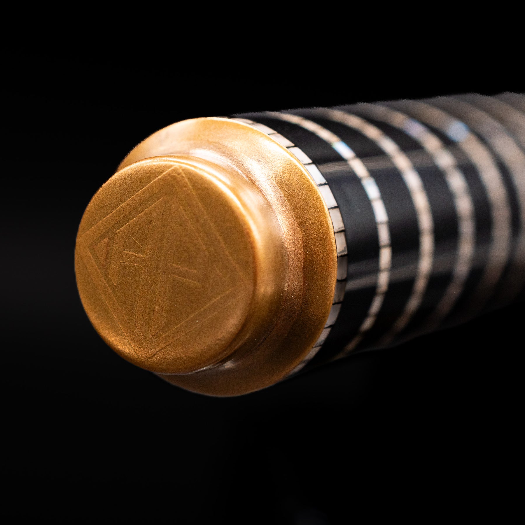 Zoomed-in view of the top of the cap with the finial on the AP Limited Editions Writer Maki-e Fountain Pen - Magical Mother of Pearl.