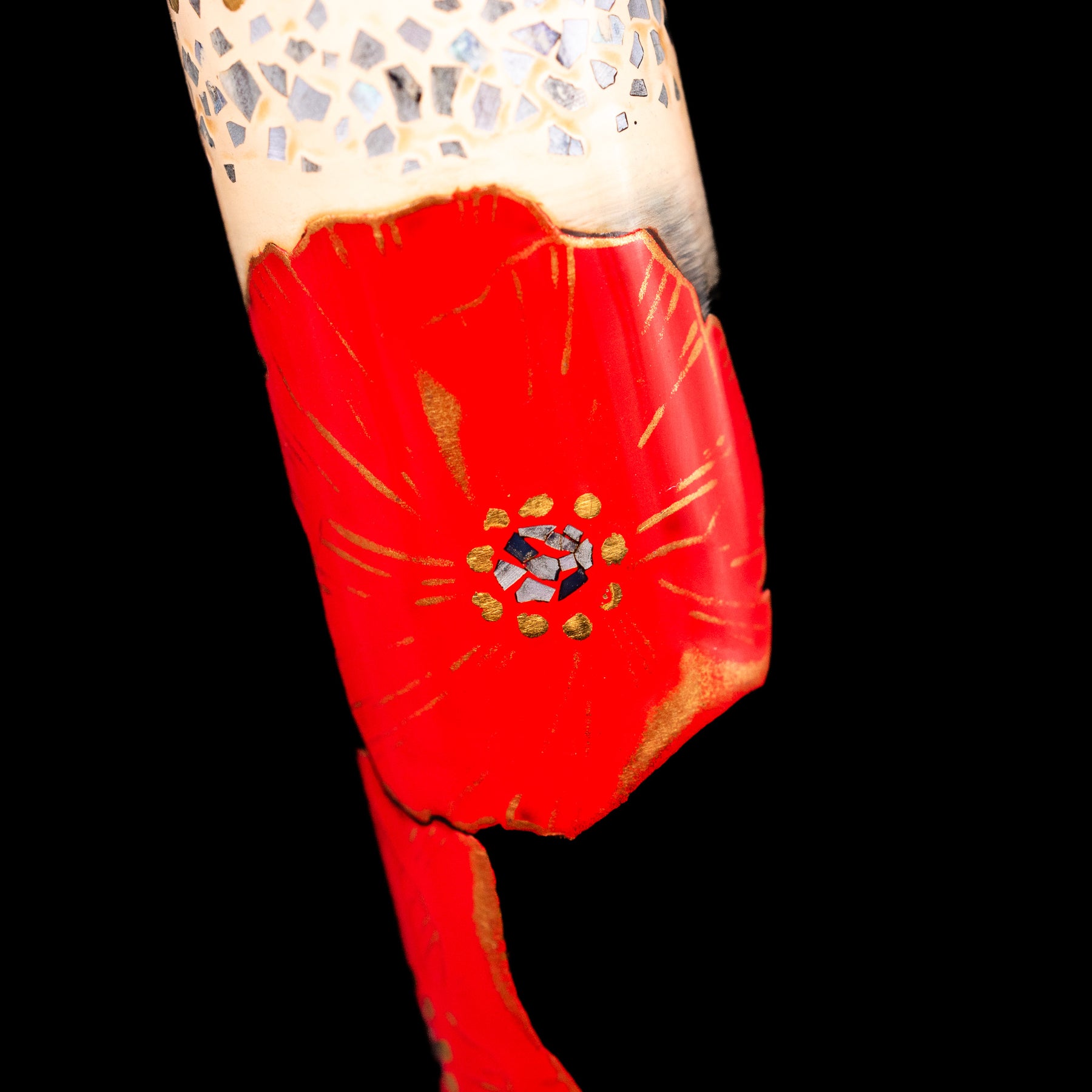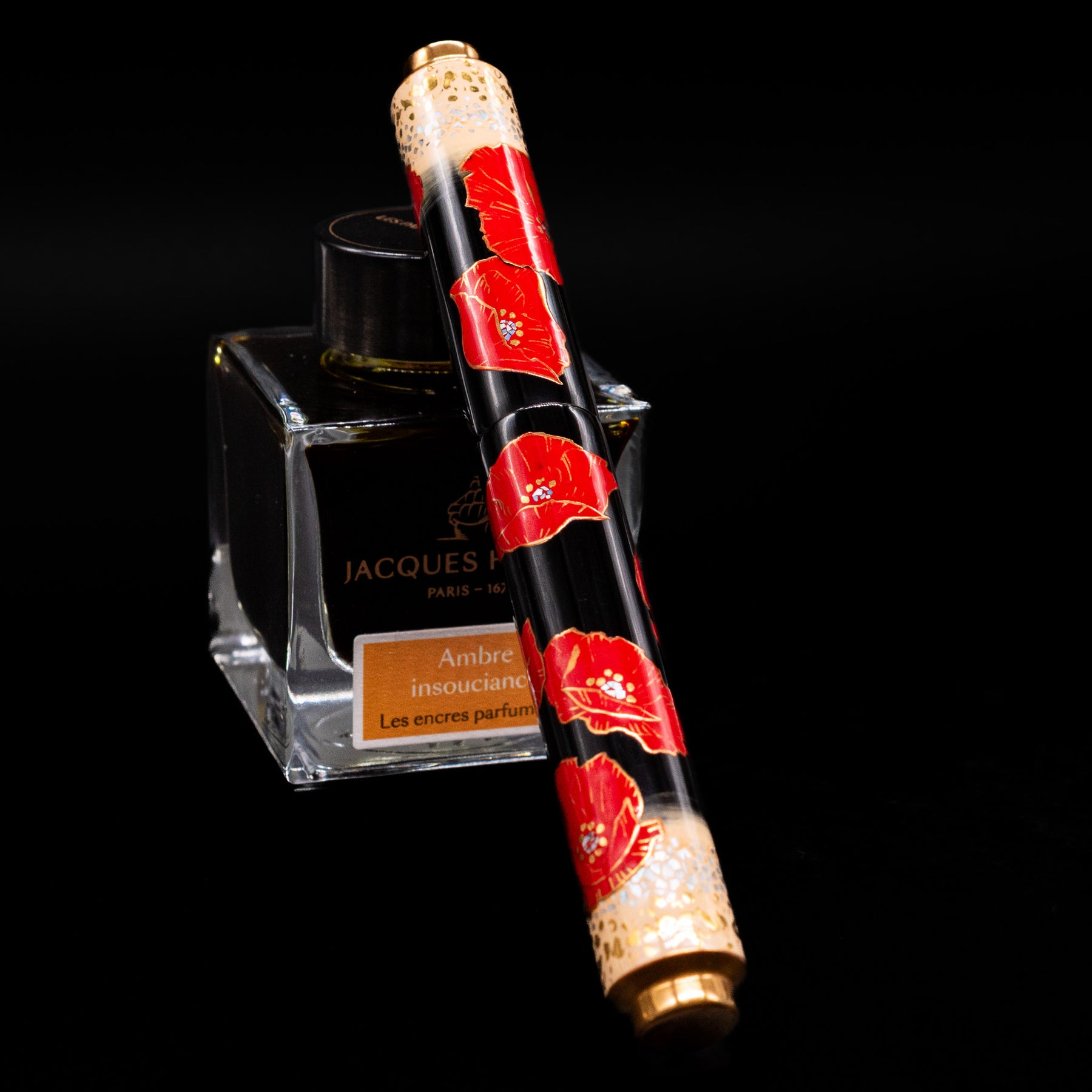 • Handcrafted Japanese maki-e fountain pen featuring vibrant poppy motif