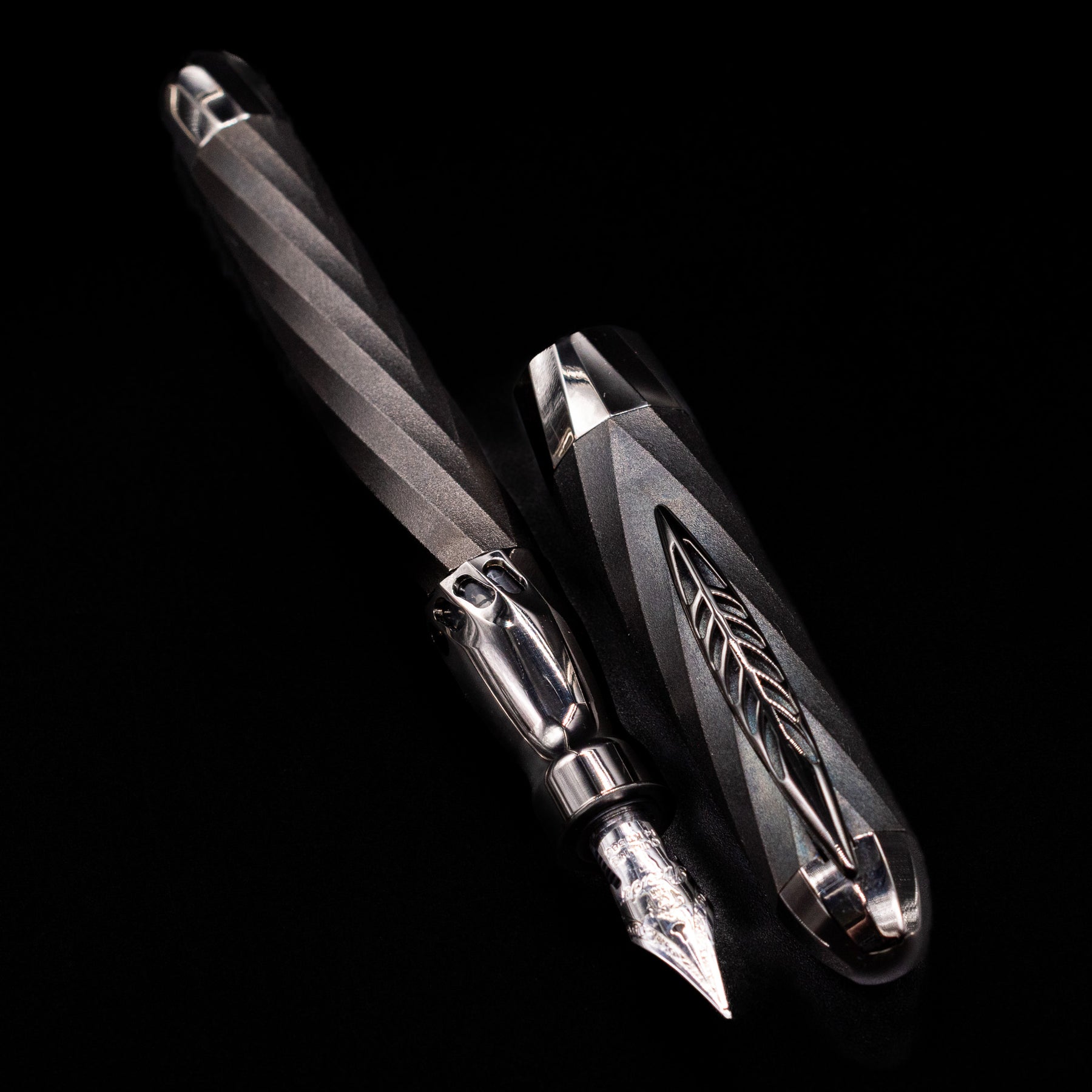 Solid 925 sterling silver cap and barrel with black ruthenium plating — striking, jewelry-grade construction
