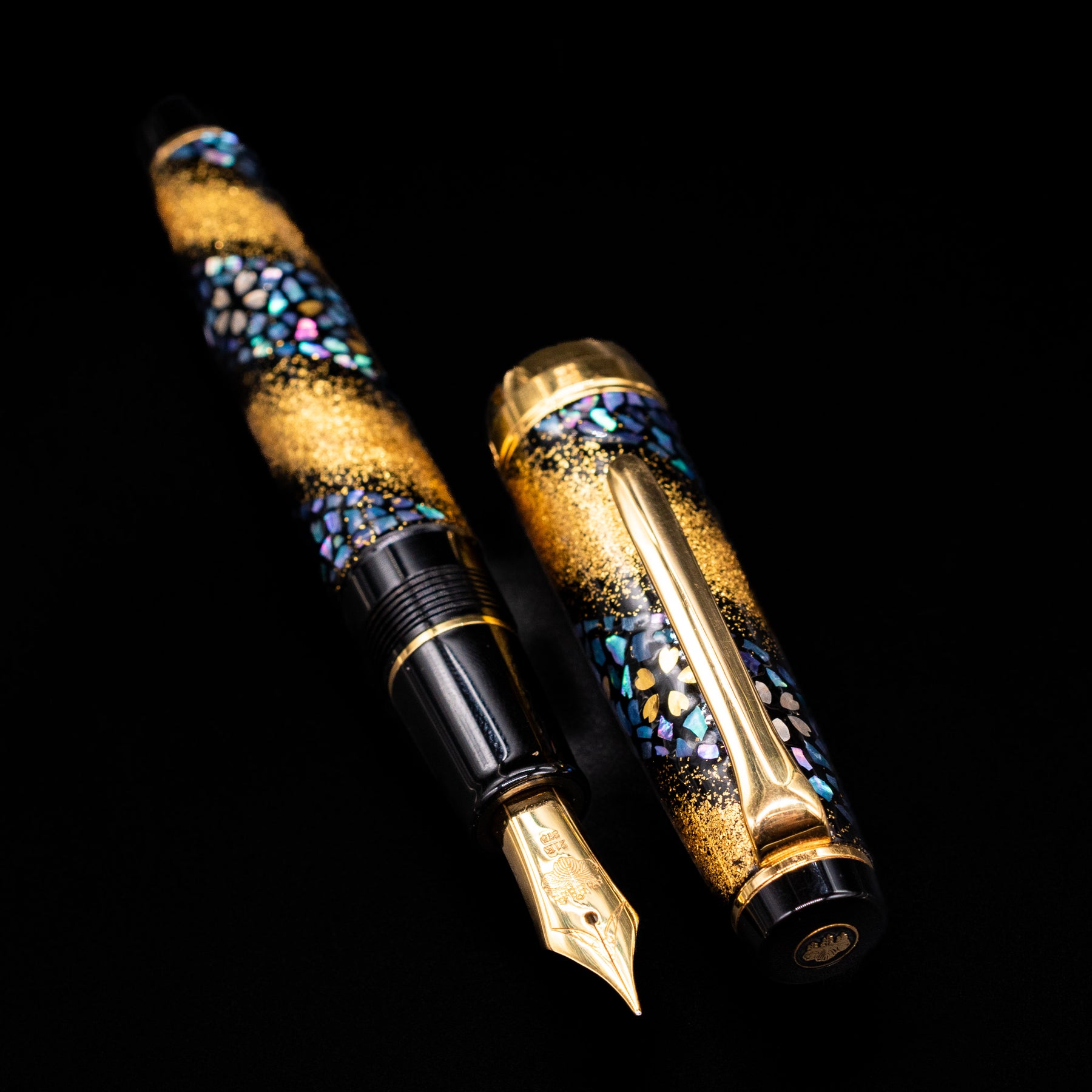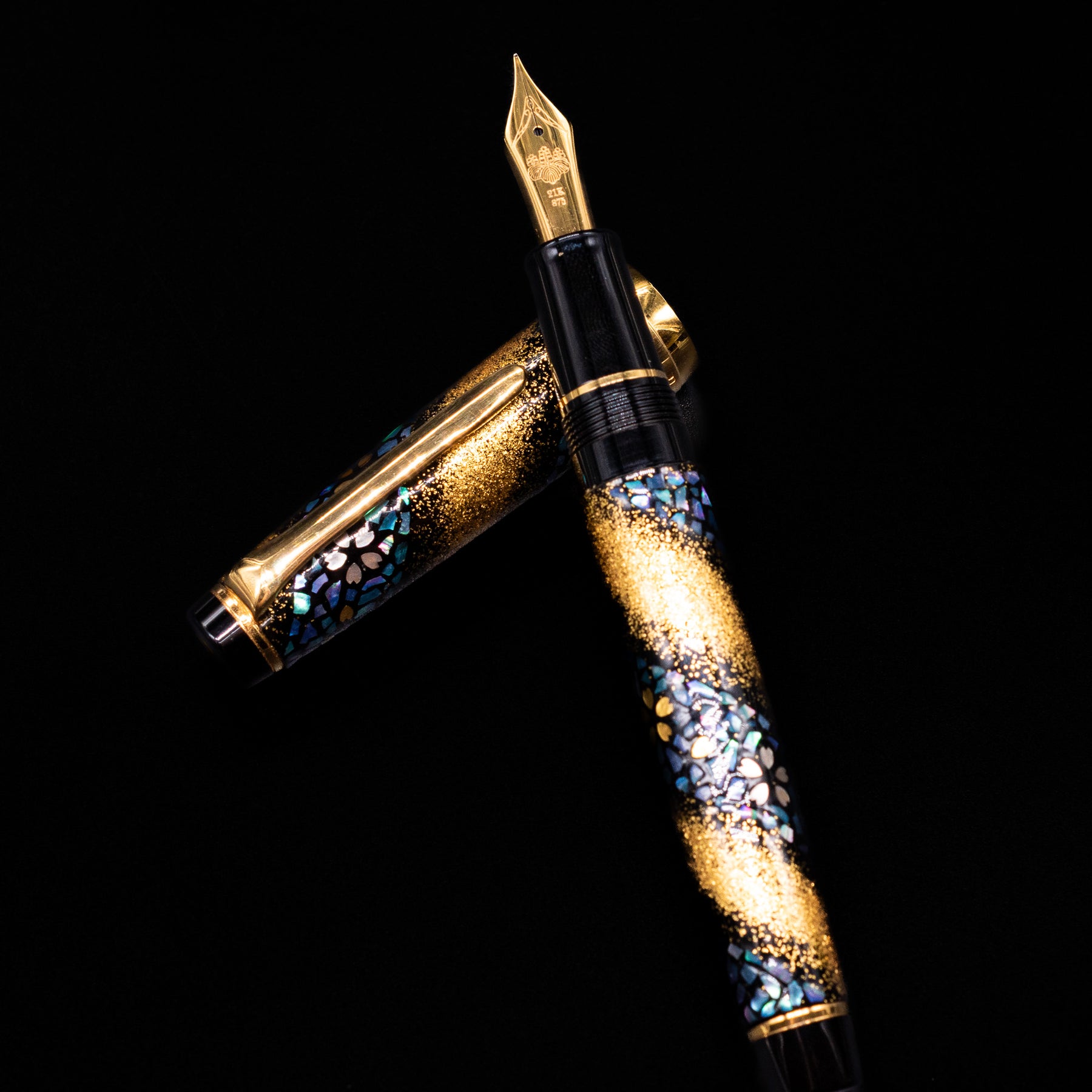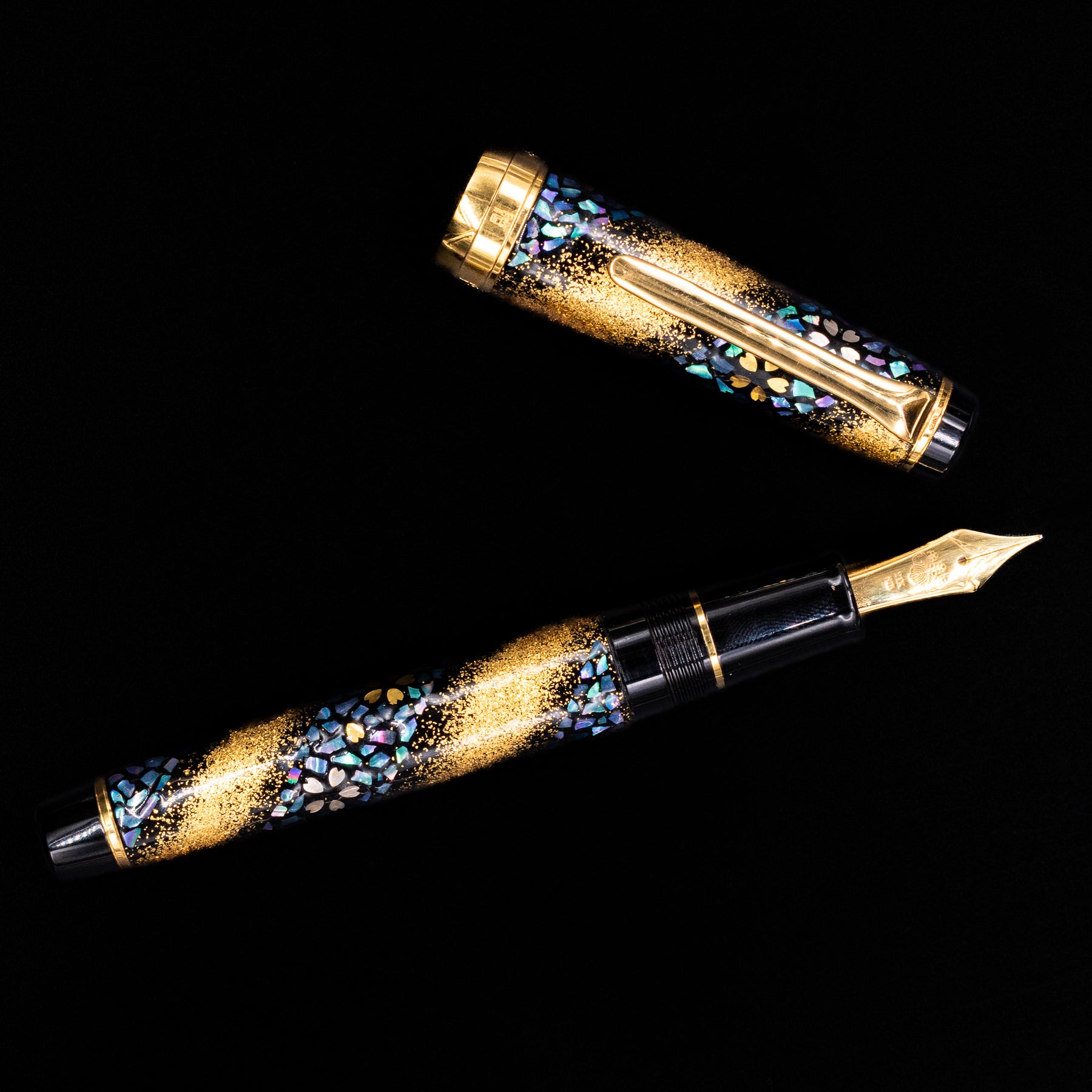 Most examples of the Prime Minister edition are based on the Professional Gear platform, featuring Sailor’s distinctive flat-top design and precision-engineered resin construction. The pen is typically adorned with intricate urushi lacquer, maki-e, and raden (mother-of-pearl) decoration, often depicting flowing cherry blossoms — a motif known as Sakura Nagare (“cherry blossom stream”). These layered decorative techniques create remarkable depth and texture, making each piece visually complex and unmistakably handcrafted.