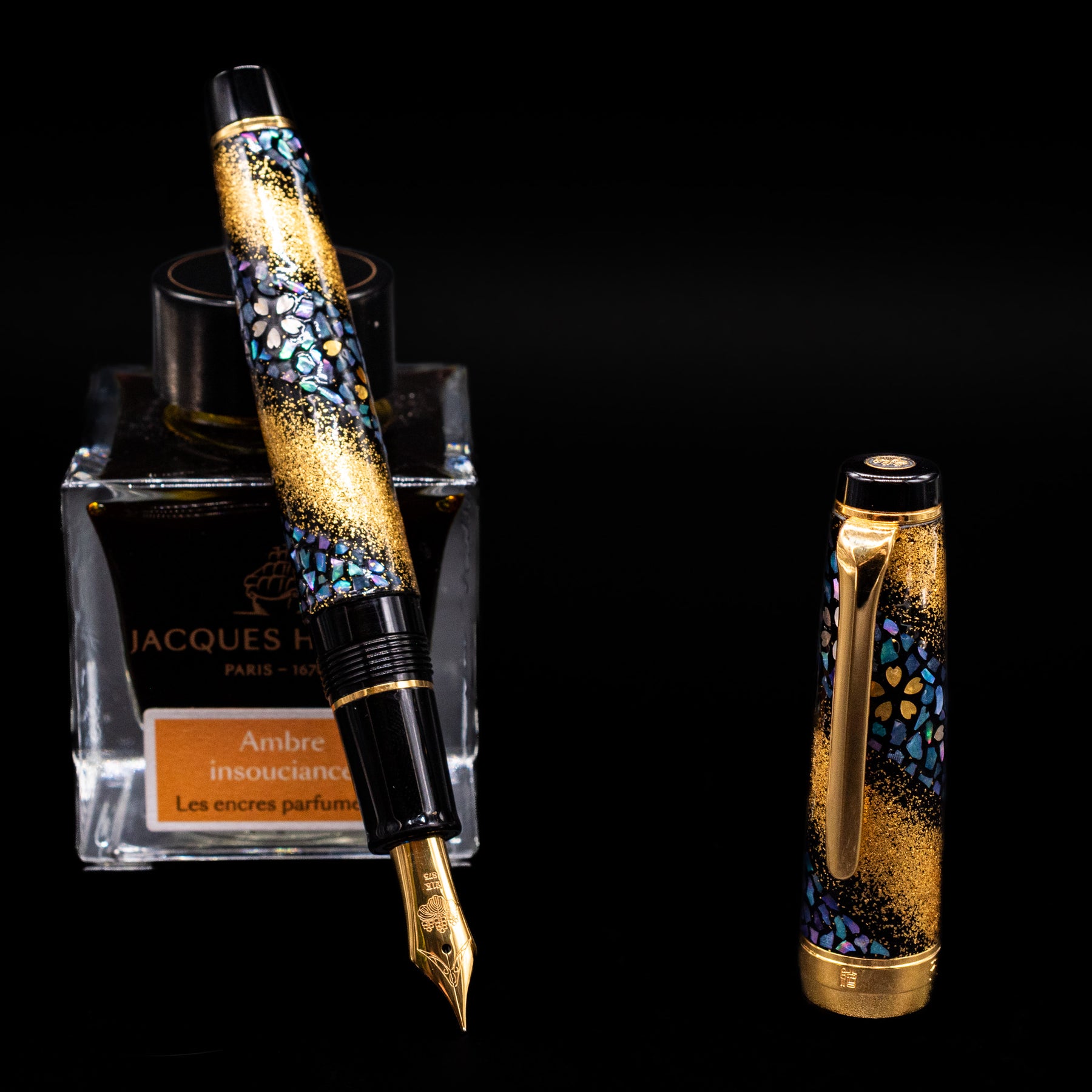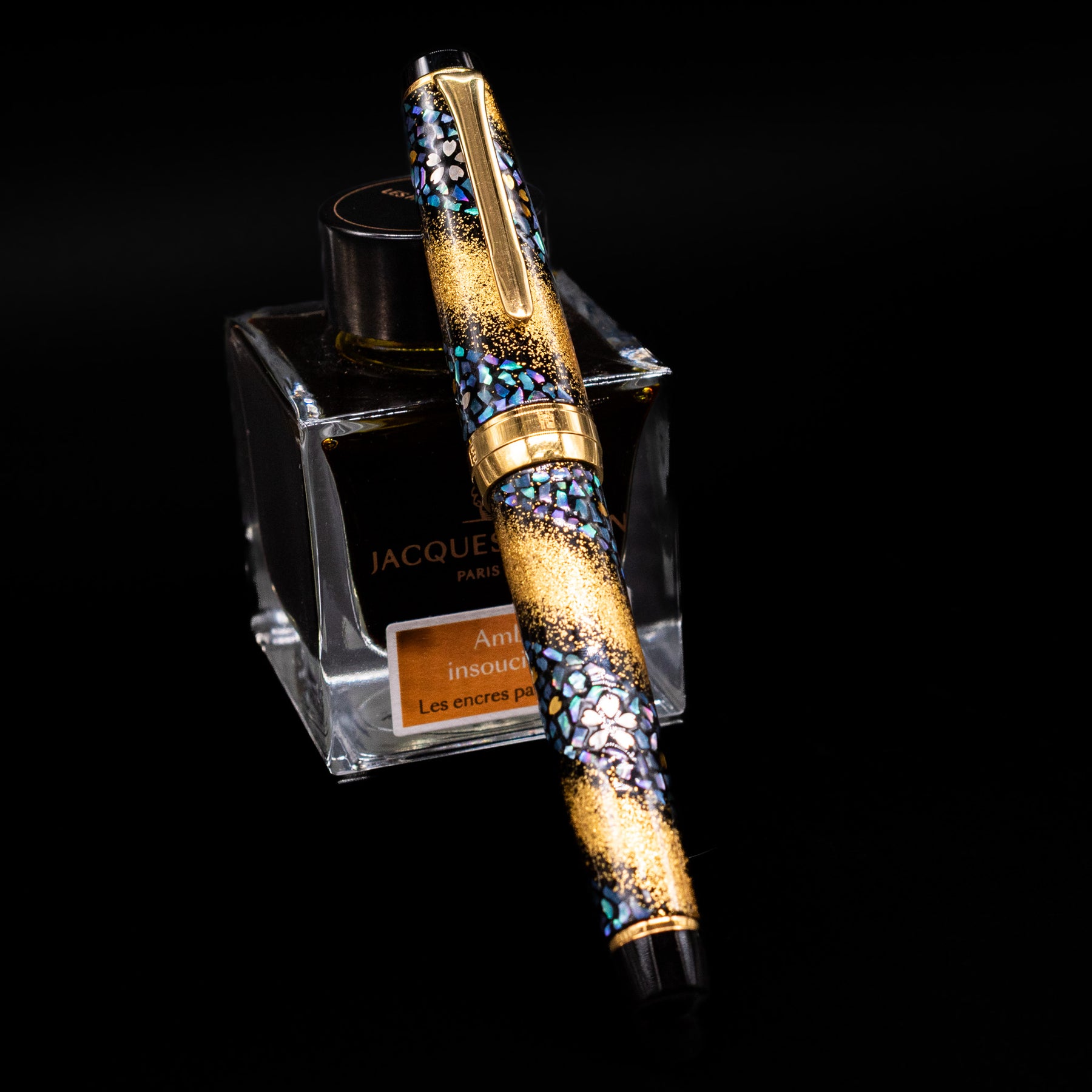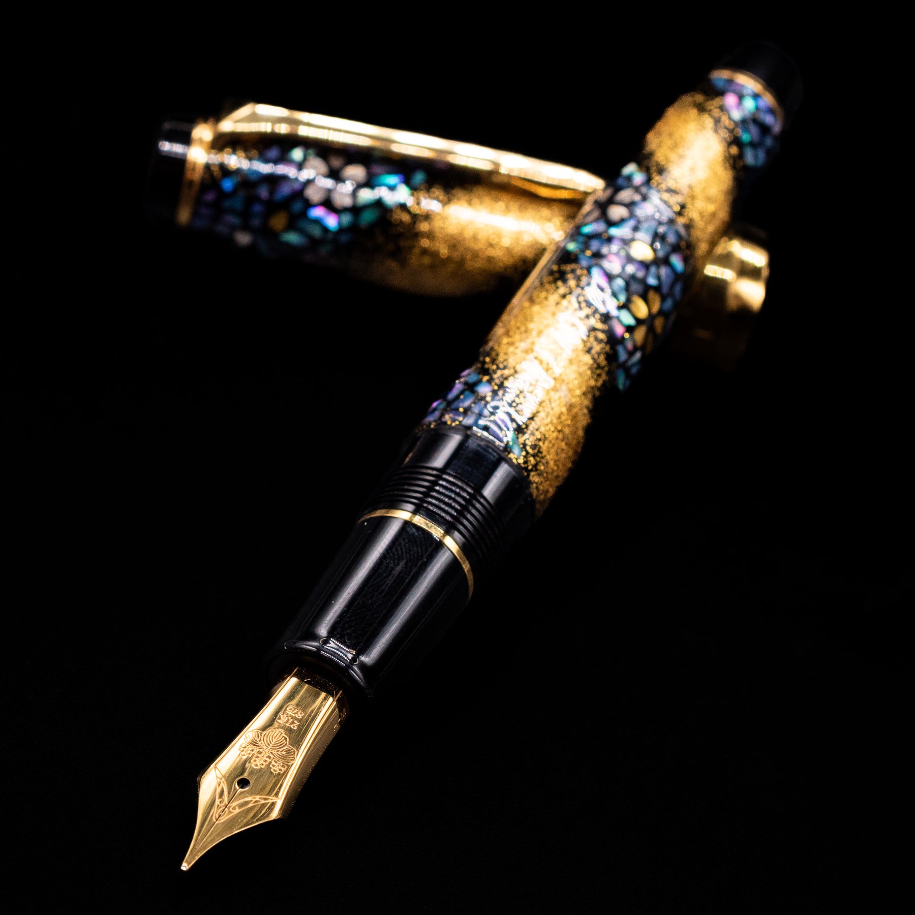 Most examples of the Prime Minister edition are based on the Professional Gear platform, featuring Sailor’s distinctive flat-top design and precision-engineered resin construction. The pen is typically adorned with intricate urushi lacquer, maki-e, and raden (mother-of-pearl) decoration, often depicting flowing cherry blossoms — a motif known as Sakura Nagare (“cherry blossom stream”). These layered decorative techniques create remarkable depth and texture, making each piece visually complex and unmistakably handcrafted.