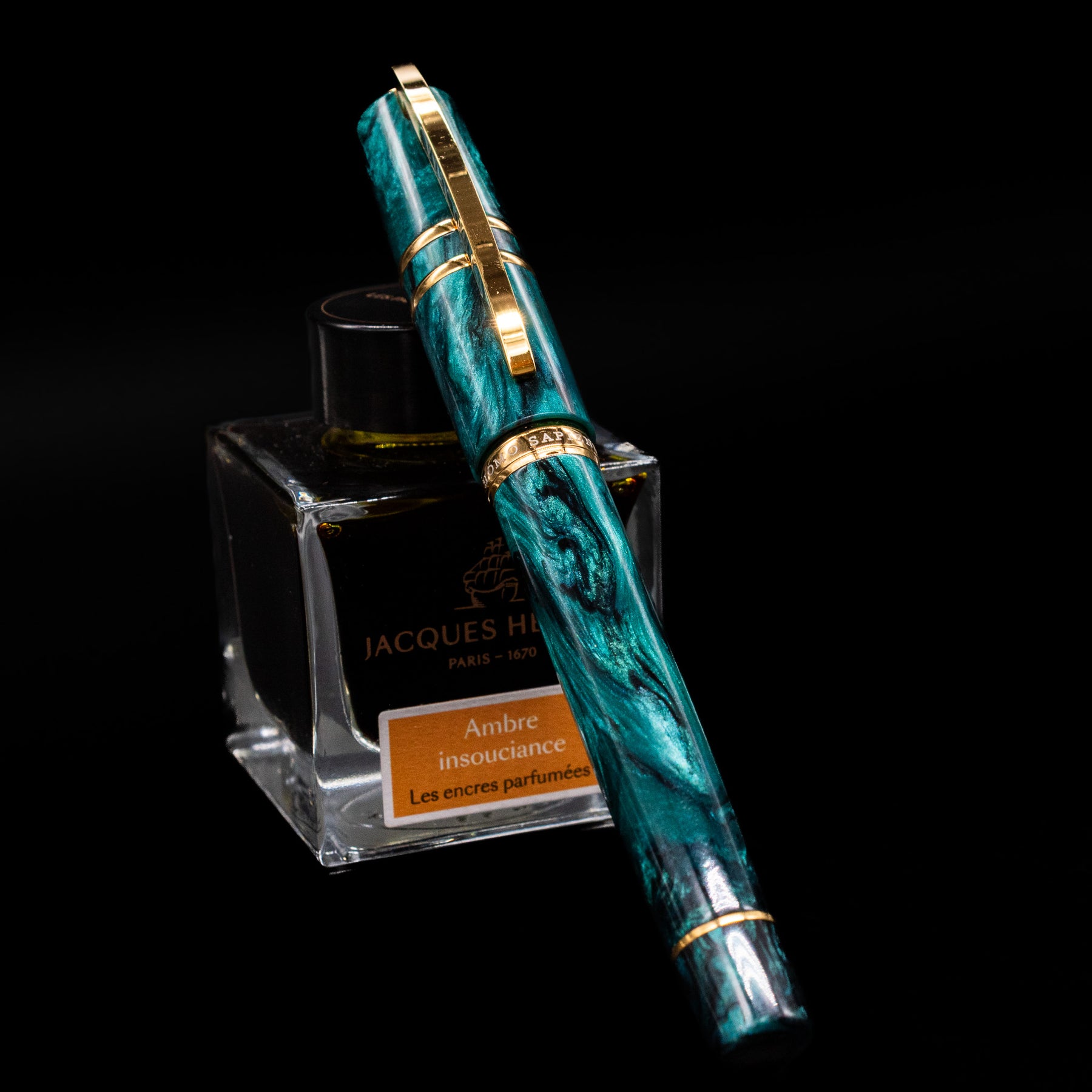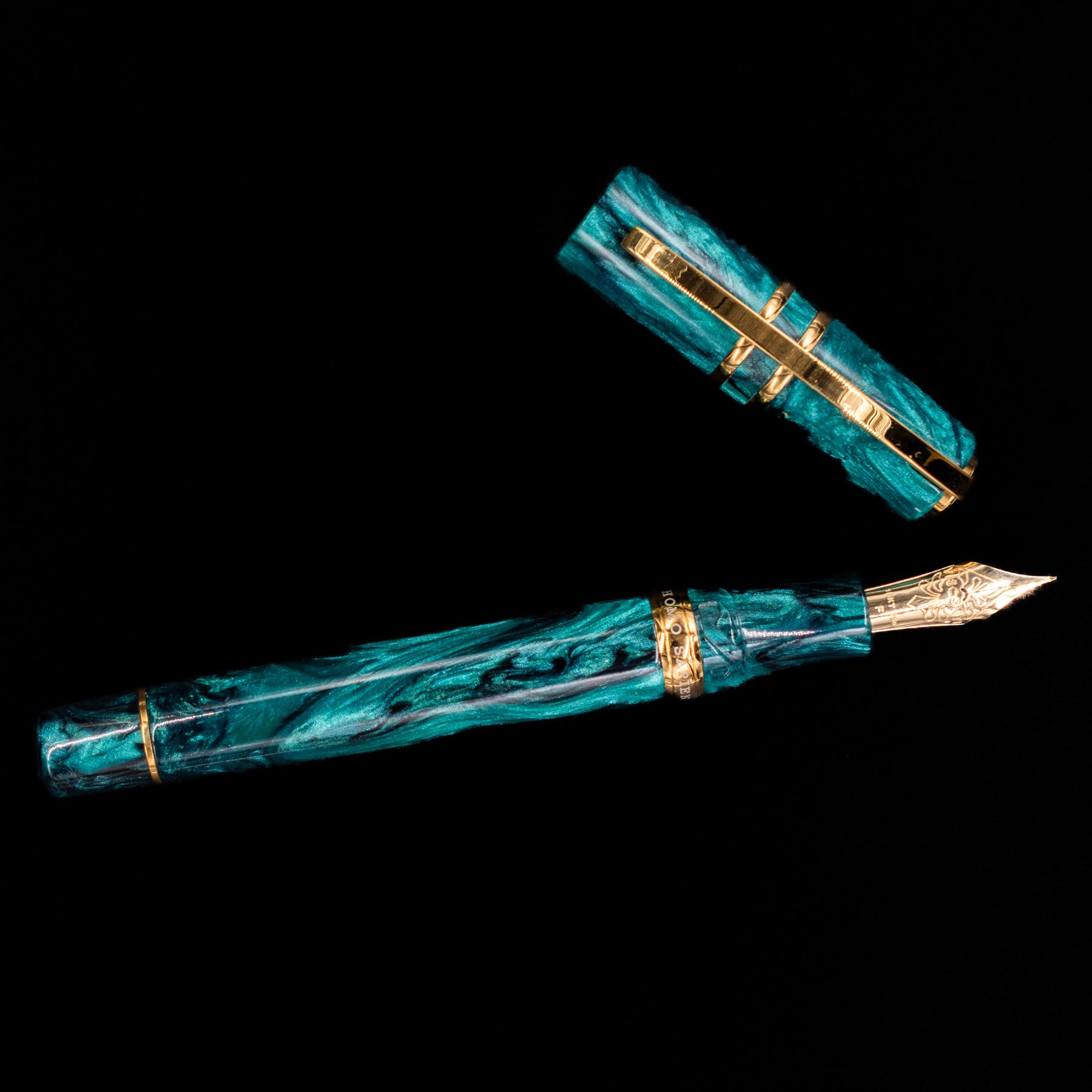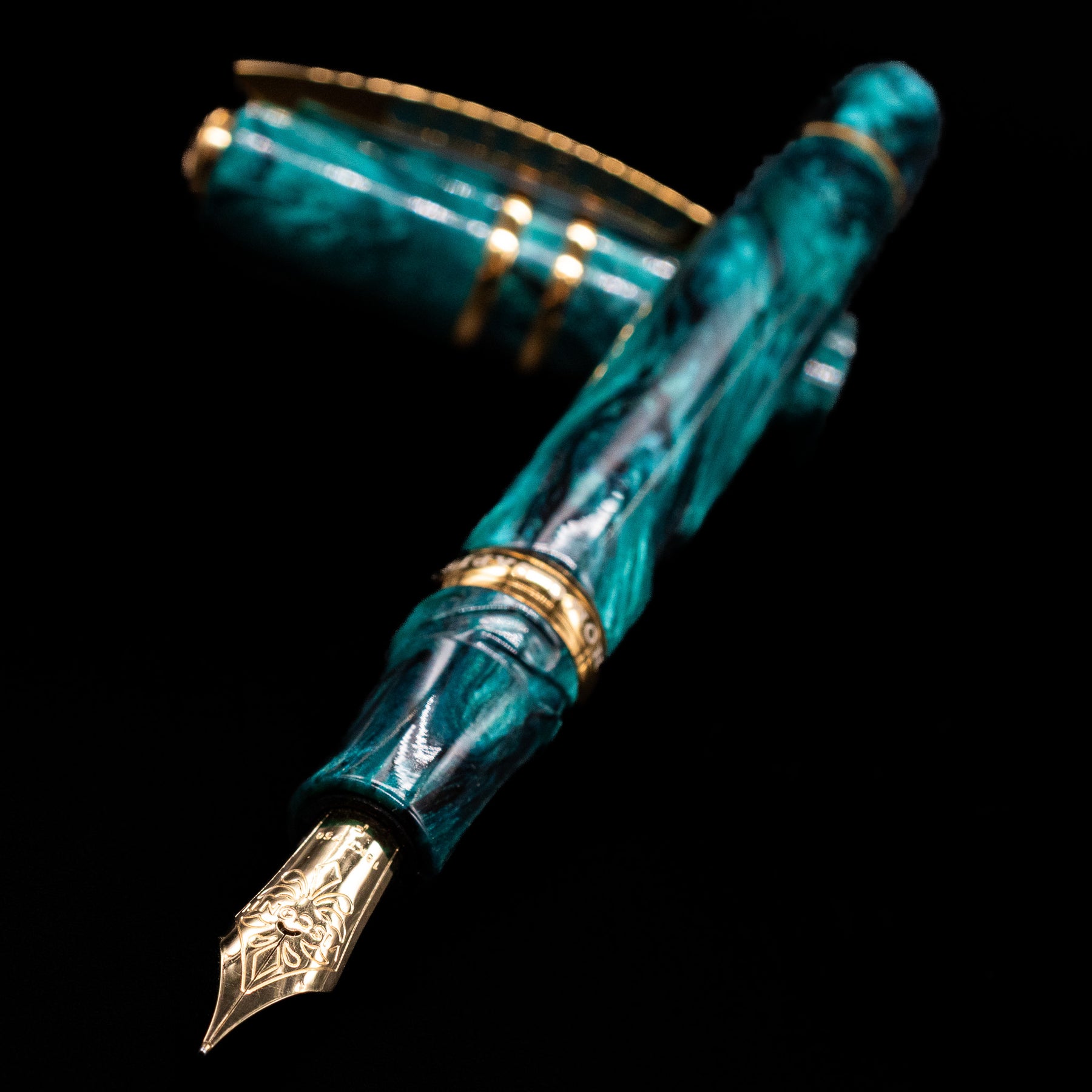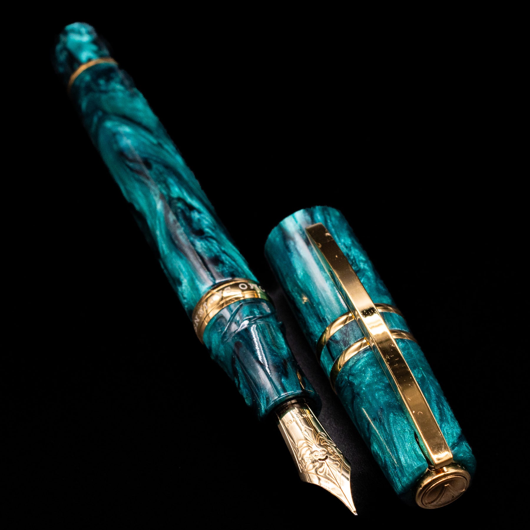 Each Dark Emerald pen is crafted from rich emerald-green acrylic enhanced with soft black veins and a subtle metallic sheen. The interplay of light, depth, and color creates a gemstone-like effect that’s both striking and elegant. Polished gold-plated trim and a matching enameled clip complete the pen’s refined aesthetic, offering warm contrast to the deep green body.