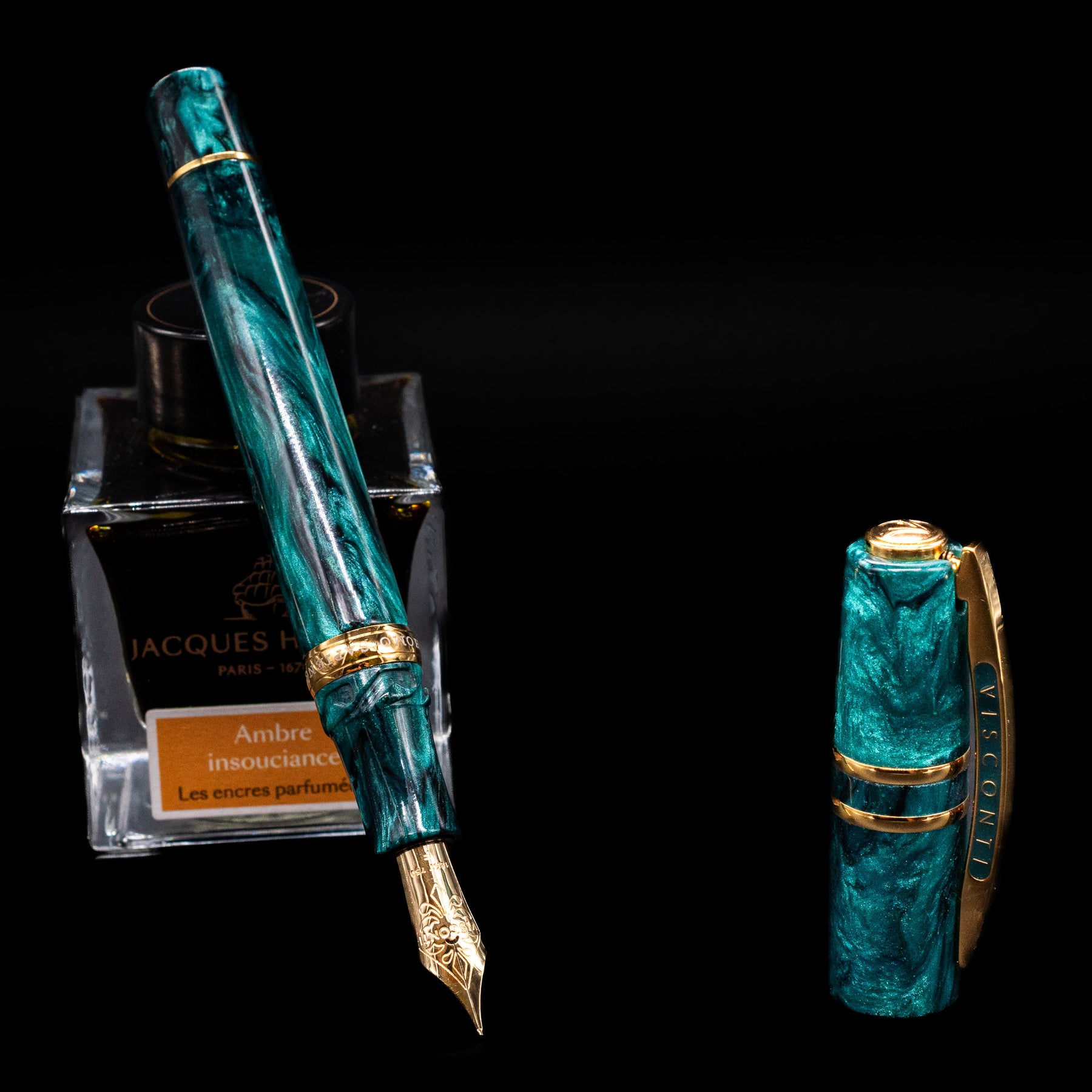 Designed for premium performance, the pen features Visconti’s patented Double Reservoir Power Filler system — a vacuum-based mechanism that allows effortless, high-capacity filling directly from bottled ink. The fountain pen is fitted with a precious 18K gold nib, delivering smooth, consistent ink flow and a luxurious writing experience. With its limited production and thoughtful design, the Dark Emerald stands out as a standout collectible and everyday writer.