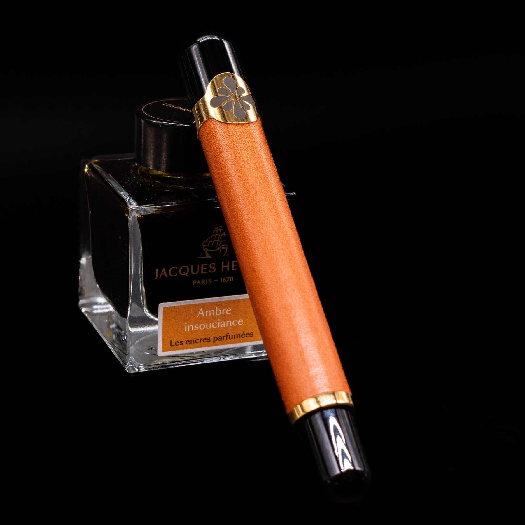 The defining feature of this edition is its genuine camel leather exterior, carefully applied by hand to create a warm, tactile surface that stands apart from traditional lacquer or resin finishes. The leather evokes classic interiors—reminiscent of vintage automobiles and refined lounges—giving the pen a unique character that develops further with use.