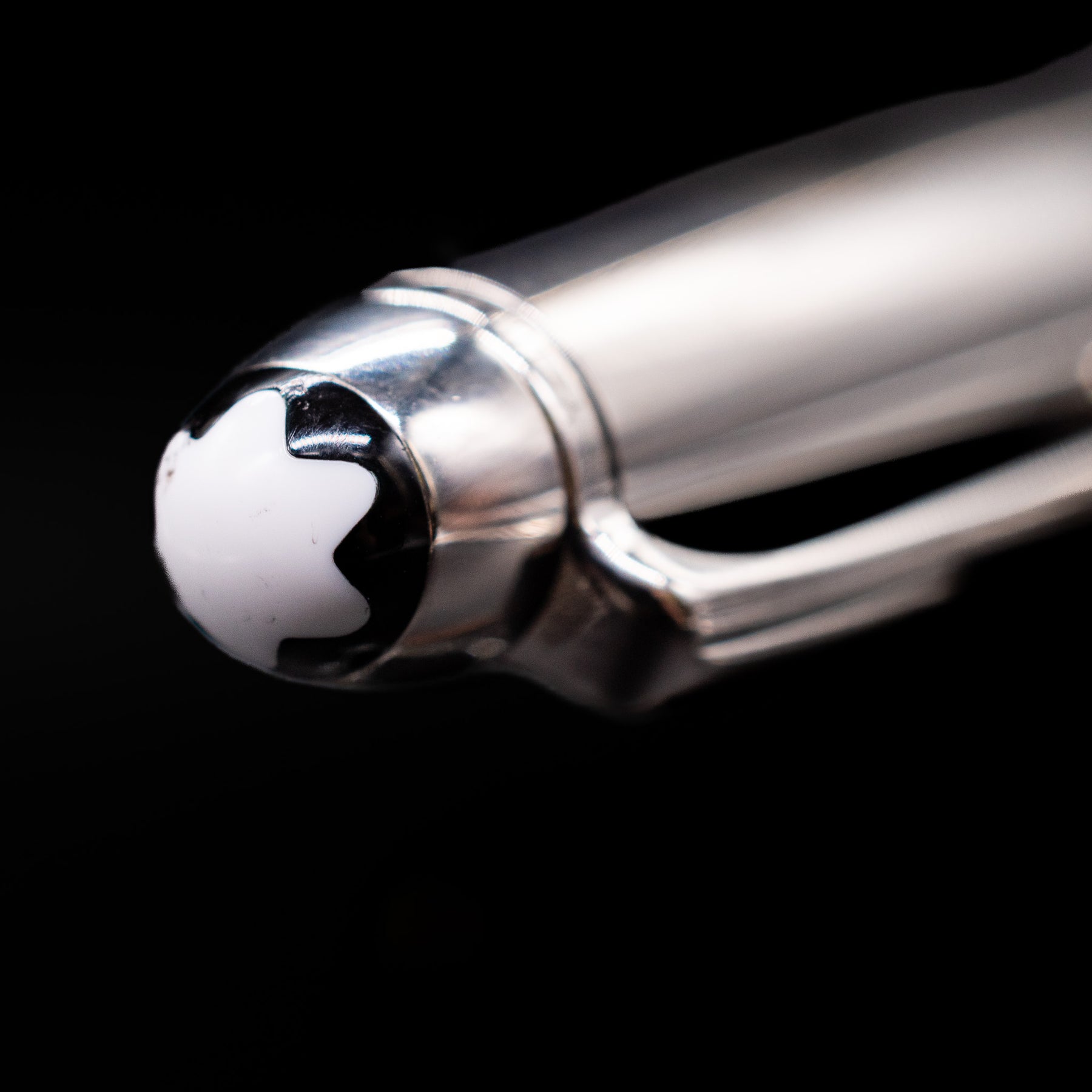 Zoomed-in view of the top of the cap with the finial on the Montblanc Meisterstuck 144 Solitaire Doue Signum Fountain Pen - Preowned.