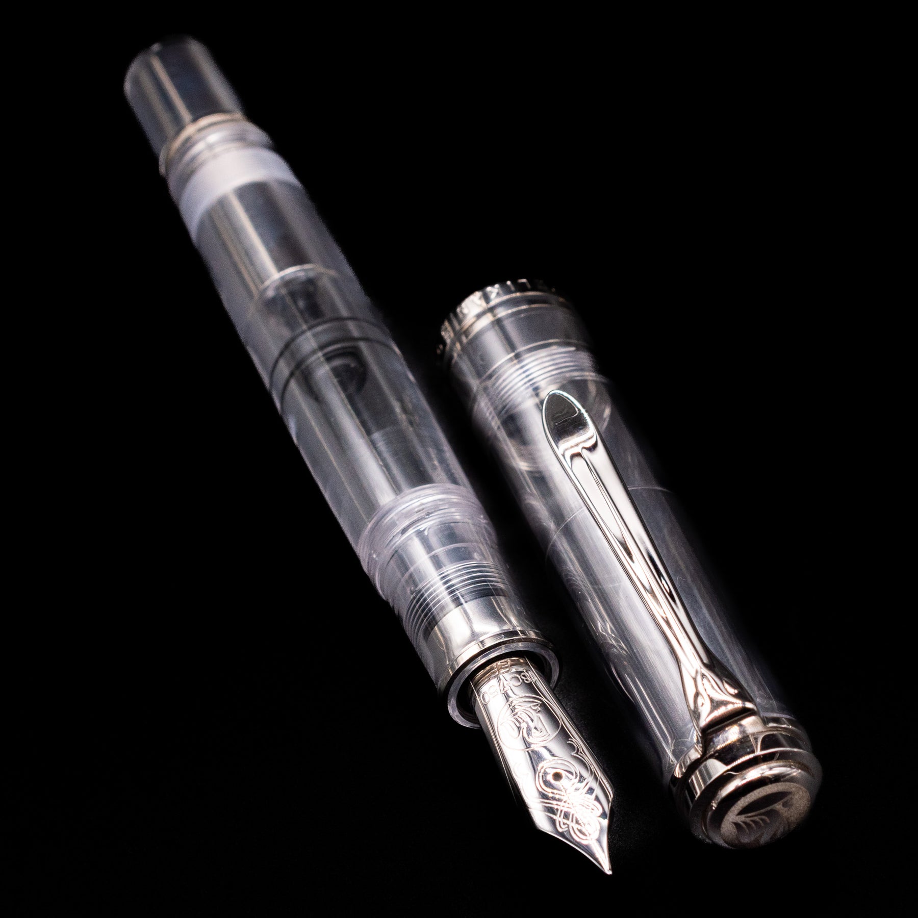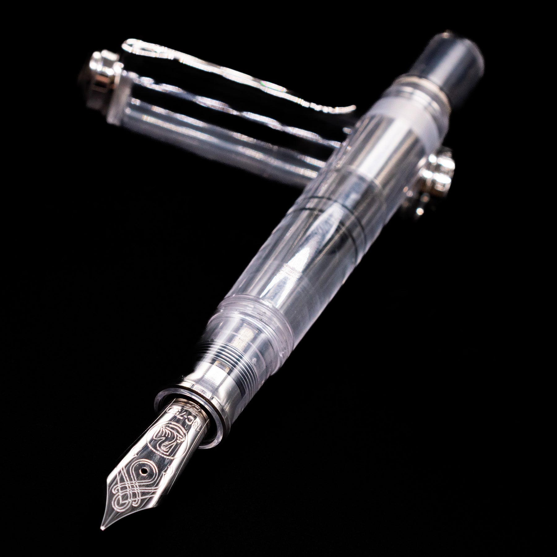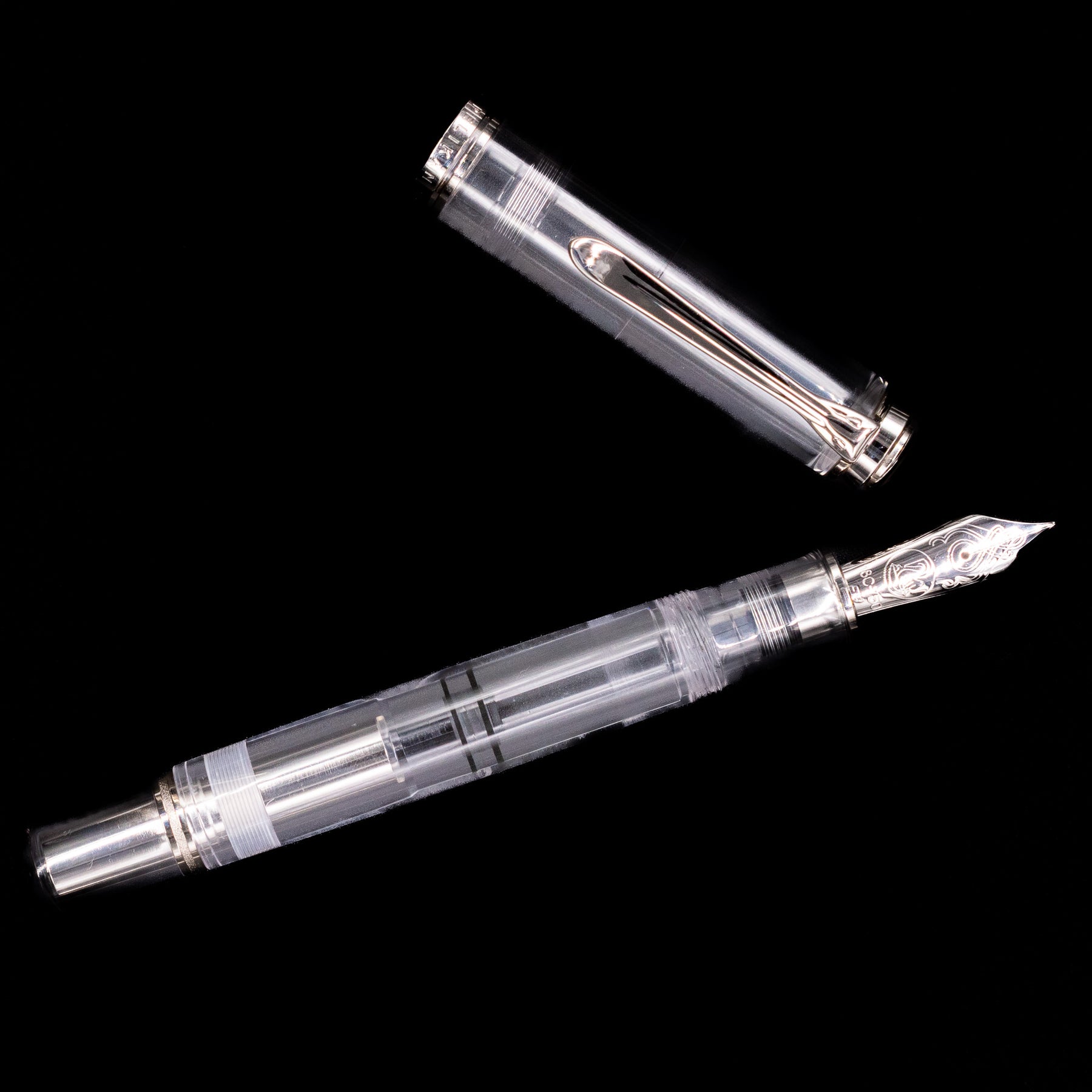 Measured on the larger end of Pelikan’s Souverän lineup, the M1005 combines presence with comfort. Its demonstrator transparency allows you to watch ink move through the barrel and clearly see ink levels, providing both functional clarity and visual appeal. Polished 24k gold-plated trim — including the signature beak-shaped clip and elegant cap bands — adds a touch of classic Pelikan luxury to the modern transparent aesthetic.