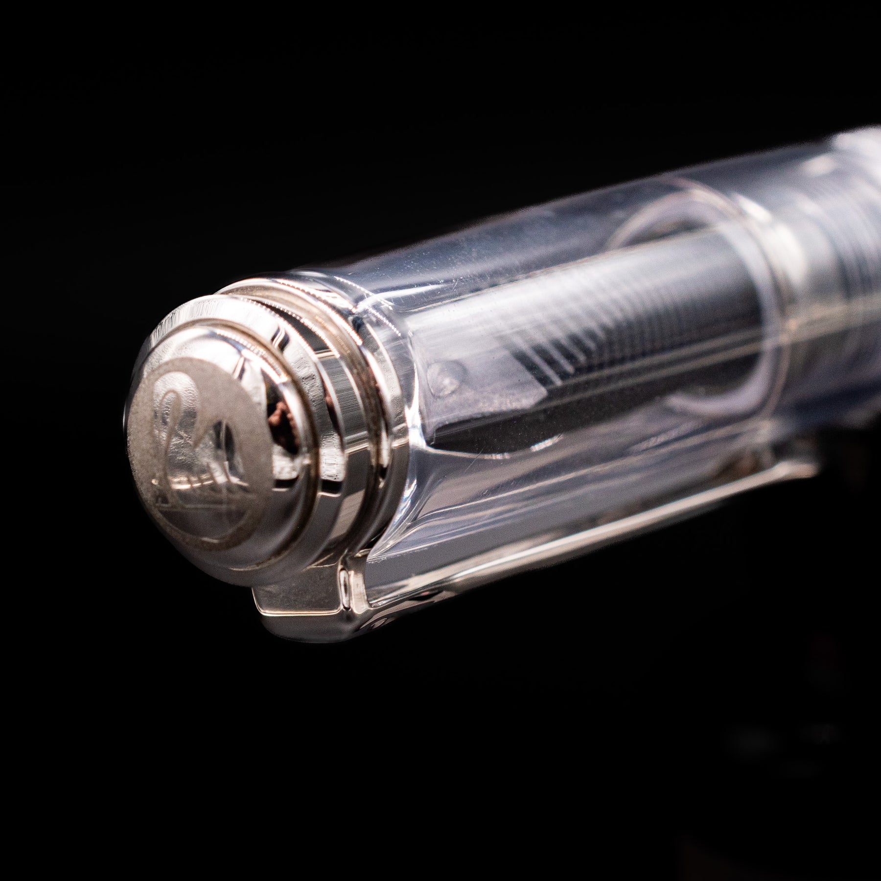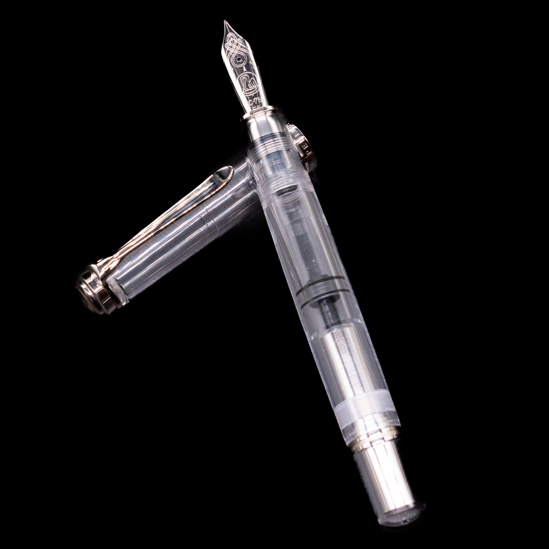 Transparent demonstrator resin body — full view of internal piston mechanism and ink level