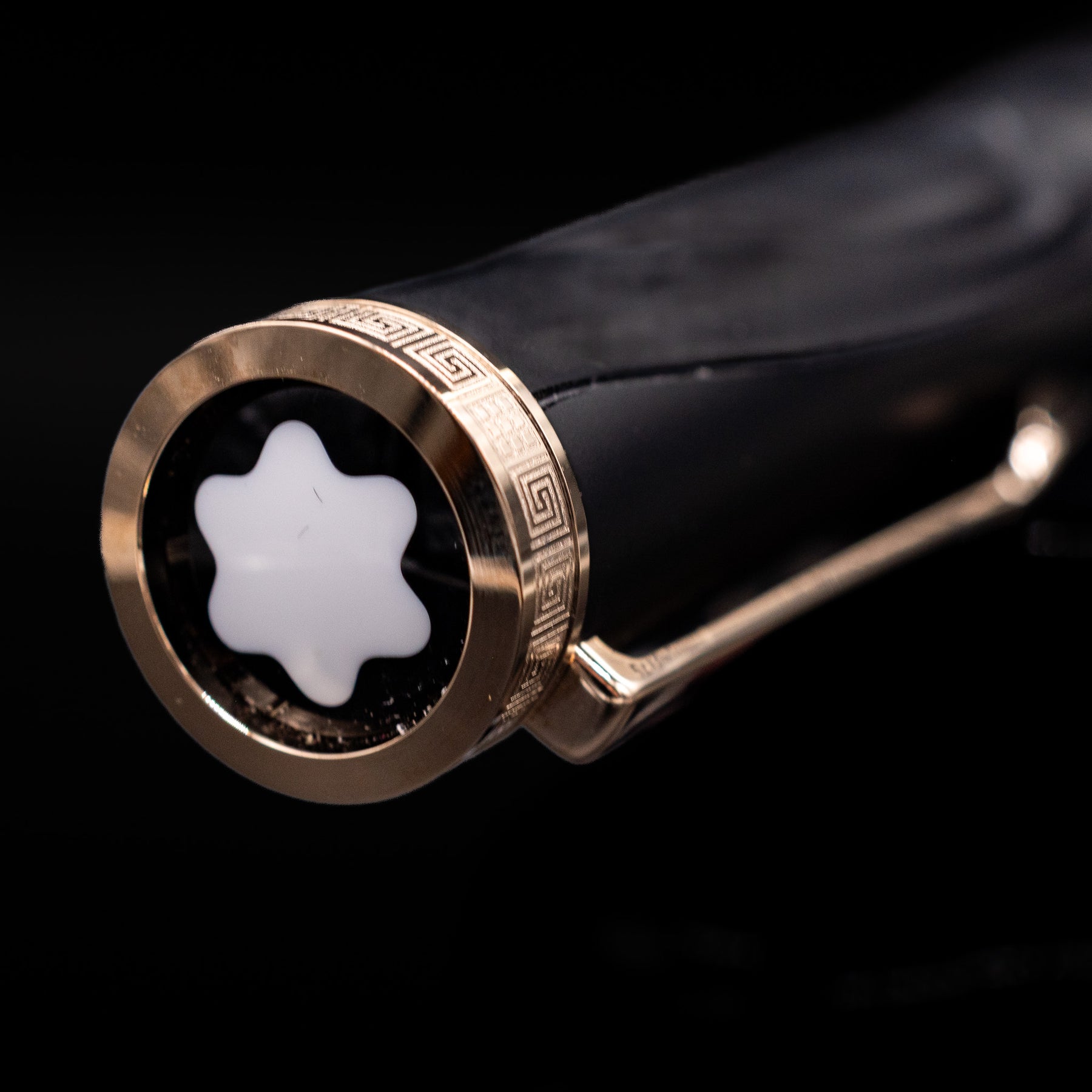 Let's symbolize the victory with Homer Series pens. Montblanc Homage to Homer Ballpoint Pen - Writer's Edition - Limited Edition 2018 - Black design takes main inspiration from the story of the Trojan horse. The overall shape is inspired by the horse, with the back and clip reflecting the spear. The engraving on the cone and rings borrows motifs from traditional Greek black-figured pottery, with the overall color of the writing instrument taking inspiration from this same black Greek pottery.Use Montblanc Ballpoint Refill for re-using Homer series ballpoint pens that are available in wide range of ink colors.