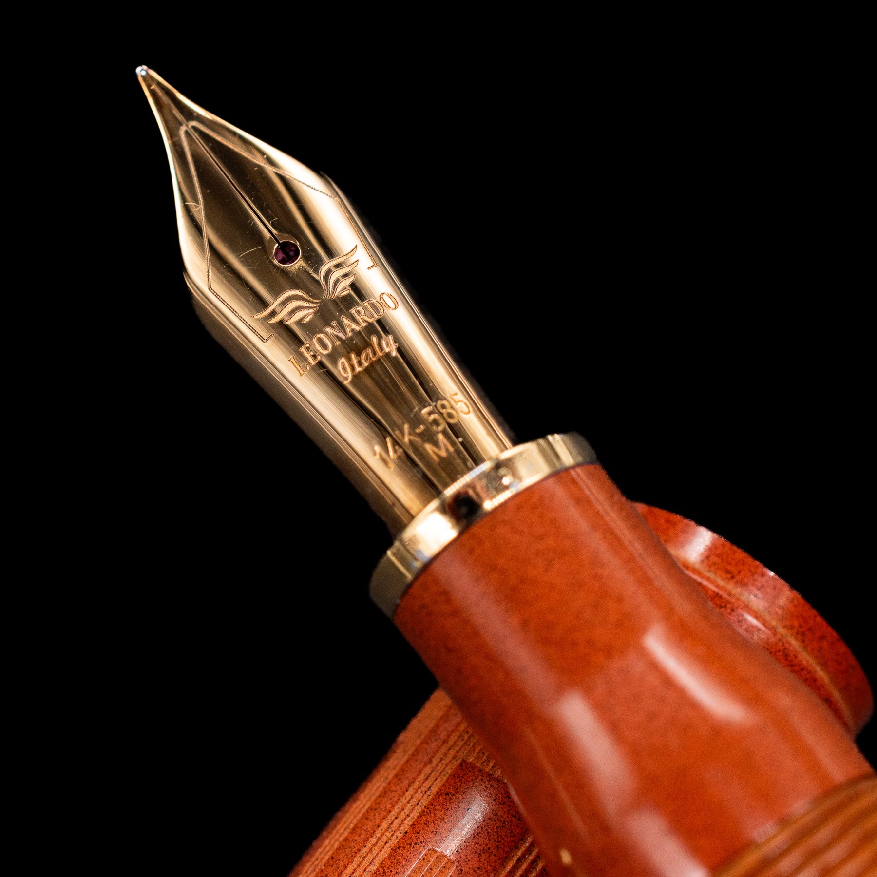 Inside, the pen houses a smooth-writing #8 14k gold nib, delivering excellent ink flow and reliability. As a Momento Zero Grande, it includes Leonardo’s signature piston-filling system, offering generous ink capacity ideal for daily writers and ink enthusiasts.