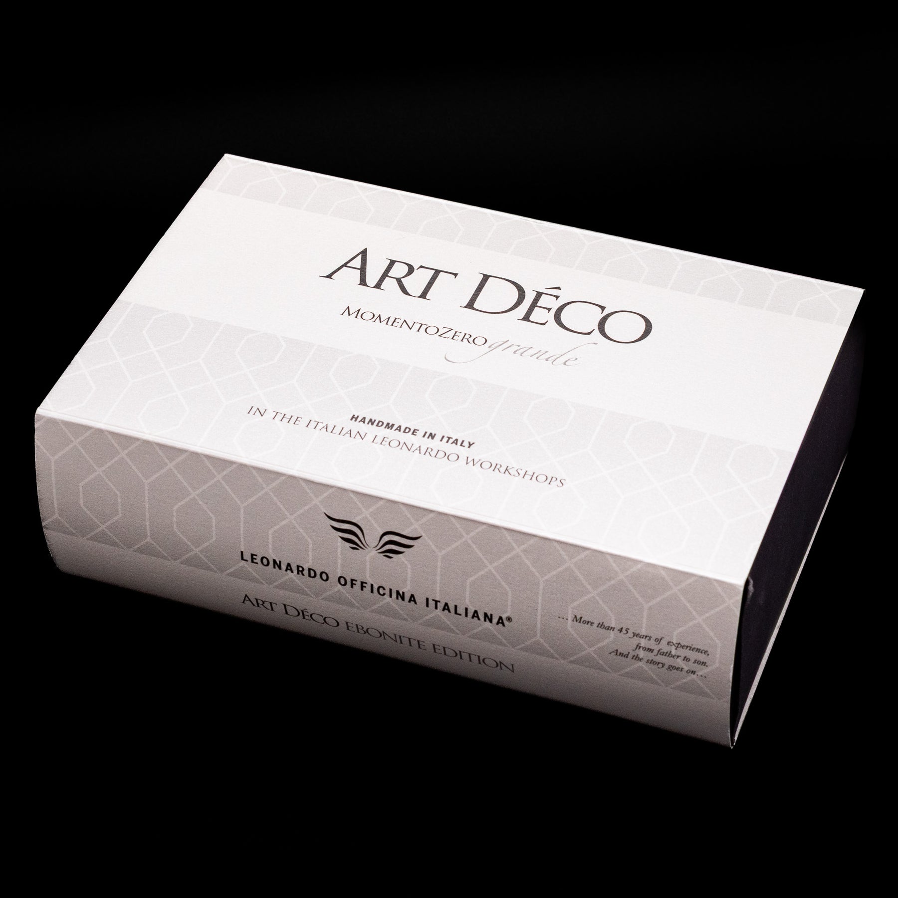 Built on Leonardo’s oversized MZG (Momento Zero Grande) platform, the pen offers a commanding presence with a comfortably contoured barrel and cap. The Art Deco edition is fitted with gold-plated trim, complementing the monochromatic palette and enhancing the pen’s refined architectural feel.