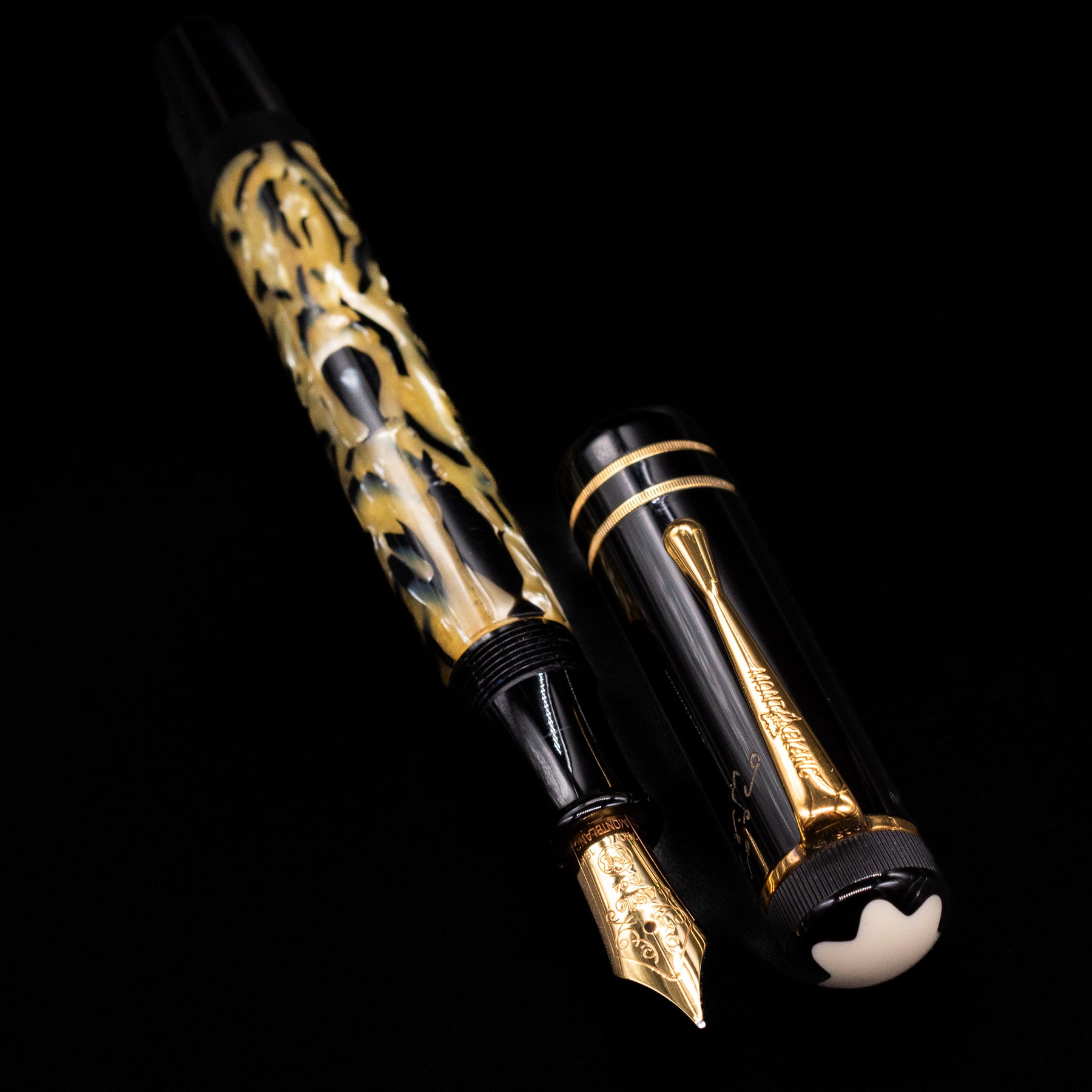 Oscar Wilde is quoted as having said: "I have very simple tastes. I am always satisfied with the very best." This sentiment is reflected in every pen in the Writers Edition created in his honour. The unconventionally decorated barrel, made of marbled precious resin and the many details hint at the passionate spirit of Oscar Wilde. Both the clip and the mountings are made of gold-plated 925 sterling silver. An engraved signature of the author decorates the cap of the pen. And the handmade 18-karat gold nib, with its highly detailed engravings in the style of the age in which Wilde lived, complete this extraordinary tribute to an extraordinary person.