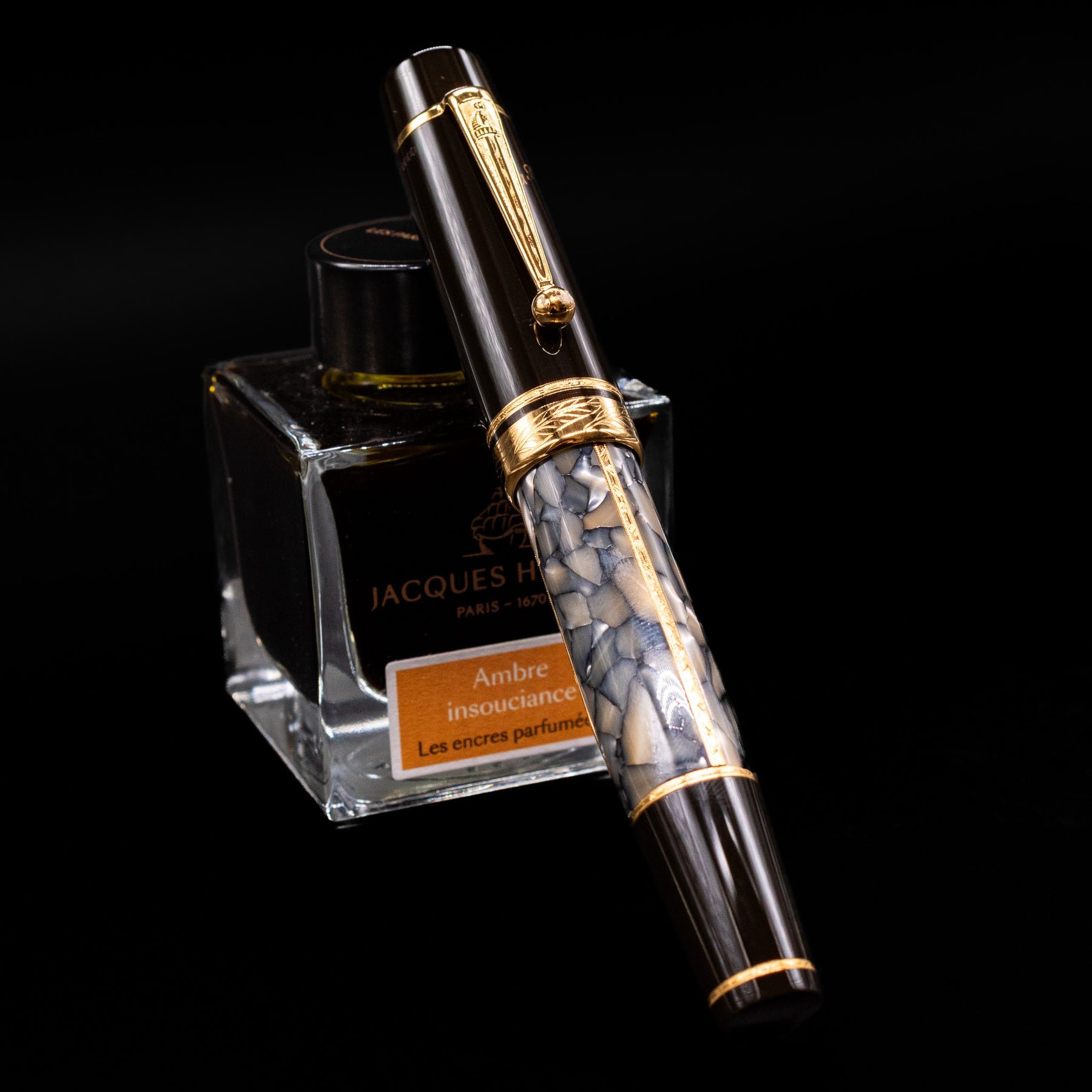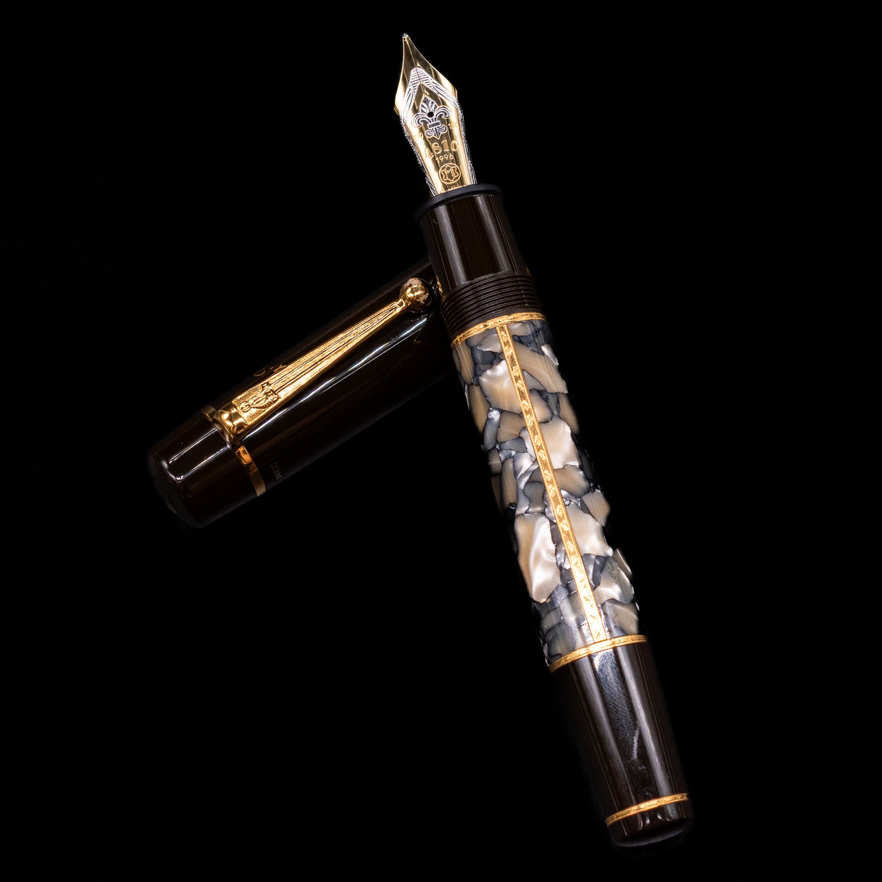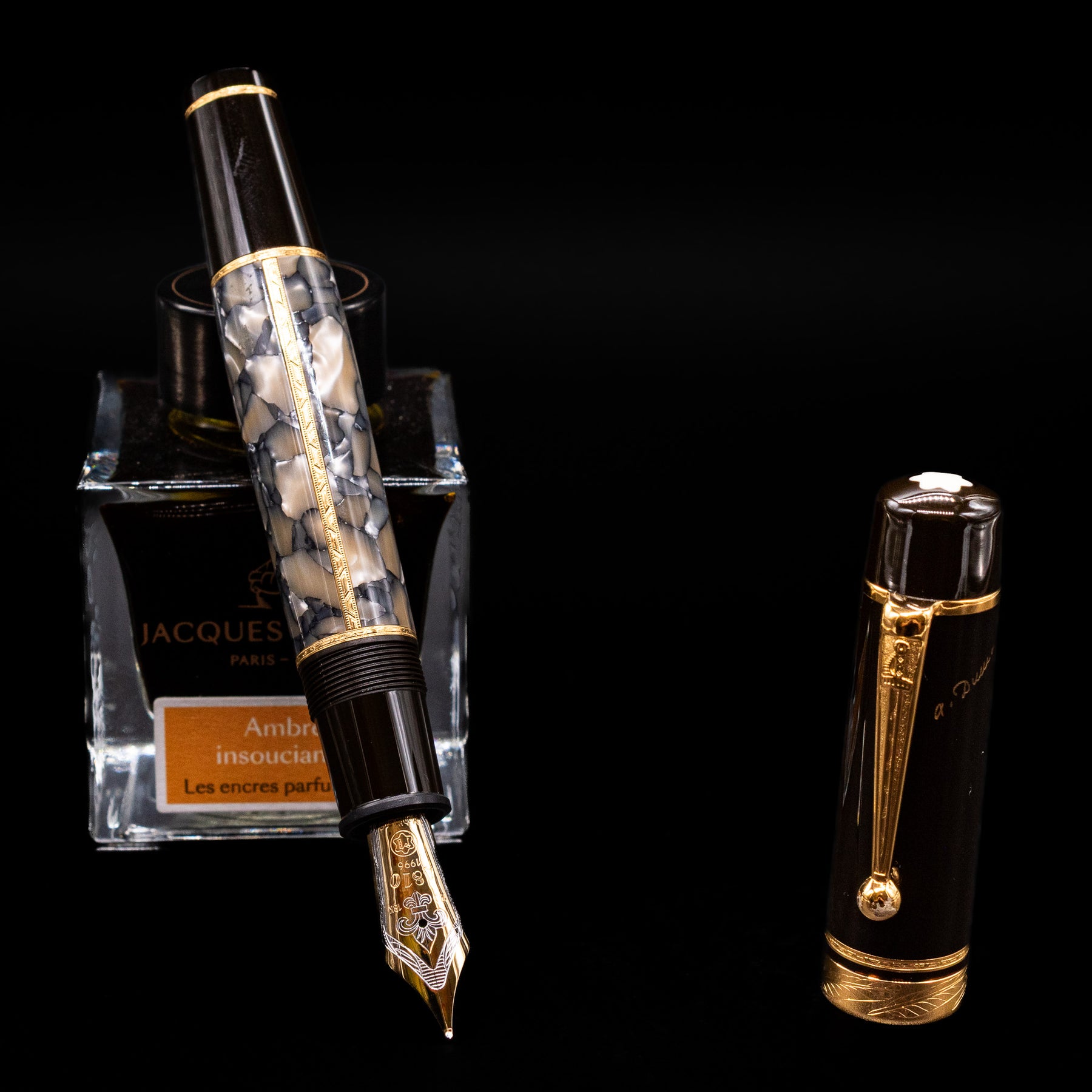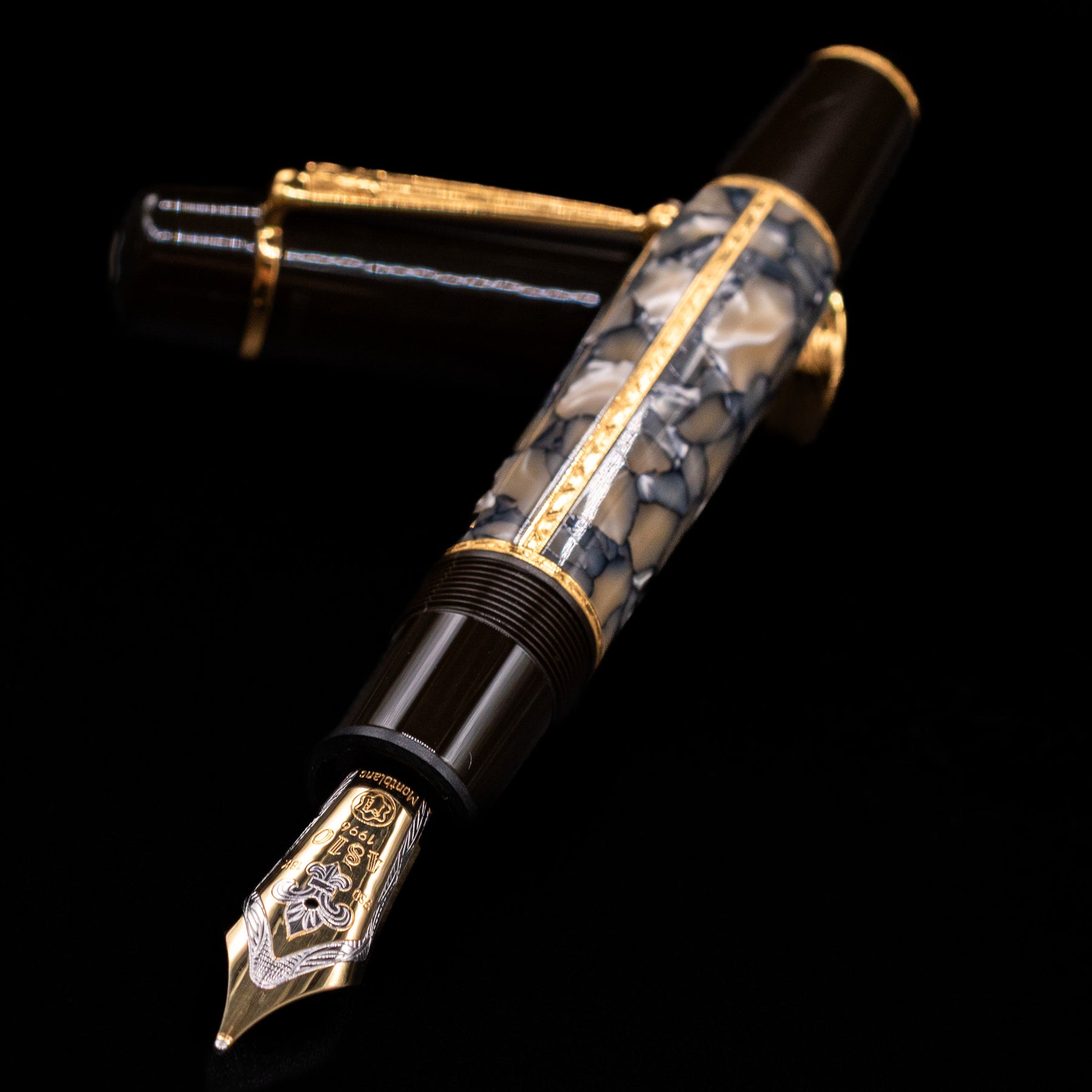 Just as perfect as the work of this great novelist are the Alexandre Dumas Writers Edition pens. Created from the finest of materials, they have a mysterious shimmering appearance which is set off by a dark brown precious resin cap. On top of this, every detail emphasizes the personality of Alexandre Dumas: the clip with its distinctive sword symbol, the rhodium-plated 18-karat gold nib, which is decorated by a fine engraving of a fleur-de-lis, and the gold-colored signature on the cap.