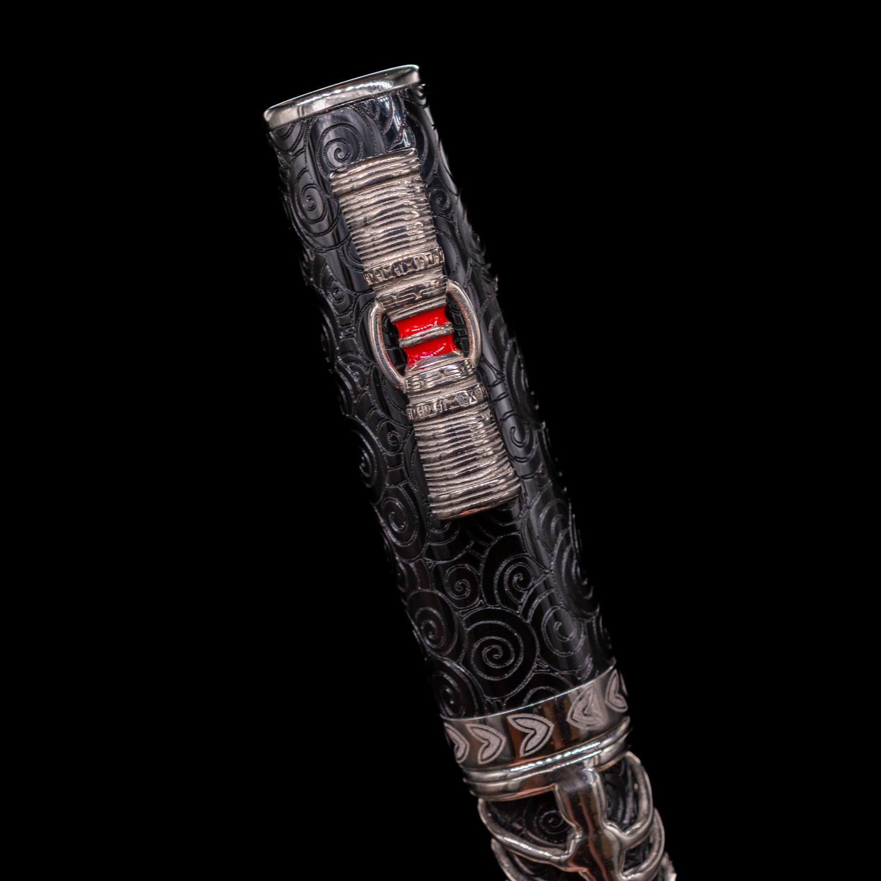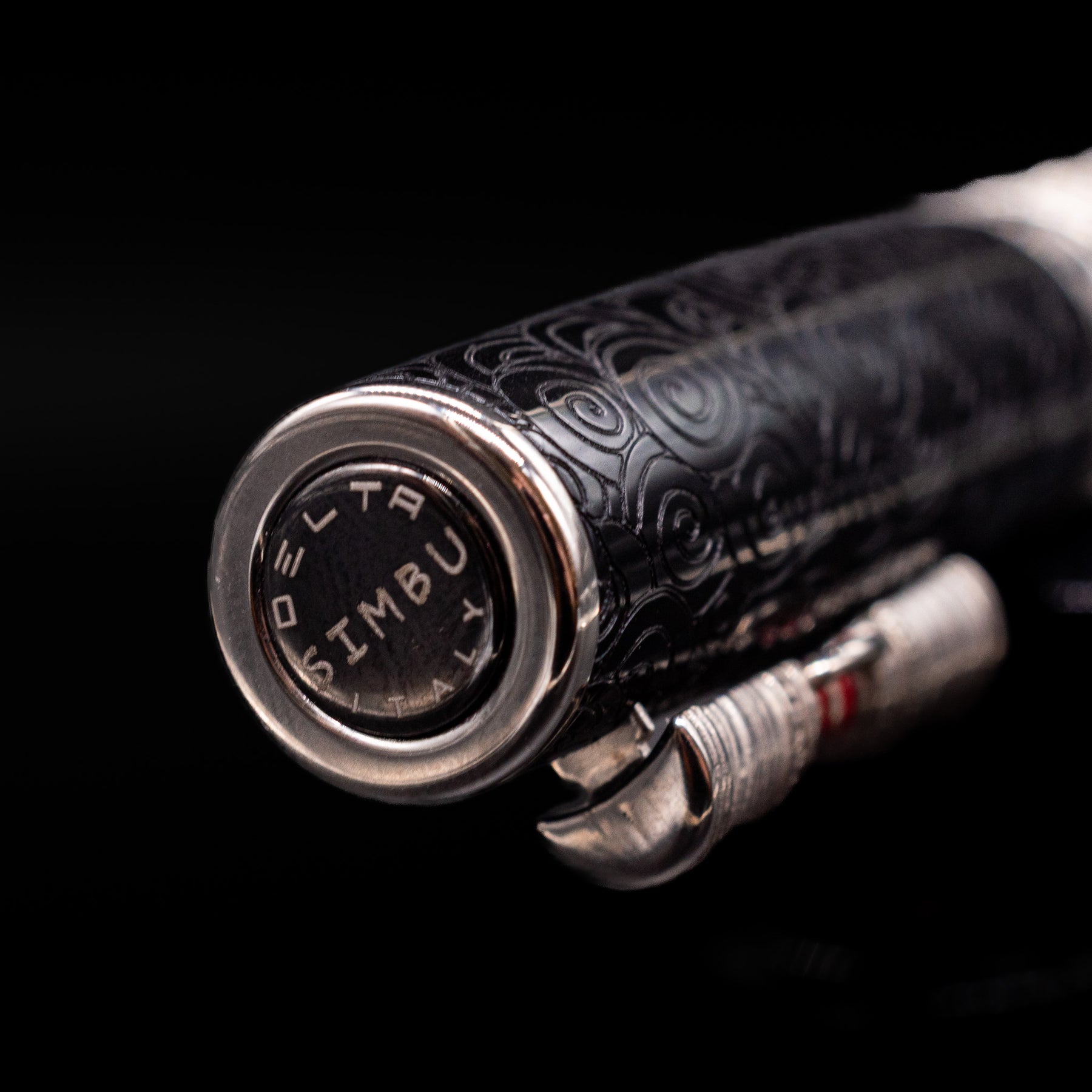 Close-up view of the cap on the Delta Indigenous People Sterling Silver Fountain Pen - Simbu (Limited Edition).