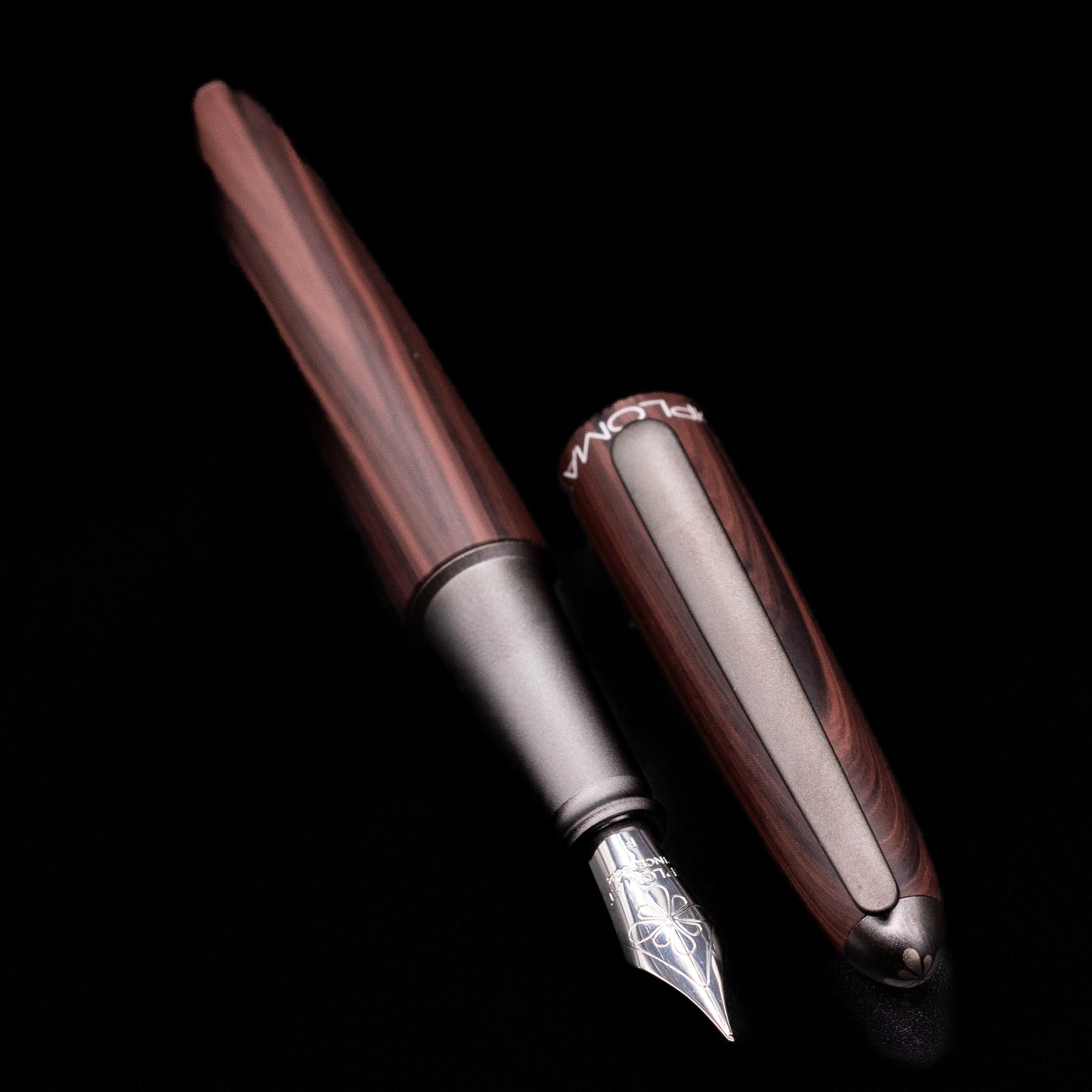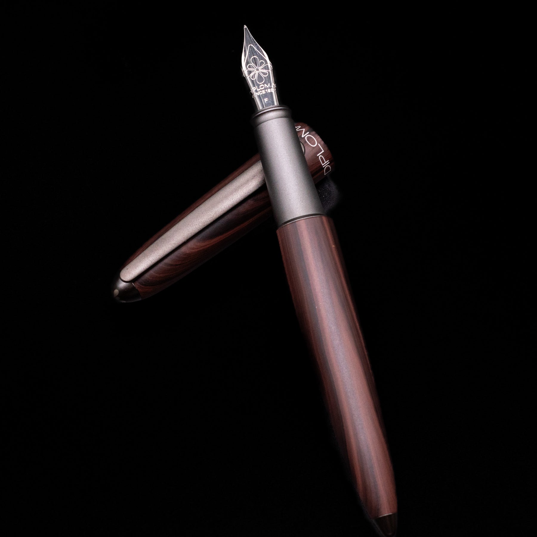 The Diplomat Aero Fountain Pen – Black Forest brings a nature-inspired aesthetic to one of Diplomat’s most iconic modern writing instruments. Combining organic visual warmth with the precision of German engineering, this special edition pairs the Aero’s unmistakable Zeppelin-inspired silhouette with a unique wood-grain finish that evokes the forests of southern Germany.