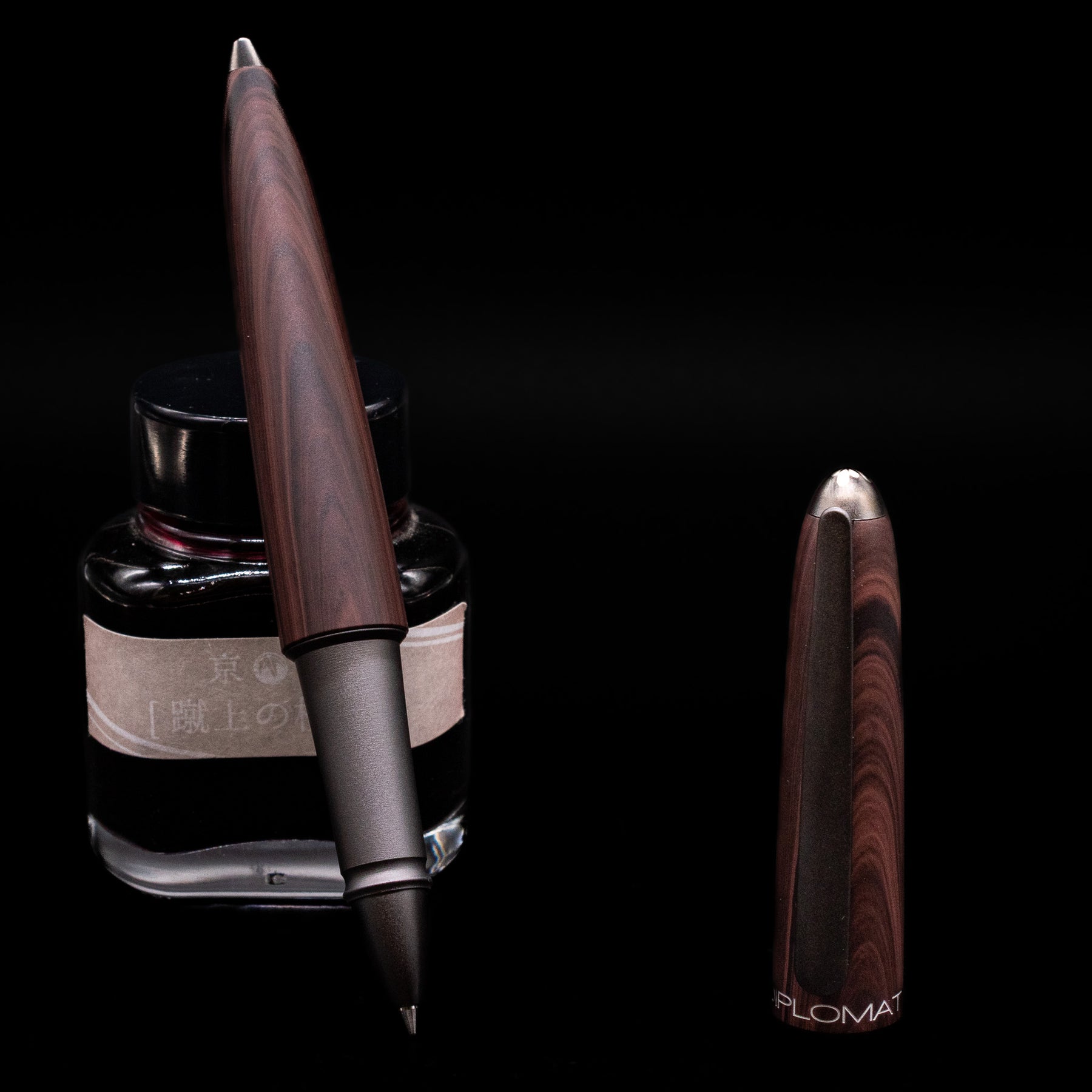 The Diplomat Aero Rollerball Pen – Black Forest brings organic inspiration to Diplomat’s iconic Aero design, blending natural aesthetics with precise German engineering. Known for its distinctive silhouette and exceptional build quality, the Aero series takes its visual cues from the streamlined forms of early Zeppelin airships, resulting in a writing instrument that feels both aerodynamic and architectural.