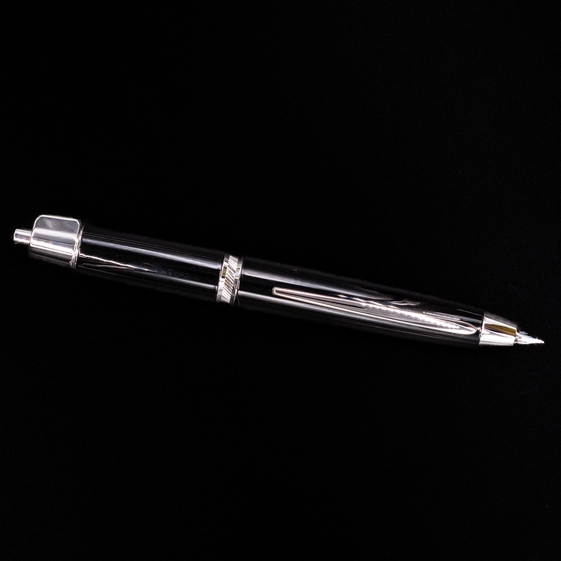 Available in a variety of 18-karat gold nibs, the Vanishing Point LS comes in black, blue, and burgundy options with rhodium accents and a stylized middle ring featuring a unique diagonal turbine pattern—exclusive to the Vanishing Point LS. This pen is now featuring an updated mechanism to enhance durability and performance!