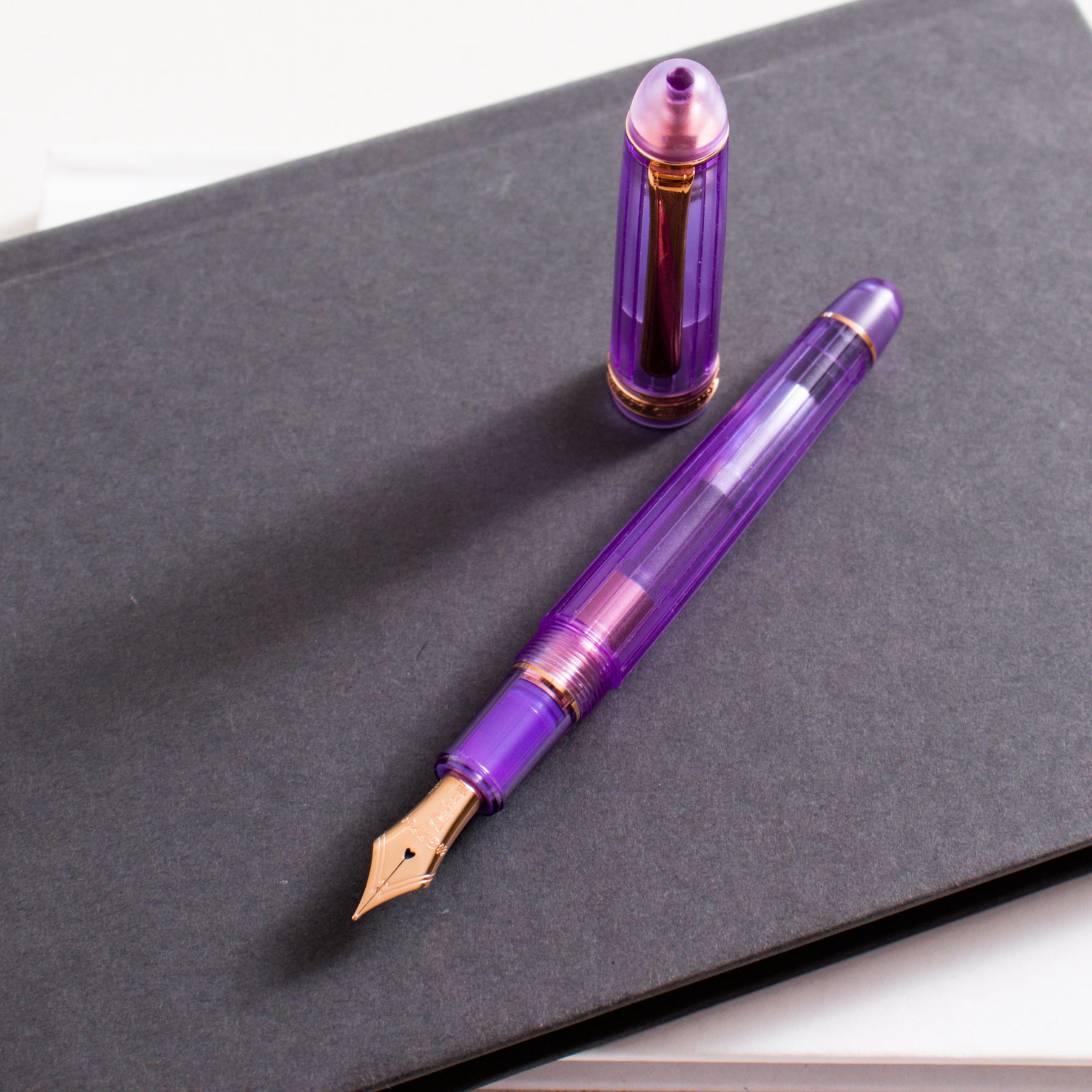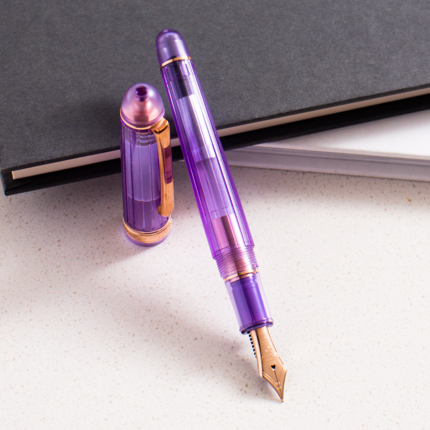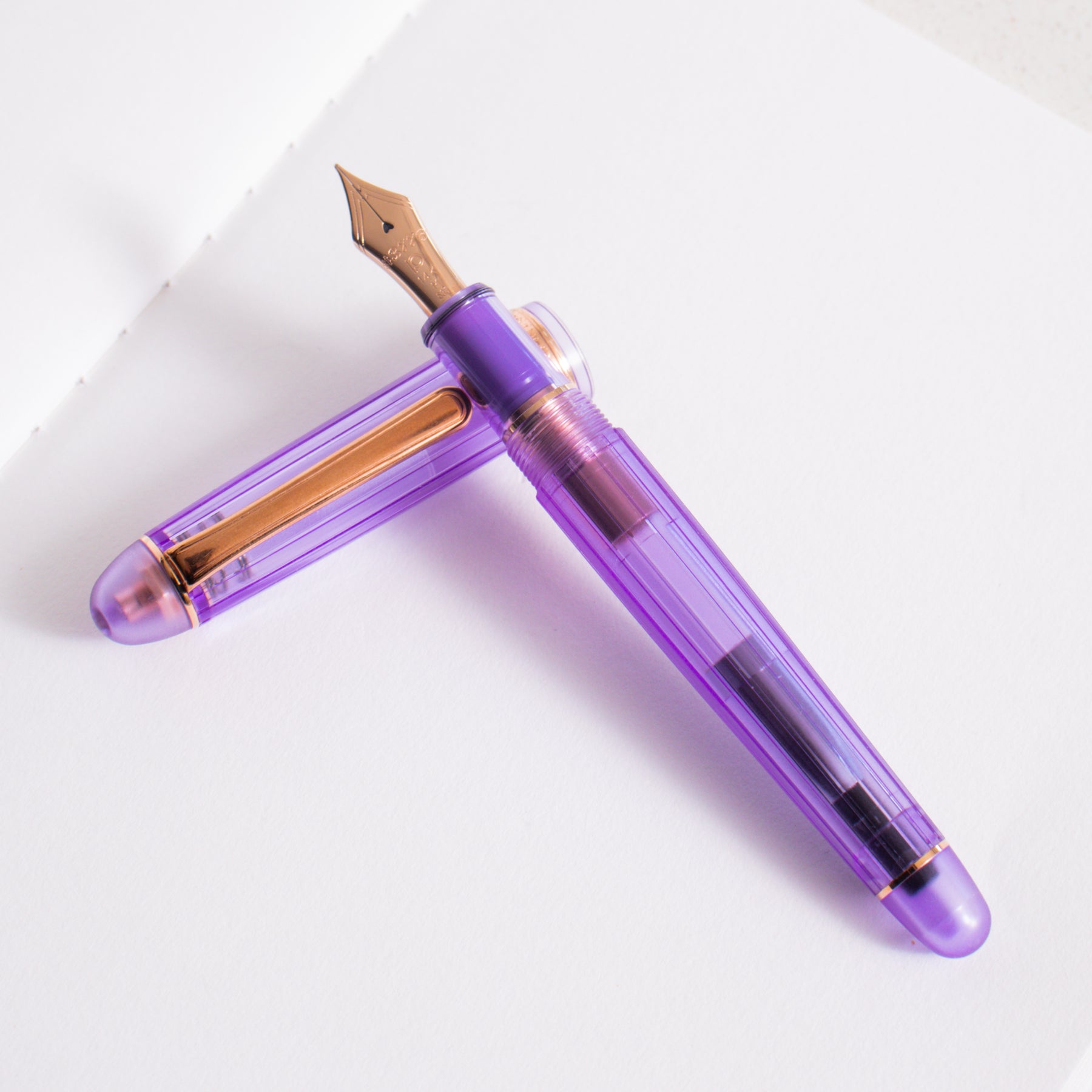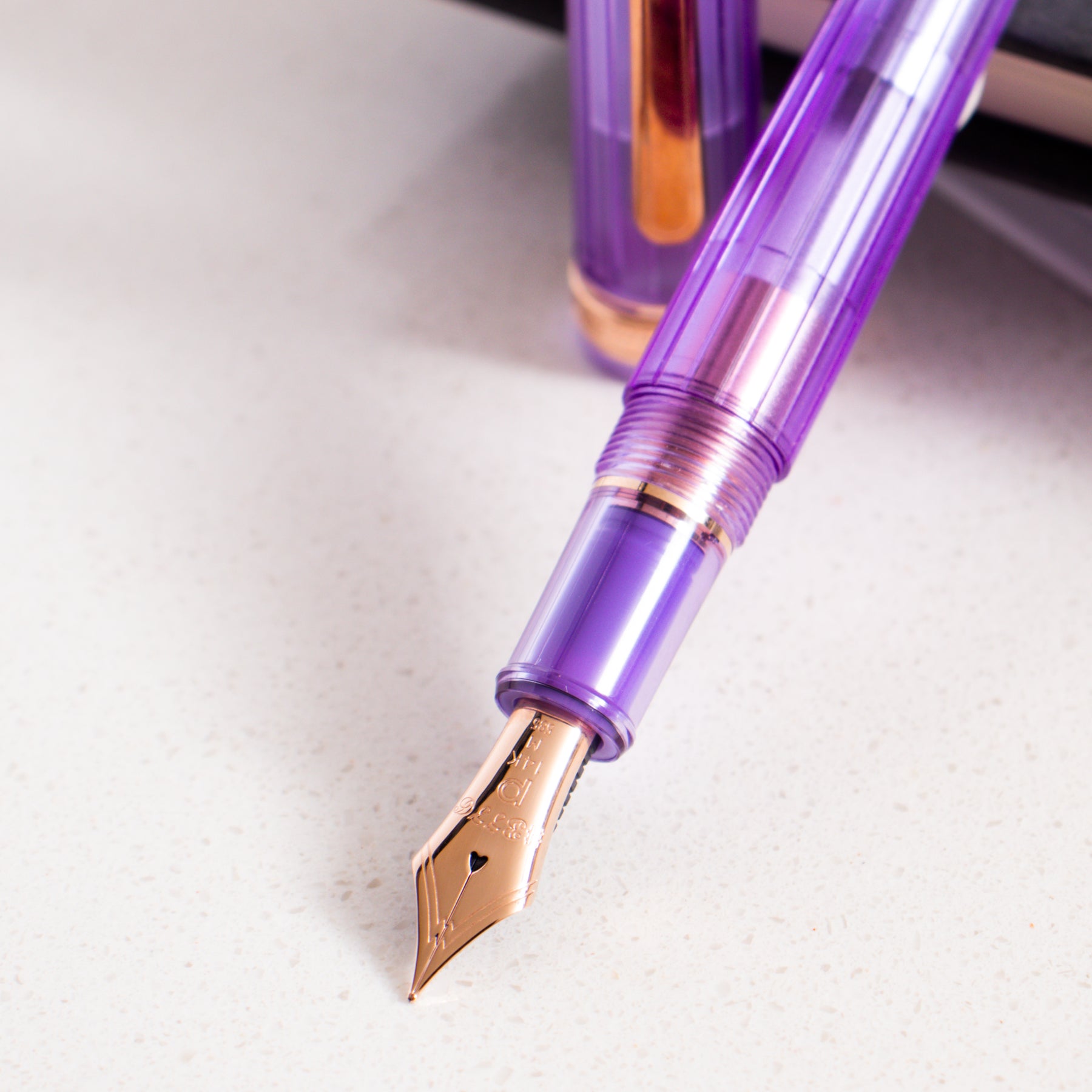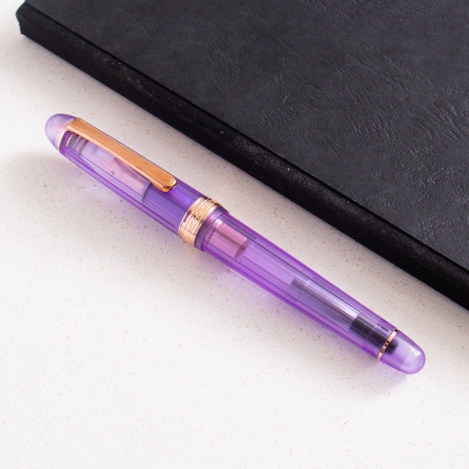 The Platinum 3776 Century Nice Lavende is a soft, elegant demonstrator that blends transparency with gentle color. The pen features a clear, lightly lavender-tinted resin barrel and cap, creating a refined pastel look that highlights the pen’s internal components while maintaining a calm, sophisticated aesthetic. The subtle purple hue feels airy and modern without overpowering the classic 3776 silhouette.