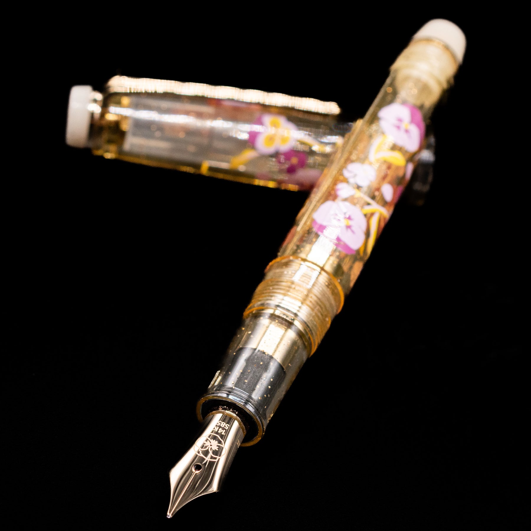 Sakura cherry blossom-inspired gold/demonstrator resin — soft, shimmering tones with refined depth