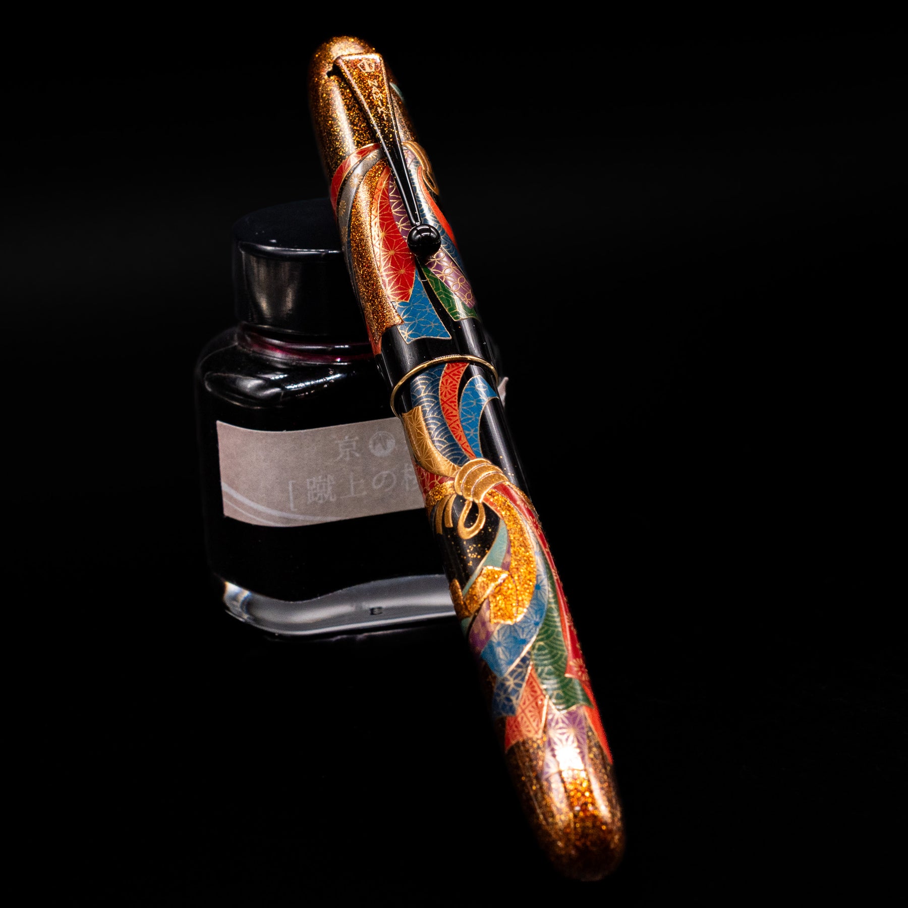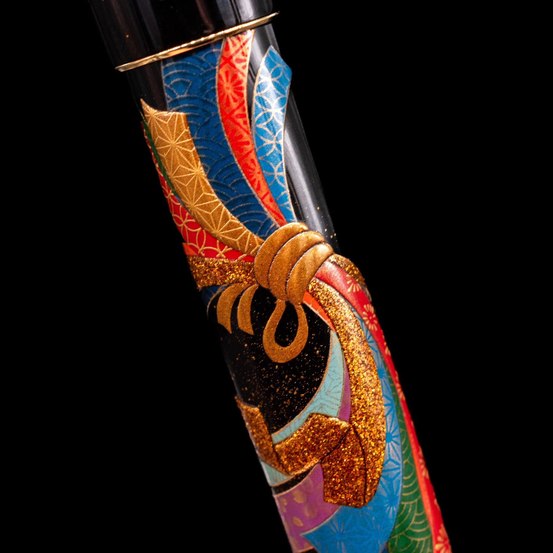 Hand-crafted maki-e lacquer body with radiant gold and silver powder detailing
