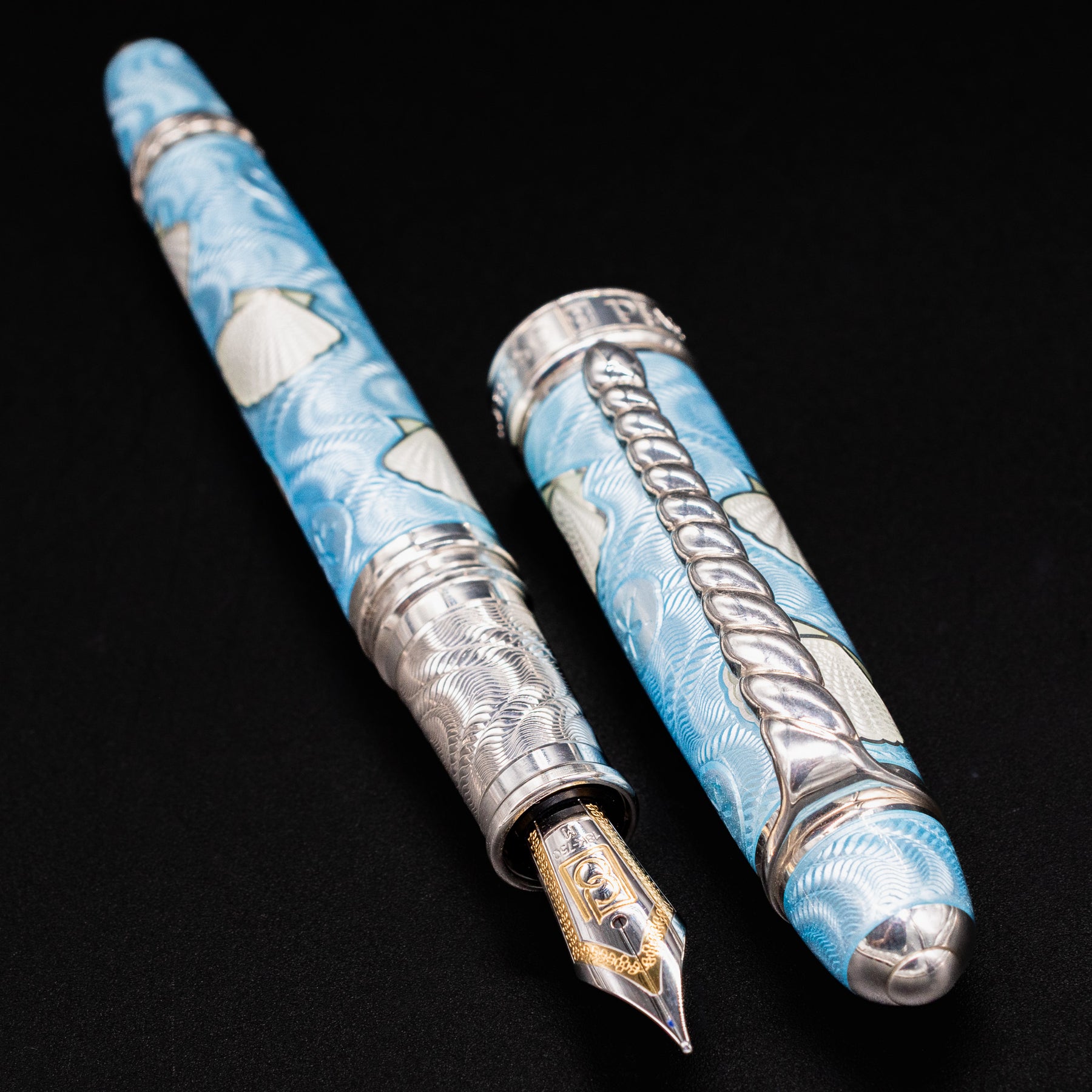 Produced in limited numbers, the Seaside Aquamarine Fountain Pen is a work of art as much as it is a writing instrument. Perfect for collectors and enthusiasts, it serves as a reminder of the beauty and power of the natural world—captured in enamel and silver, forever preserved at your fingertips.