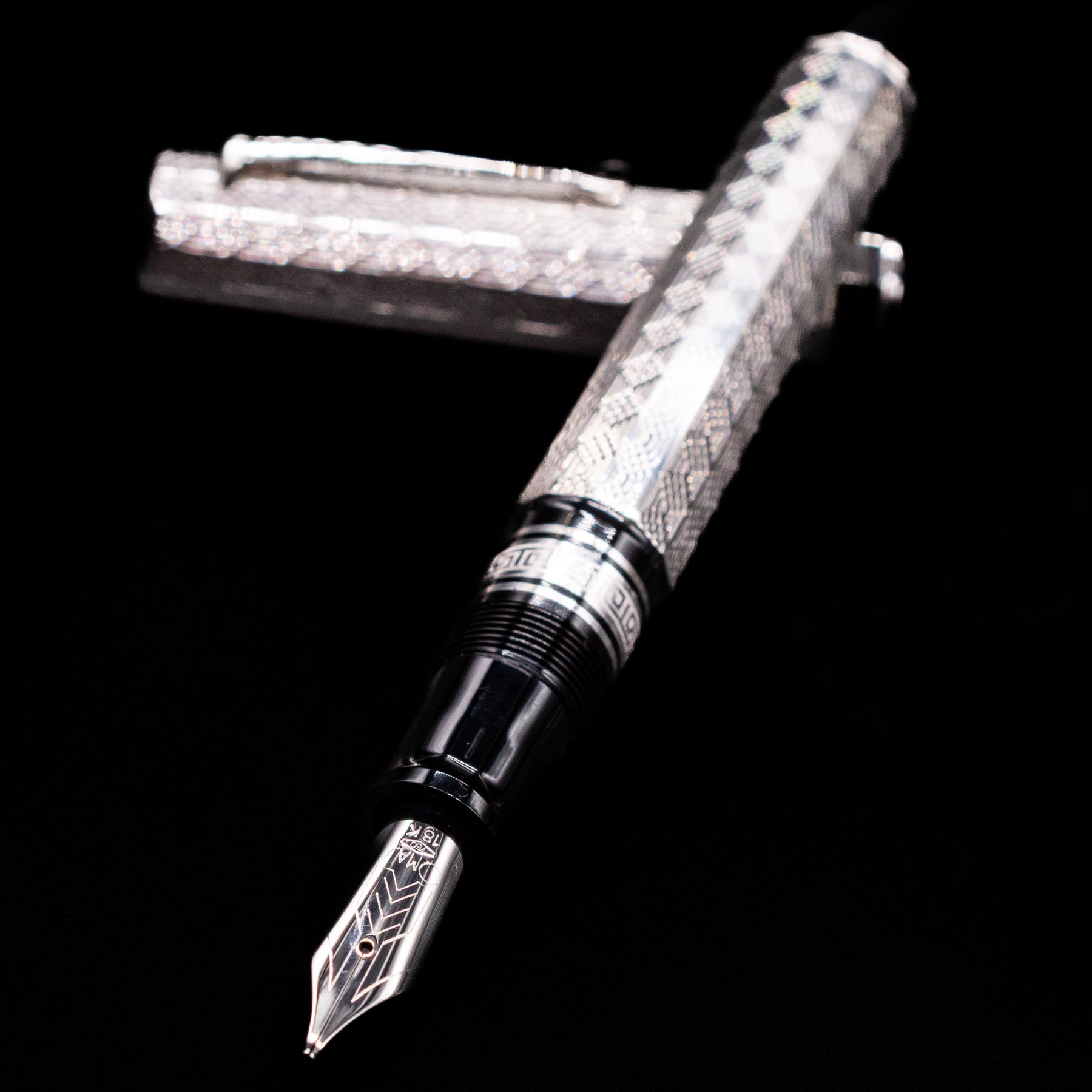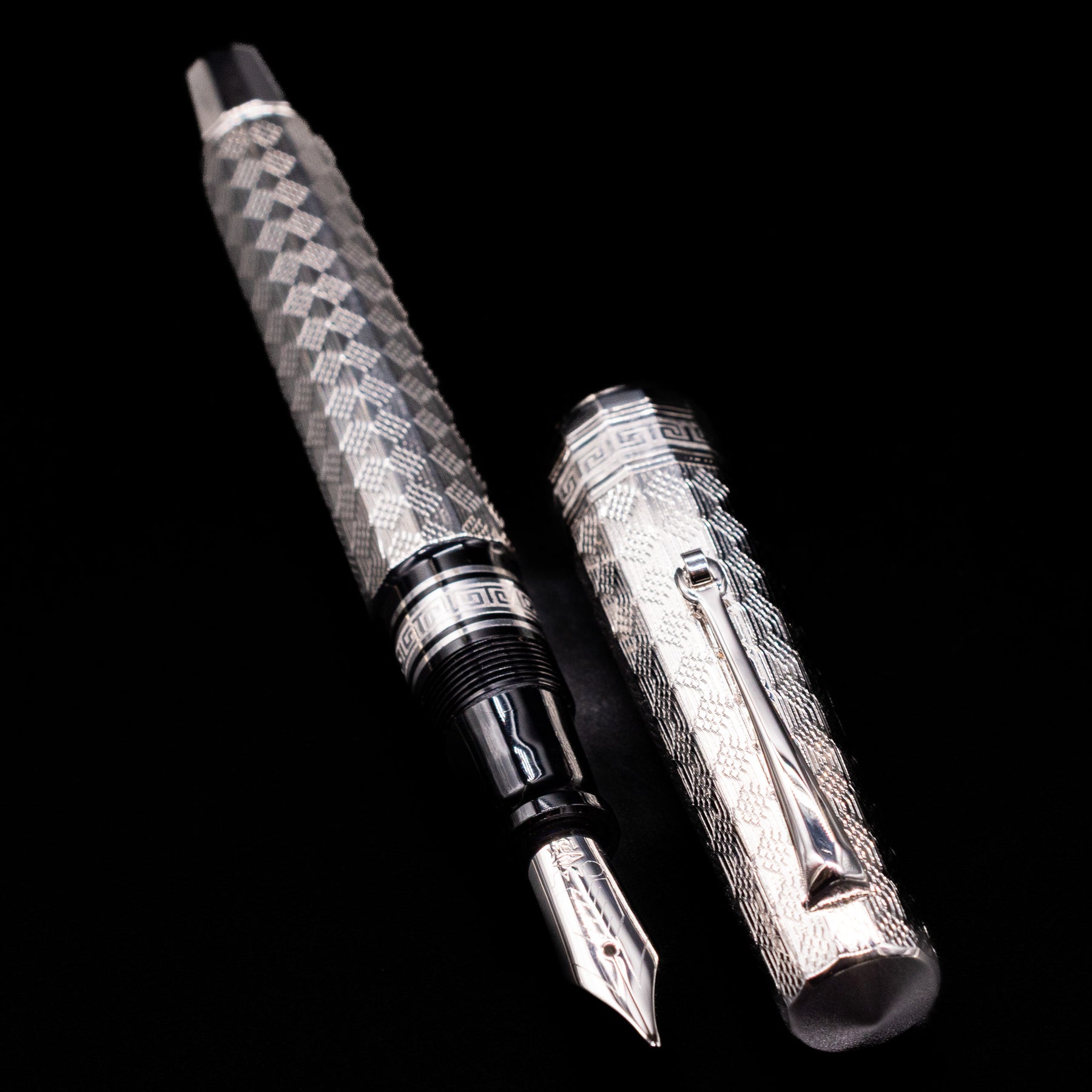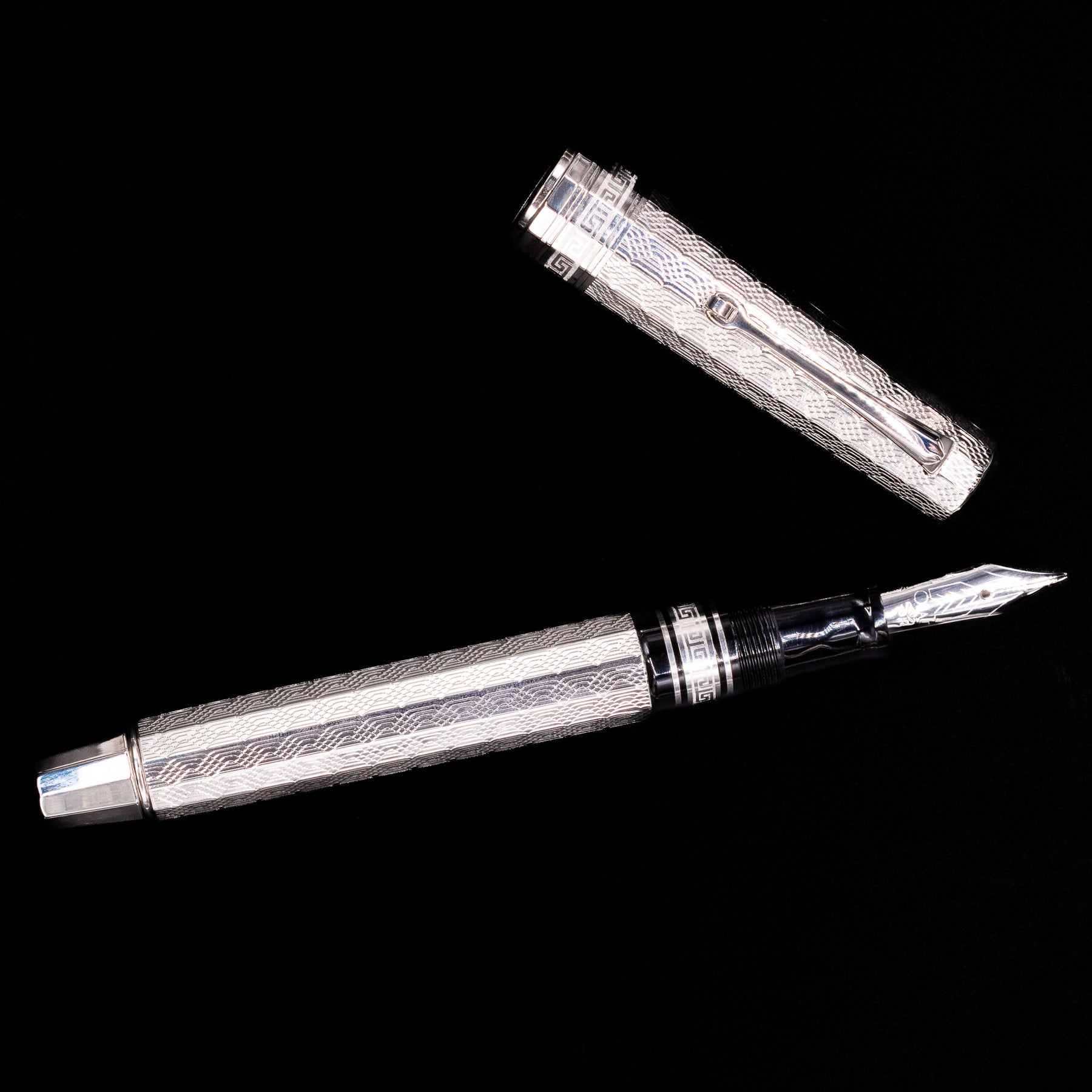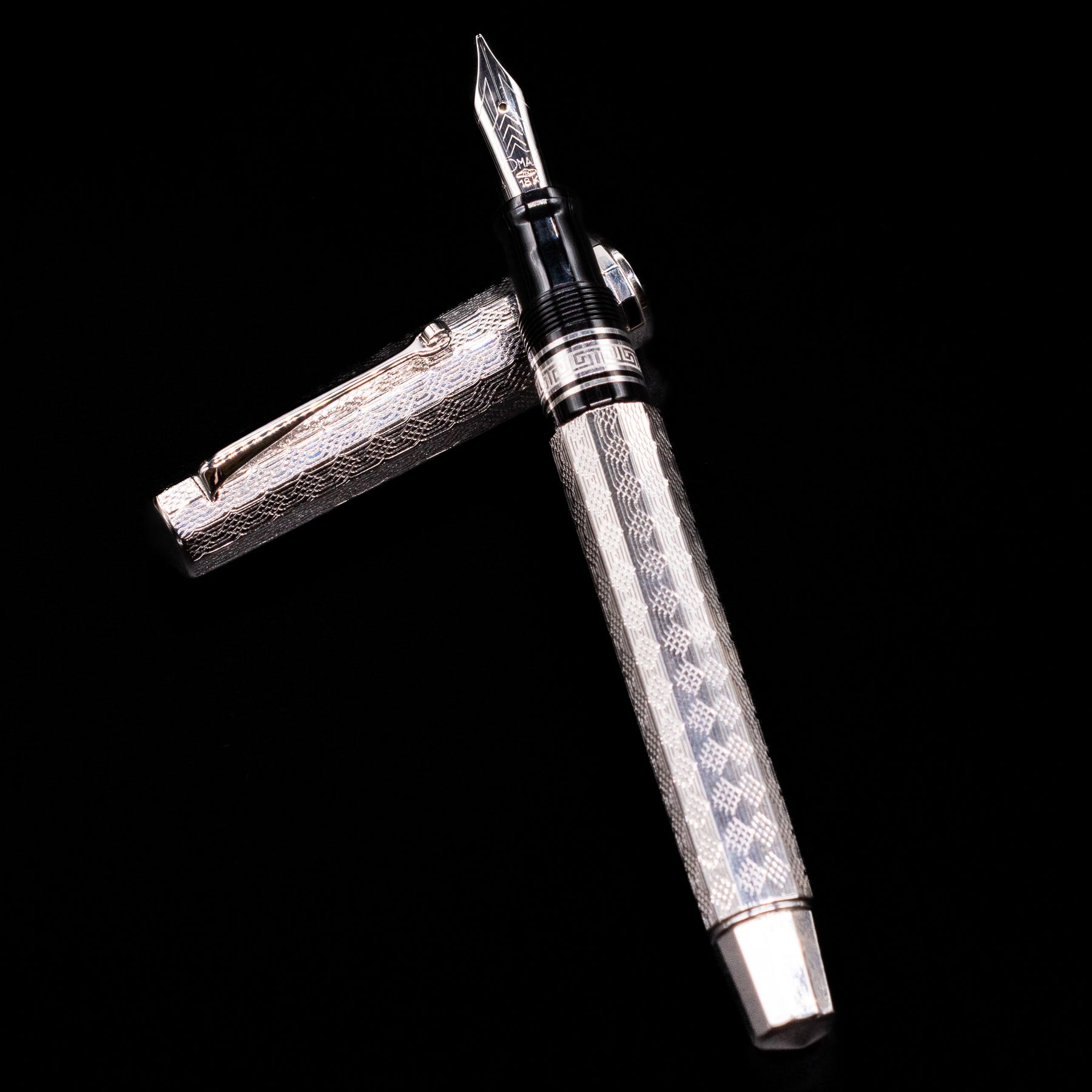 This edition is built around a solid sterling silver body and cap, with every surface meticulously hand-engraved in elaborate Arte Italiana motifs. These complex engravings draw inspiration from classical Italian decorative arts — sculptural flourishes, architectural rhythm, and rich textural interplay — resulting in a design that is both dynamic and harmoniously balanced. The engraving work is entirely hand-finished, giving each piece subtle uniqueness while retaining a cohesive aesthetic language across the edition.