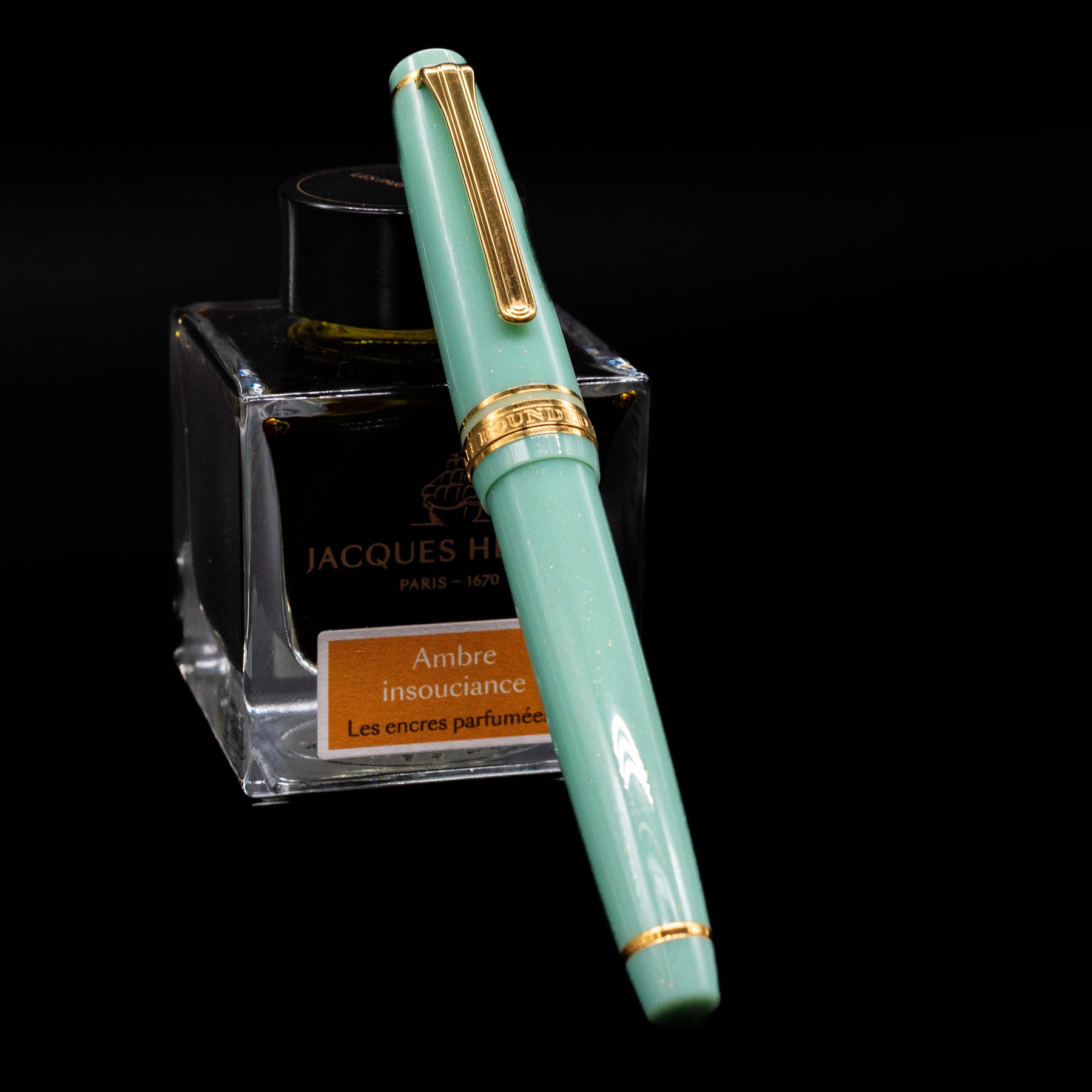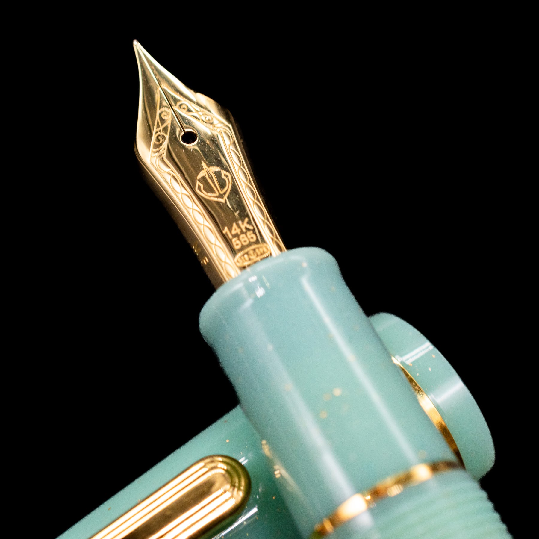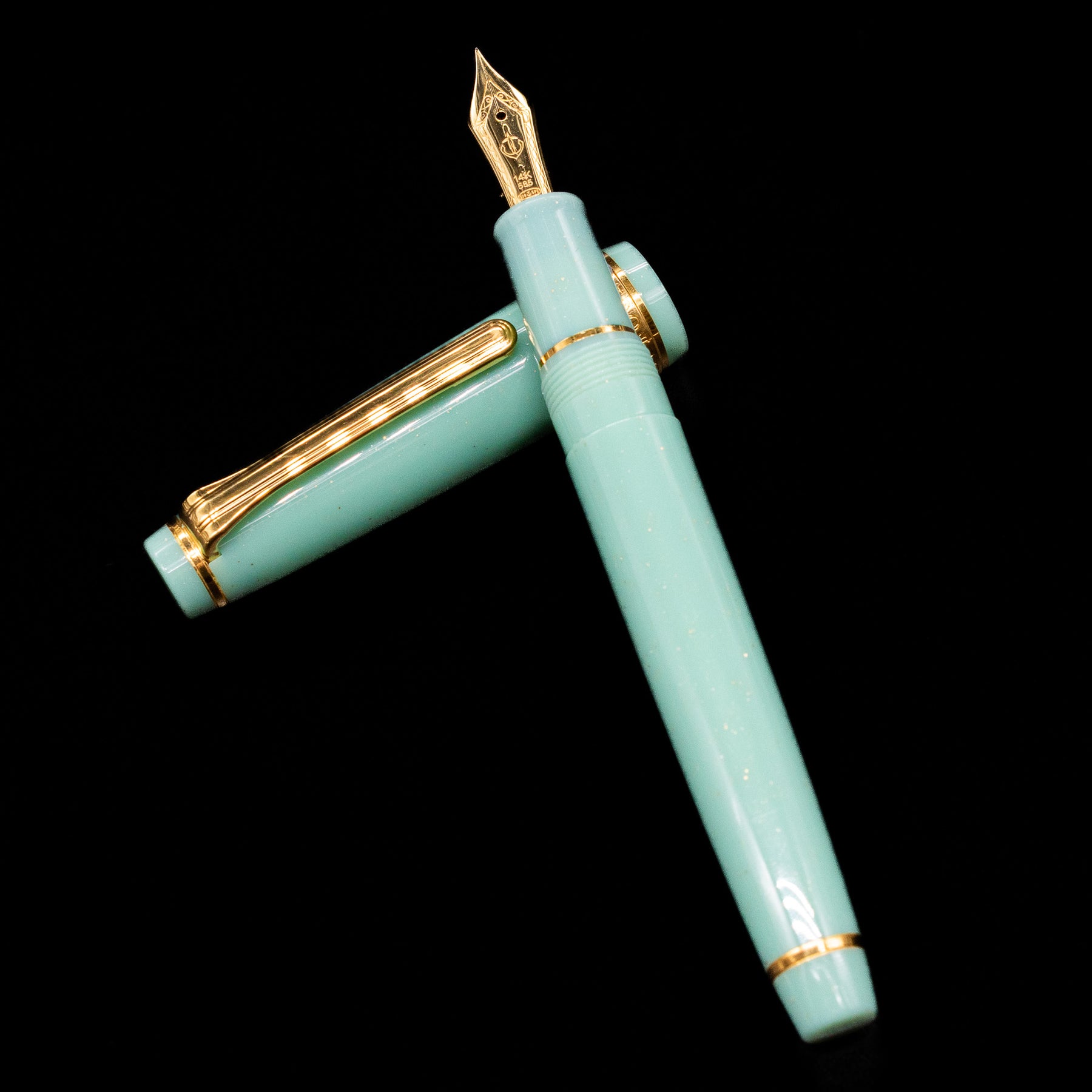 Finished in a light, shimmering pistachio colored resin inspired by mythical depths, the Dragon Palace body evokes the drama and beauty of its namesake. The cap and barrel fit seamlessly, offering a secure closure and balanced weight for smooth, comfortable writing, whether you're signing correspondence or journaling. Inside lies Sailor’s renowned 14k gold nib, tuned for crisp, expressive ink flow — delivering a fluid, controlled line that shows off the character of your ink.