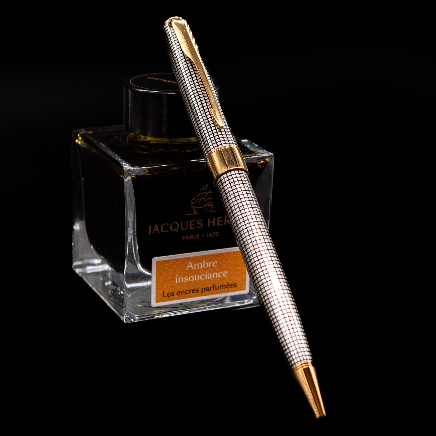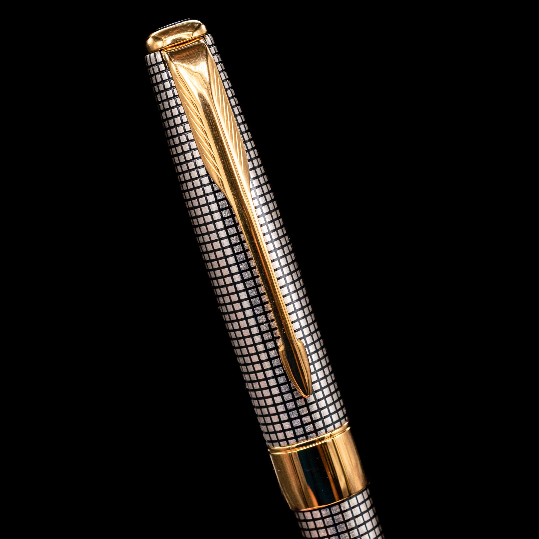 Polished gold-plated trim and Parker’s instantly recognizable arrow clip complete the sophisticated profile, offering warm contrast to the cool sterling body. The ballpoint mechanism features a smooth twist-action deployment, ensuring effortless operation and reliable writing performance. Designed for comfort and balance, the Sonnet Ciselé sits naturally in the hand for extended writing sessions.