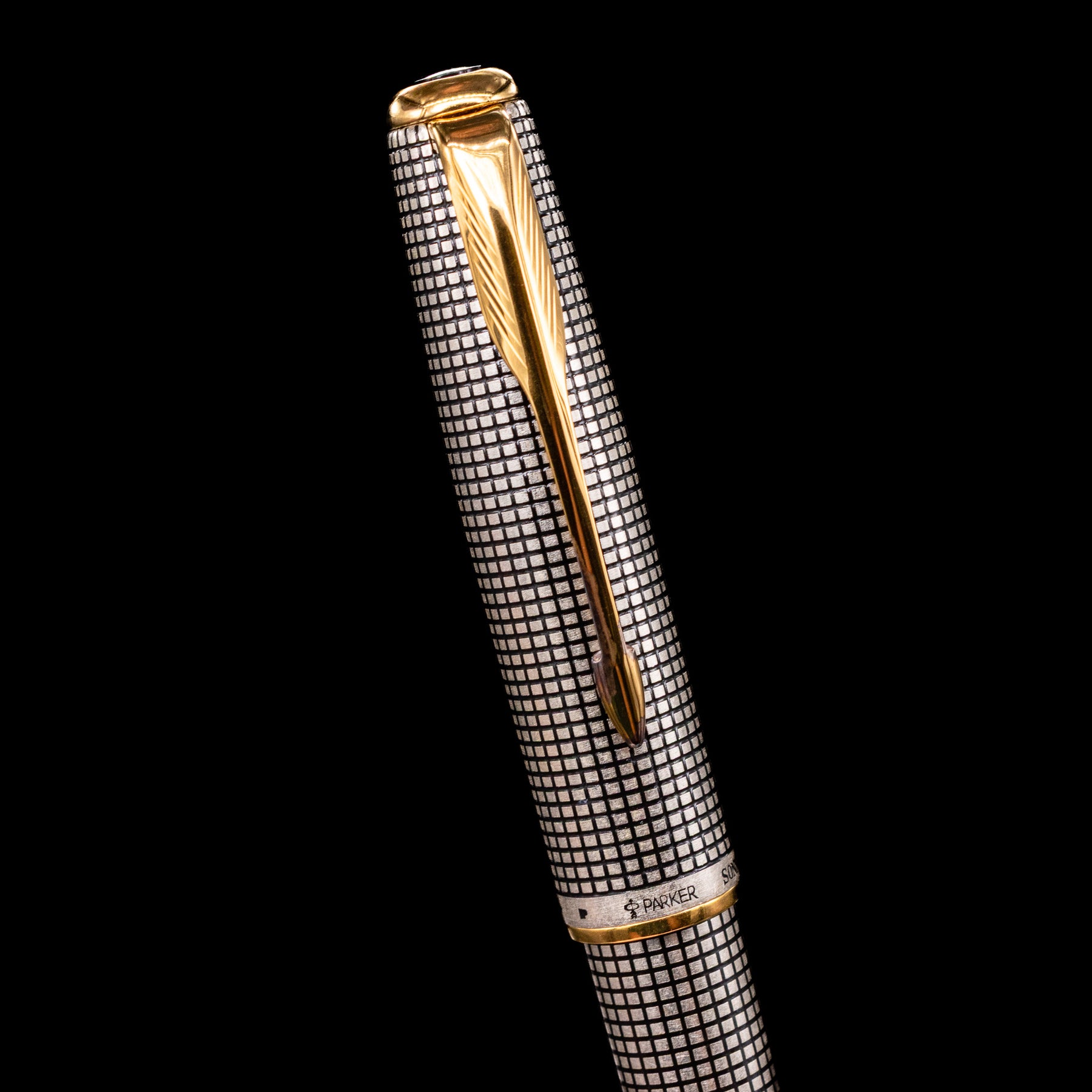 A close-up of the clip on the Parker Sonnet Cisele Sterling Silver Old Style Fountain Pen - Preowned
