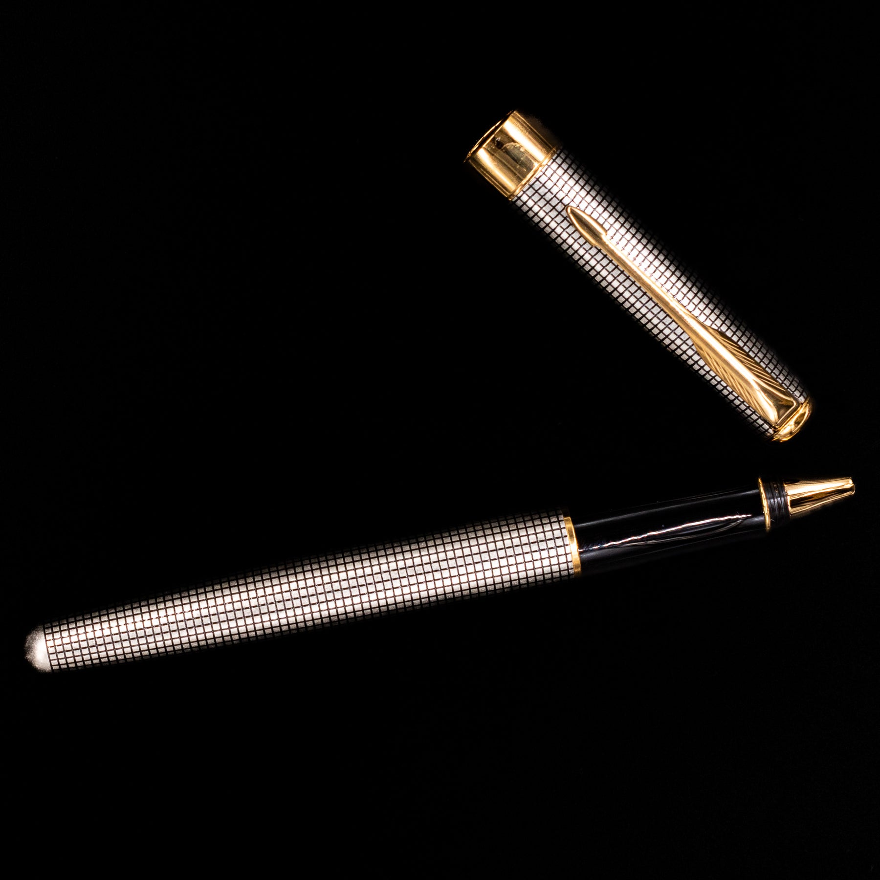 The Parker Sonnet Ciselé Sterling Silver Rollerball Pen blends enduring elegance with refined performance. Part of Parker’s distinguished Sonnet family, this rollerball features a beautifully engraved sterling silver barrel and cap with the iconic ciselé pattern — a finely detailed cross-hatched lattice that catches light and adds tactile sophistication to every angle. Polished gold-plated trim and the classic Parker arrow clip provide a rich contrast that enhances the pen’s heirloom appeal.