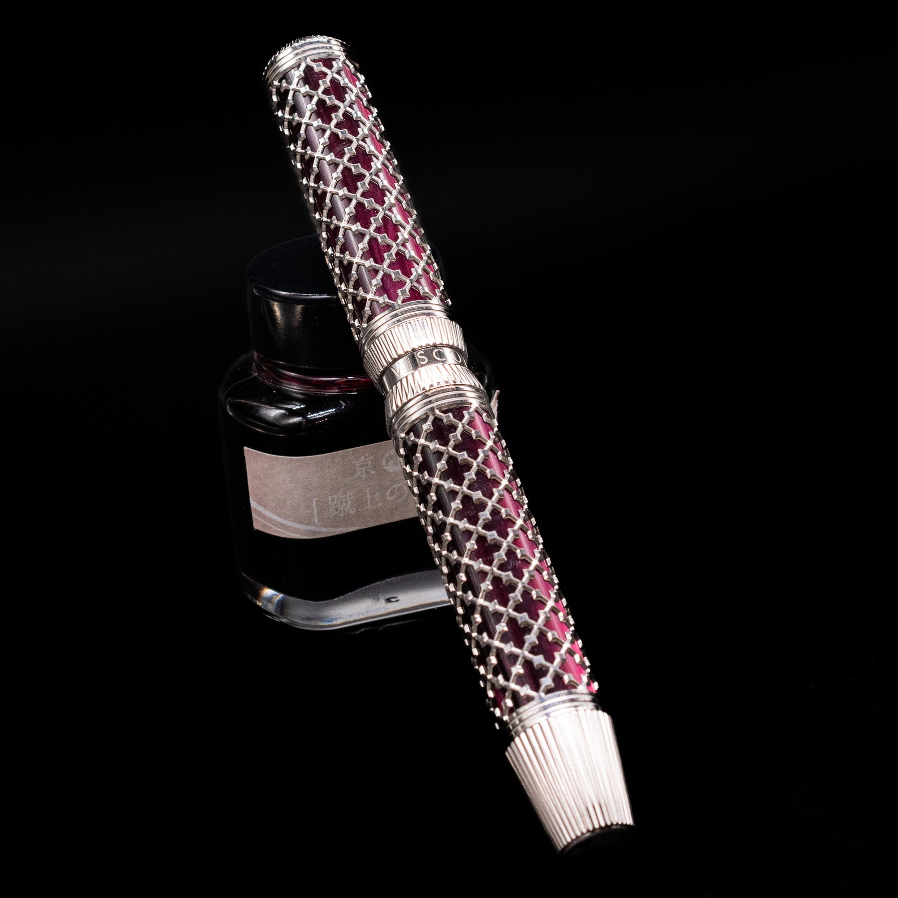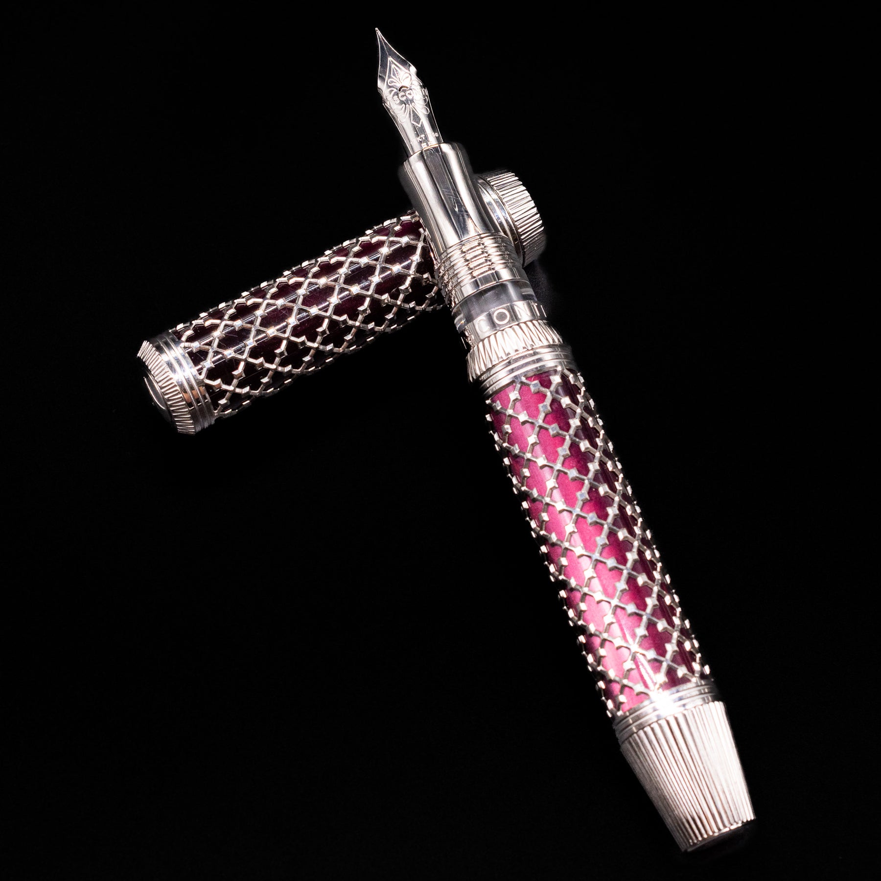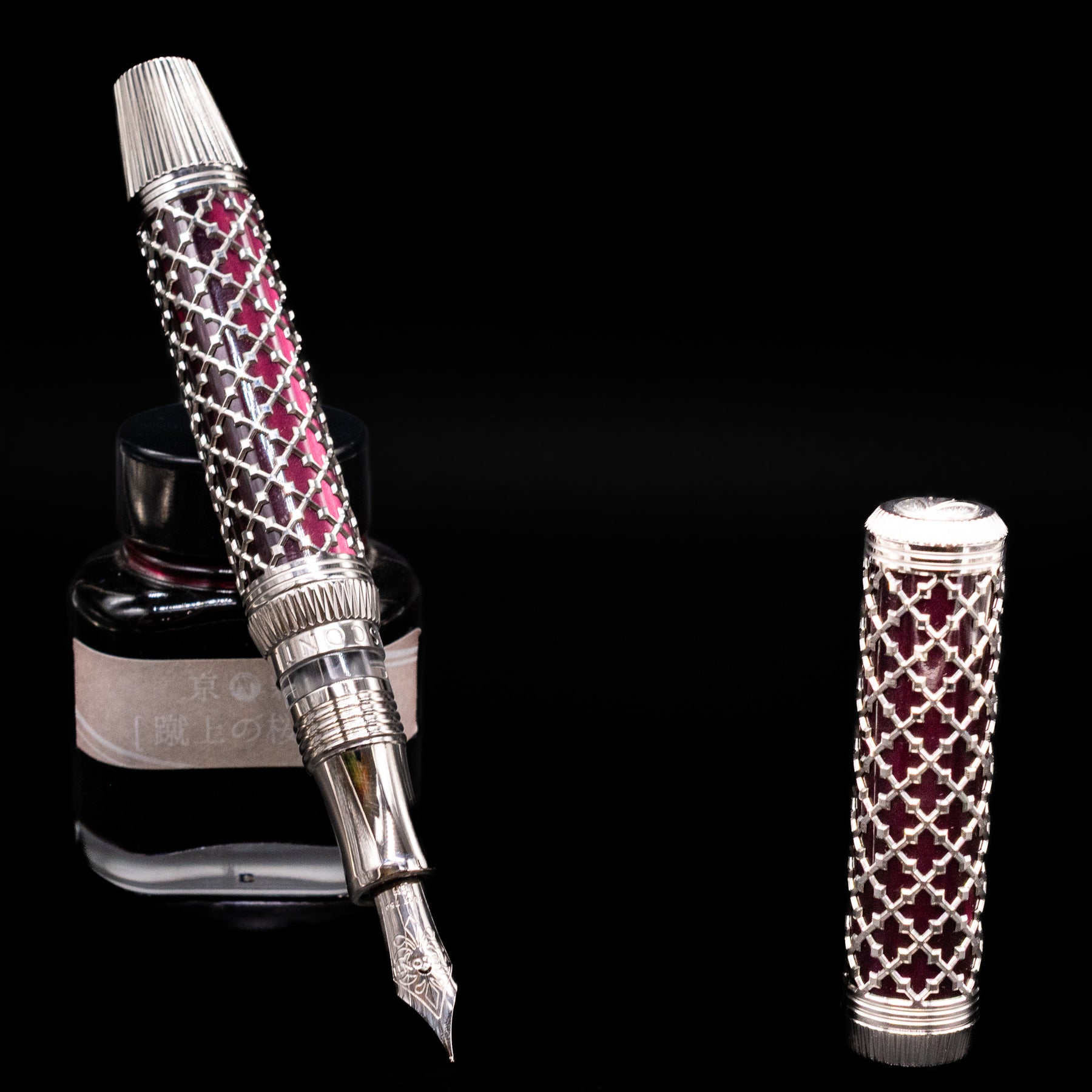 From the first time I saw this writing instrument, I was enthralled. The Visconti Divina Elegance Bordeaux has been my favorite fountain pen in my large collection of pens and mechanical pencils. I use it daily and it is always filled with various matching color inks. But this Venetian Dream is something else. It is a statement, a show piece, a masterpiece of silver lace over its lacquered core. An impractical, sublime fountain pen that pays homage to the architecture and history of Venice and Visconti and the art of the pen.