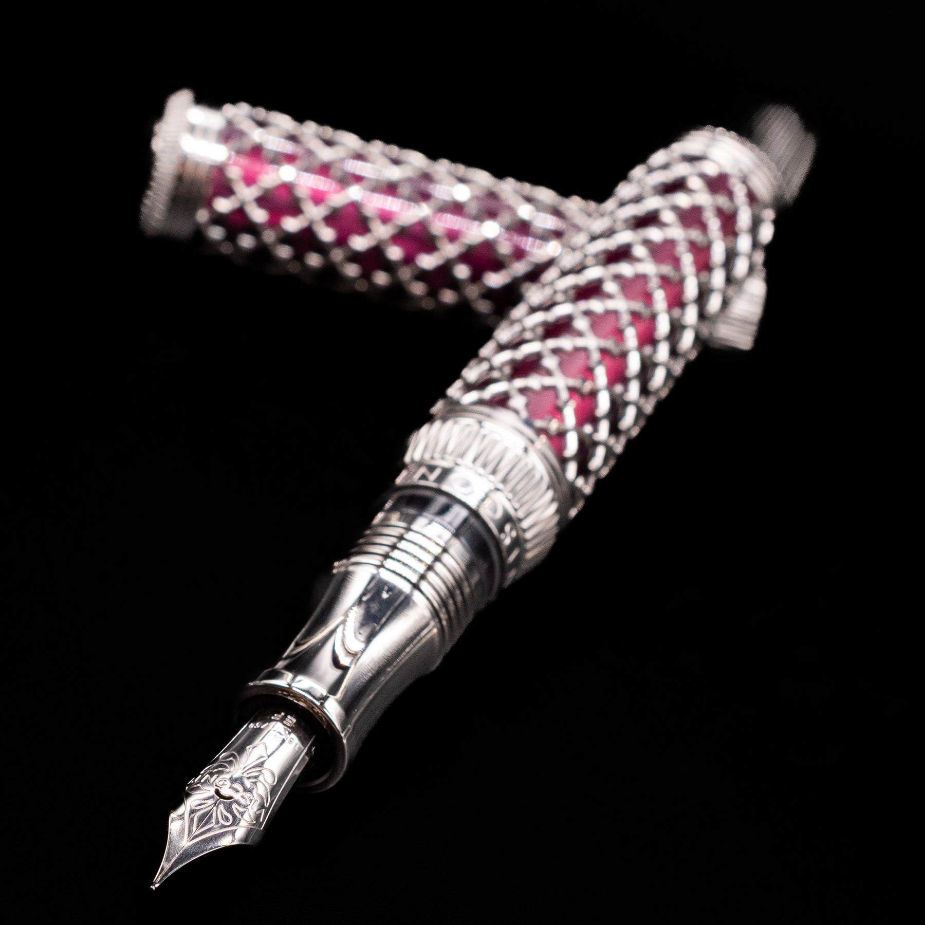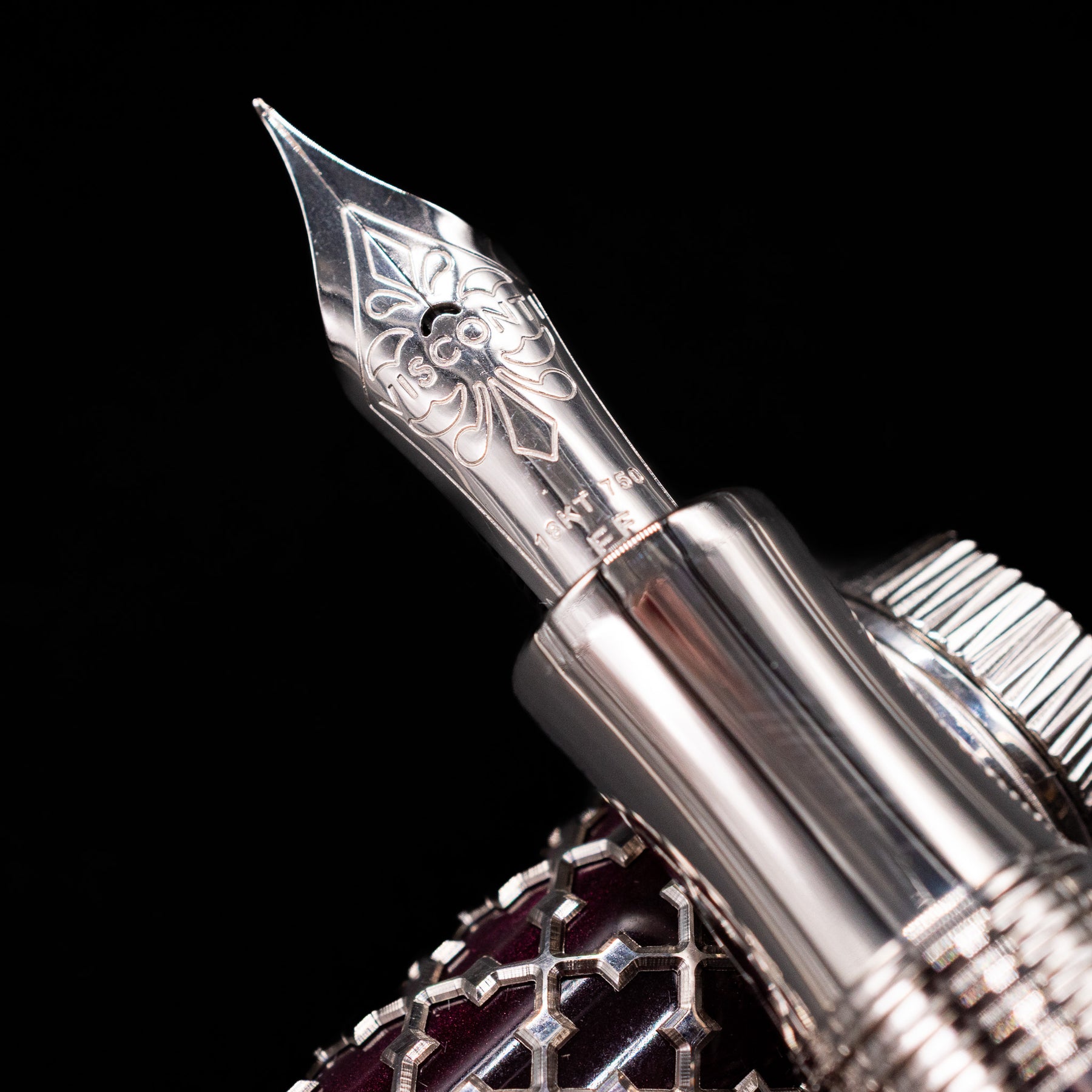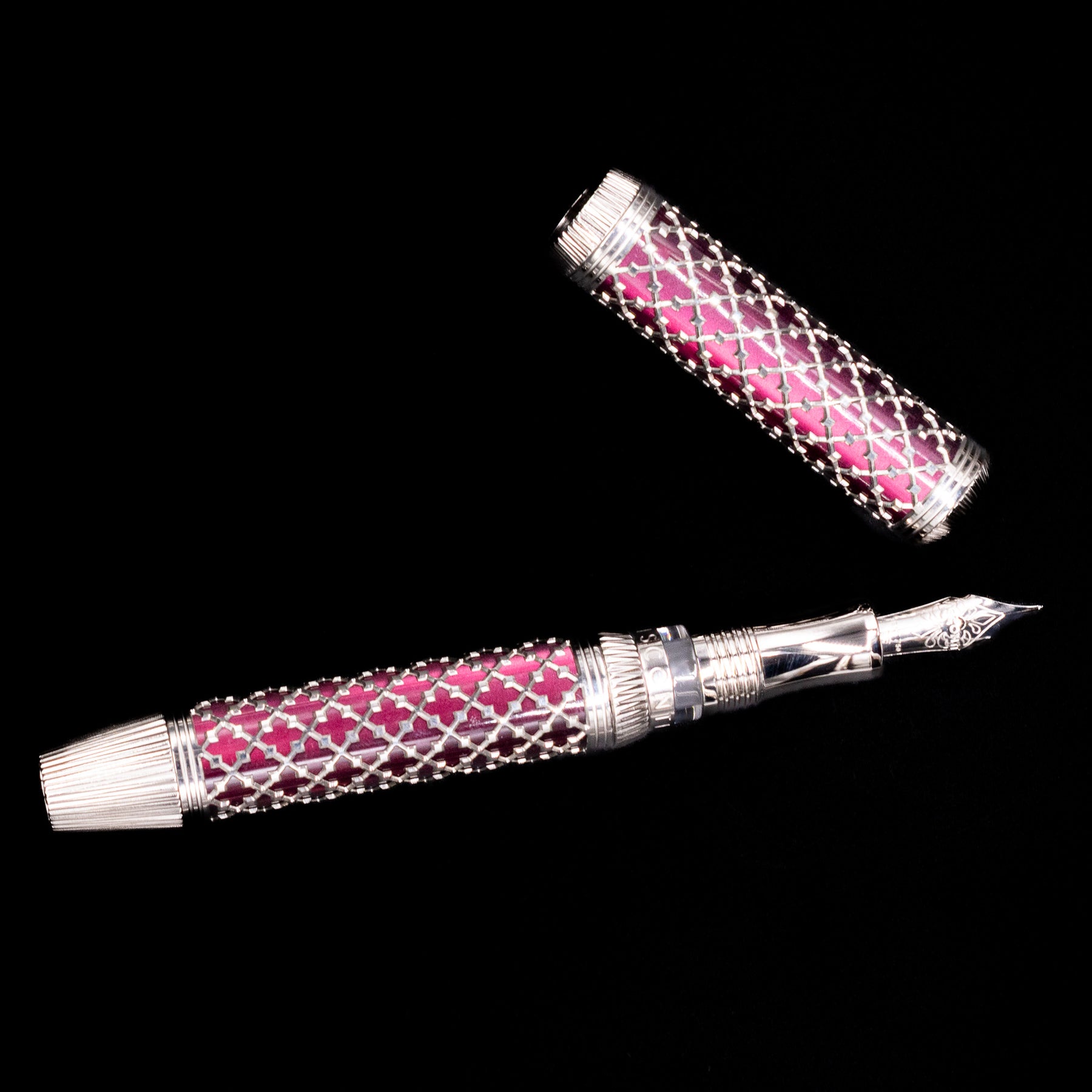 From the first time I saw this writing instrument, I was enthralled. The Visconti Divina Elegance Bordeaux has been my favorite fountain pen in my large collection of pens and mechanical pencils. I use it daily and it is always filled with various matching color inks. But this Venetian Dream is something else. It is a statement, a show piece, a masterpiece of silver lace over its lacquered core. An impractical, sublime fountain pen that pays homage to the architecture and history of Venice and Visconti and the art of the pen.