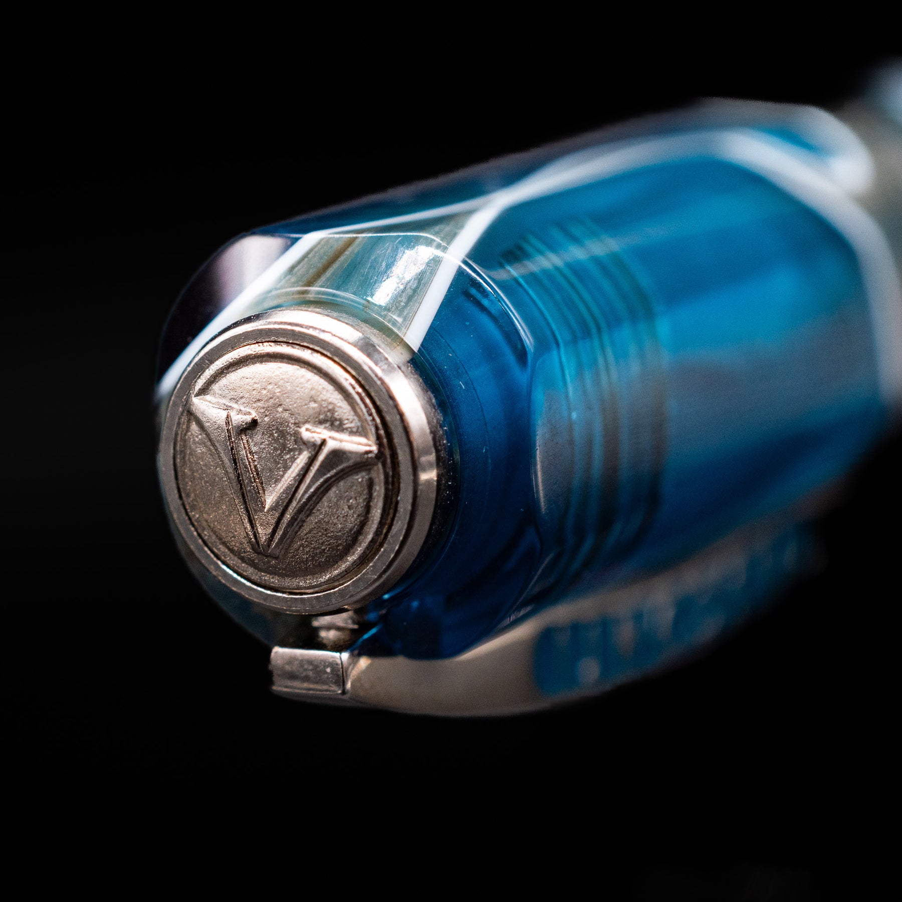 Zoomed-in view of the top of the cap with the finial on the Visconti Opera Master Polynesia Fountain Pen - Preowned.
