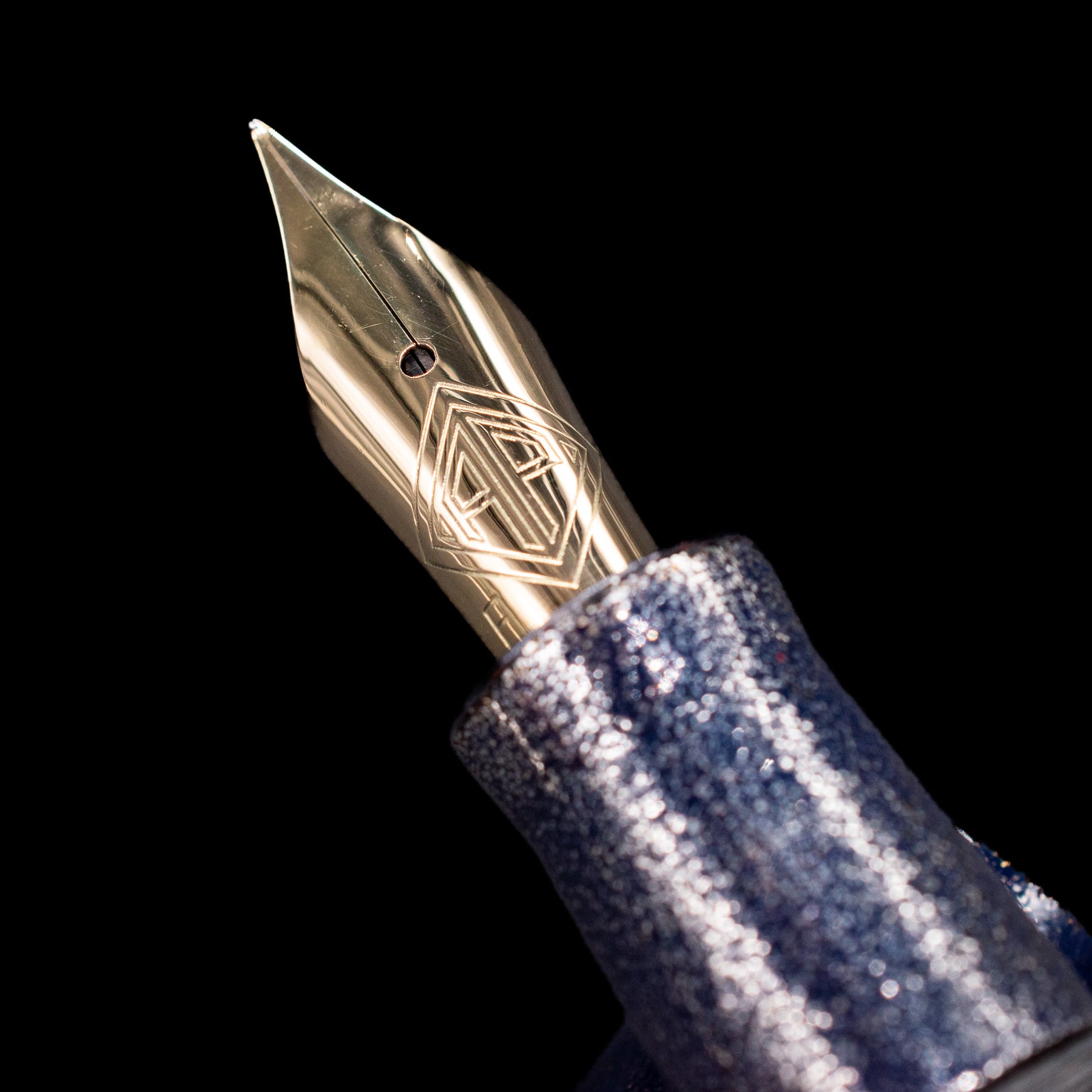 Under direct light, the pen shimmers like a distant star field. In lower light, it deepens into a rich, inky blue — subtle and atmospheric.