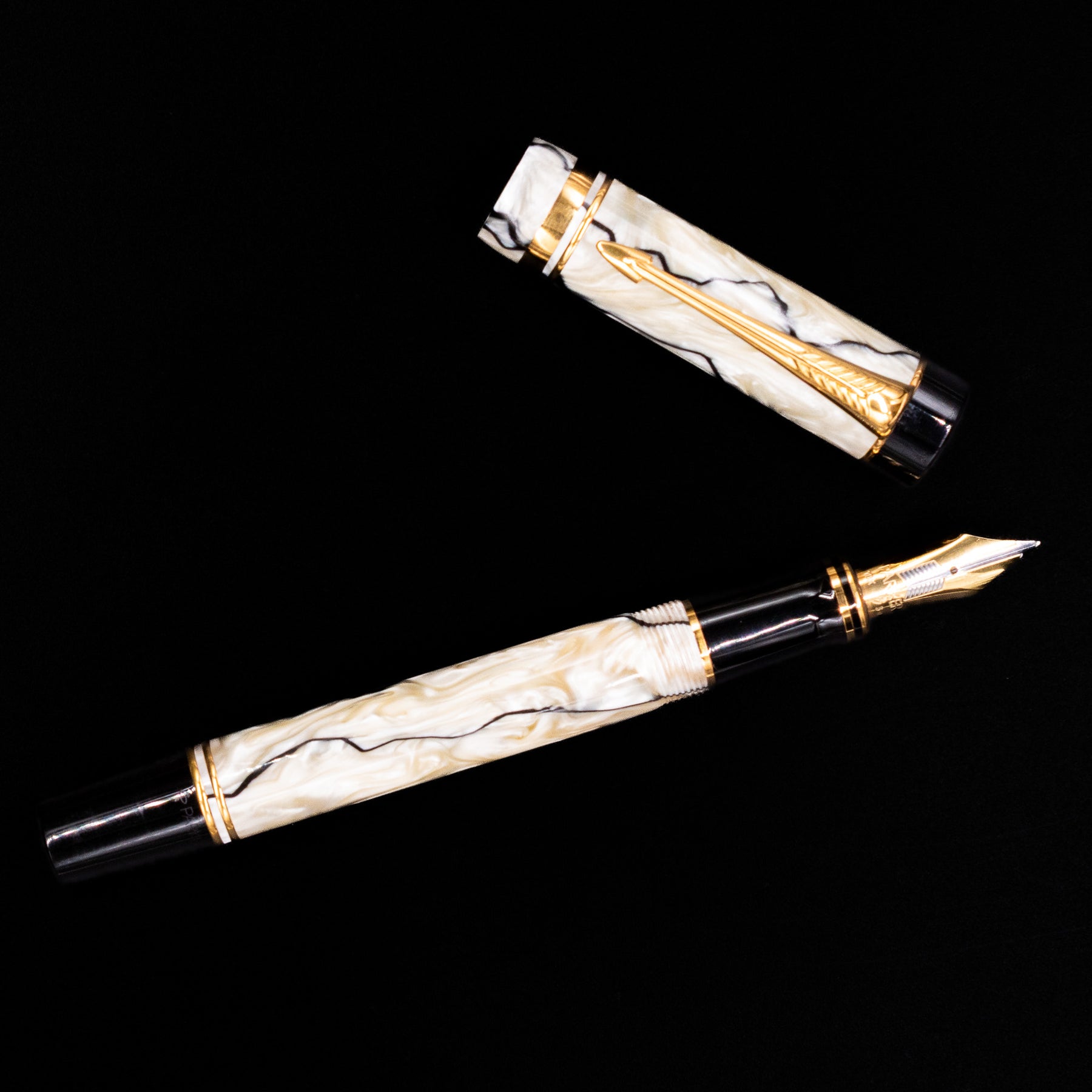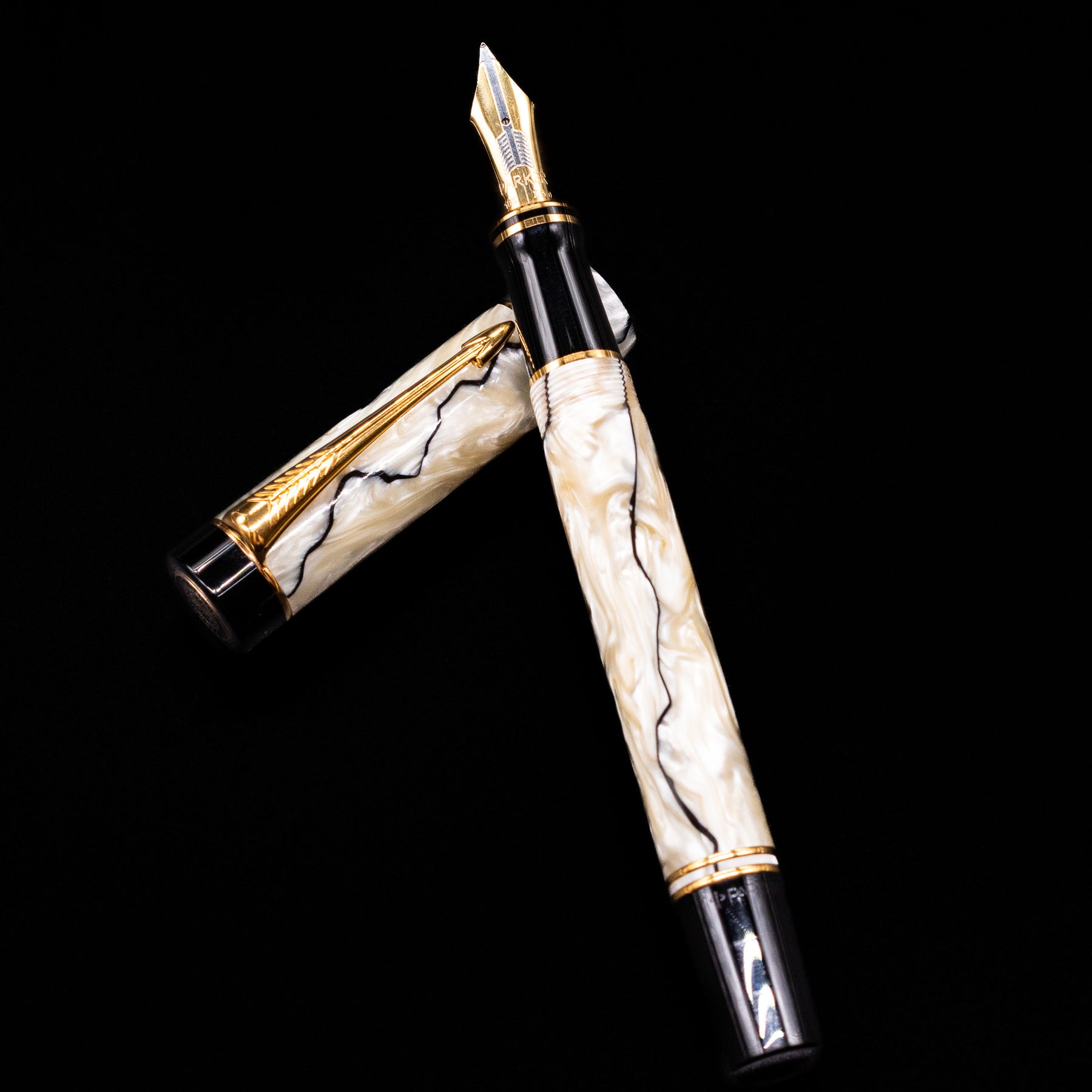 Parker Duofold Centennial Pearl & Black Fountain Pen - Preowned