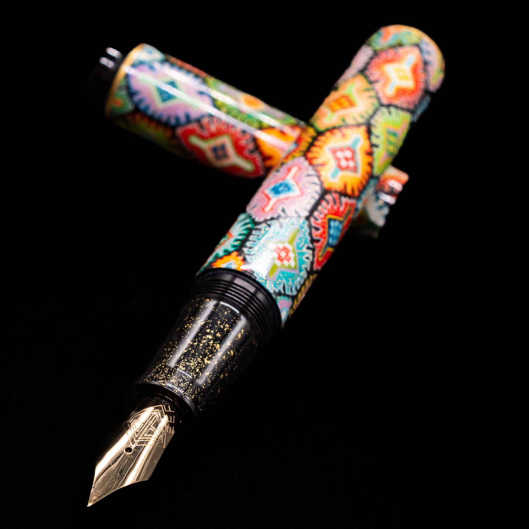 An overhead view of the AP Limited Editions Imperial Lacquer Art Fountain Pen - Tutankhamen uncapped.