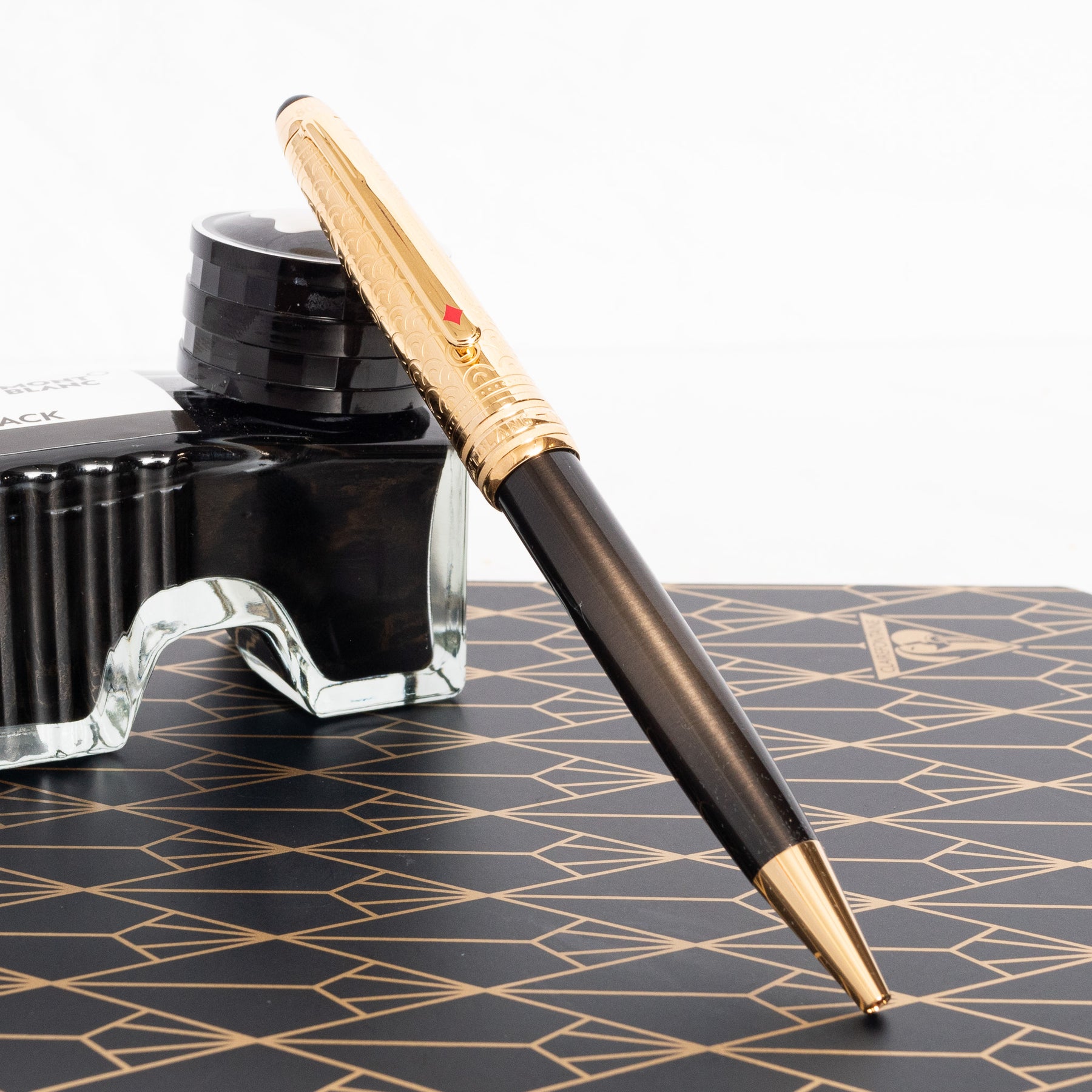 Montblanc honors Jules Verne's timeless adventure tales in the Around the World in 80 Days Meisterstück Collection, with caps marking "80" and "25" for the full journey and Yokohama duration. Each pen showcases a red diamond on the clip, while card suits and princess Aouda's jewelry adorn the cone.